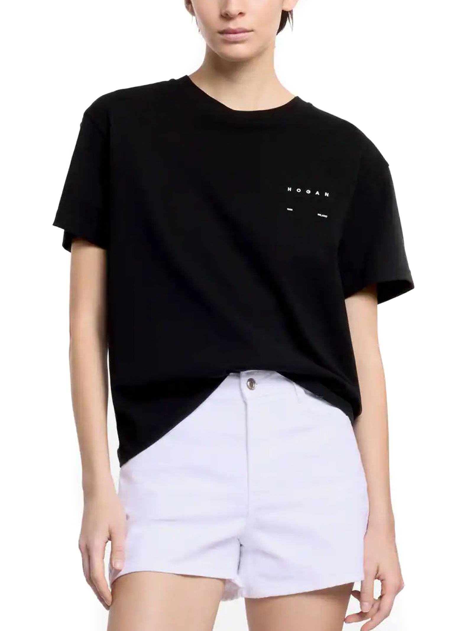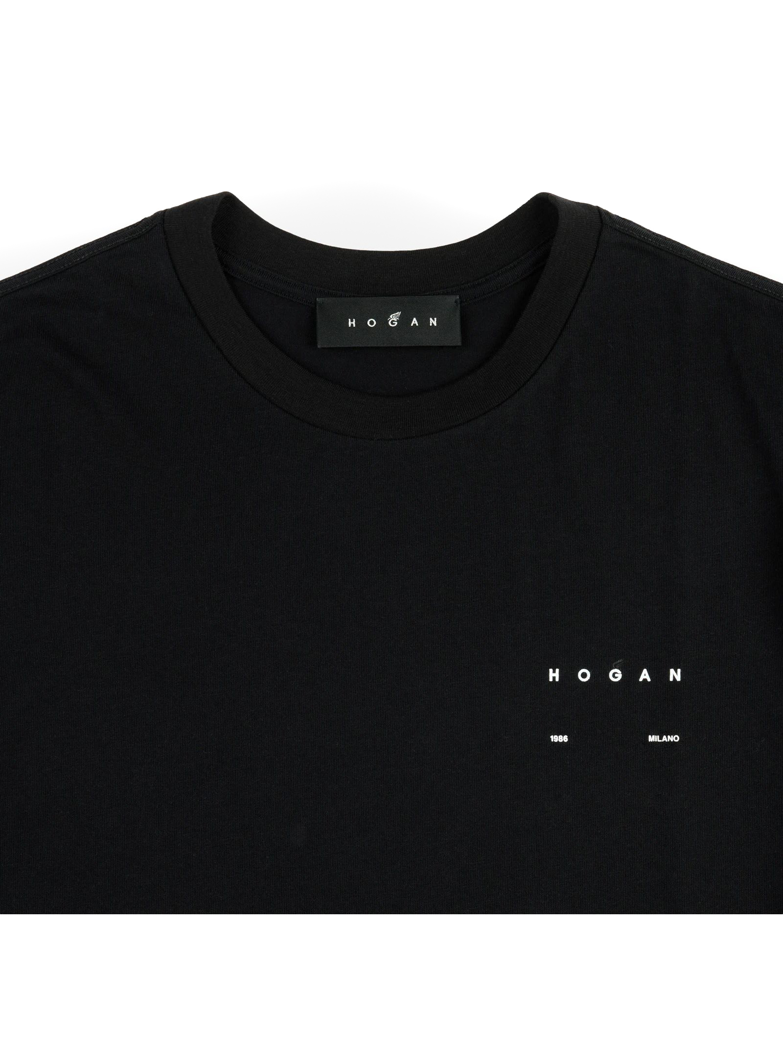 Crew neck T-shirt made of cotton jersey, with contrasting Hogan logo printed on the chest.
