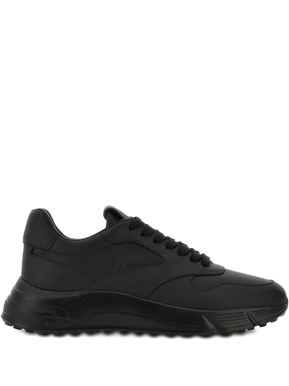 black front lace-up fastening logo-embellished side panels round toe branded insole