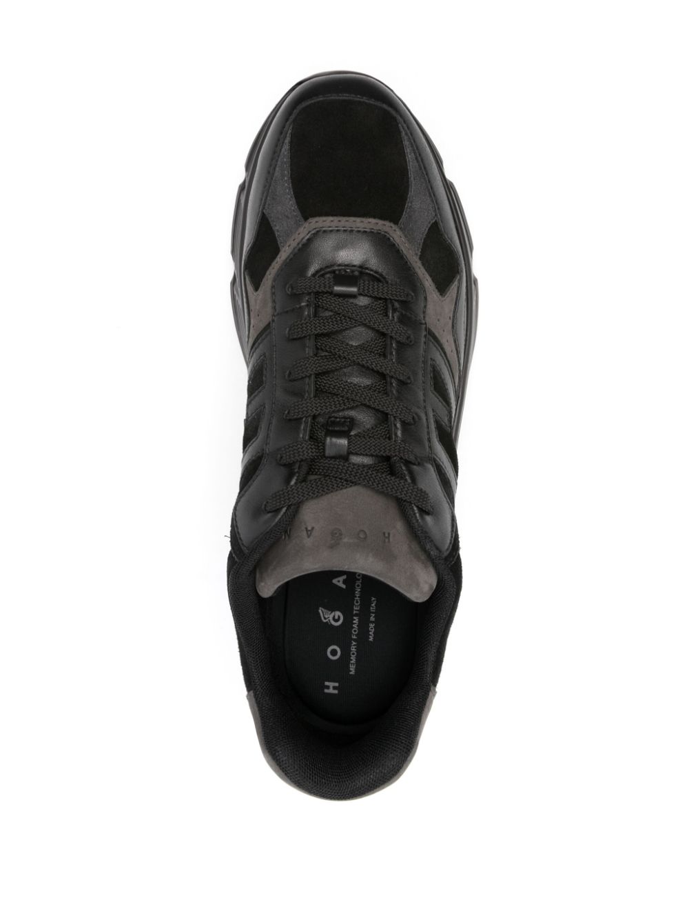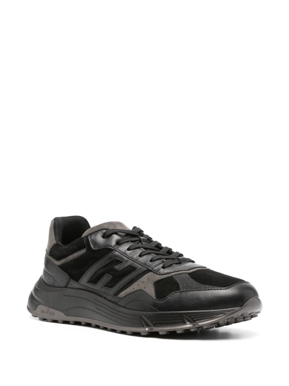 black leather sneakerscalfskinsuede leather finishinground tiptongue with engraved logoengraved side logopadding in the ankleinsole with logomesh liningrubber solefront closure with laces