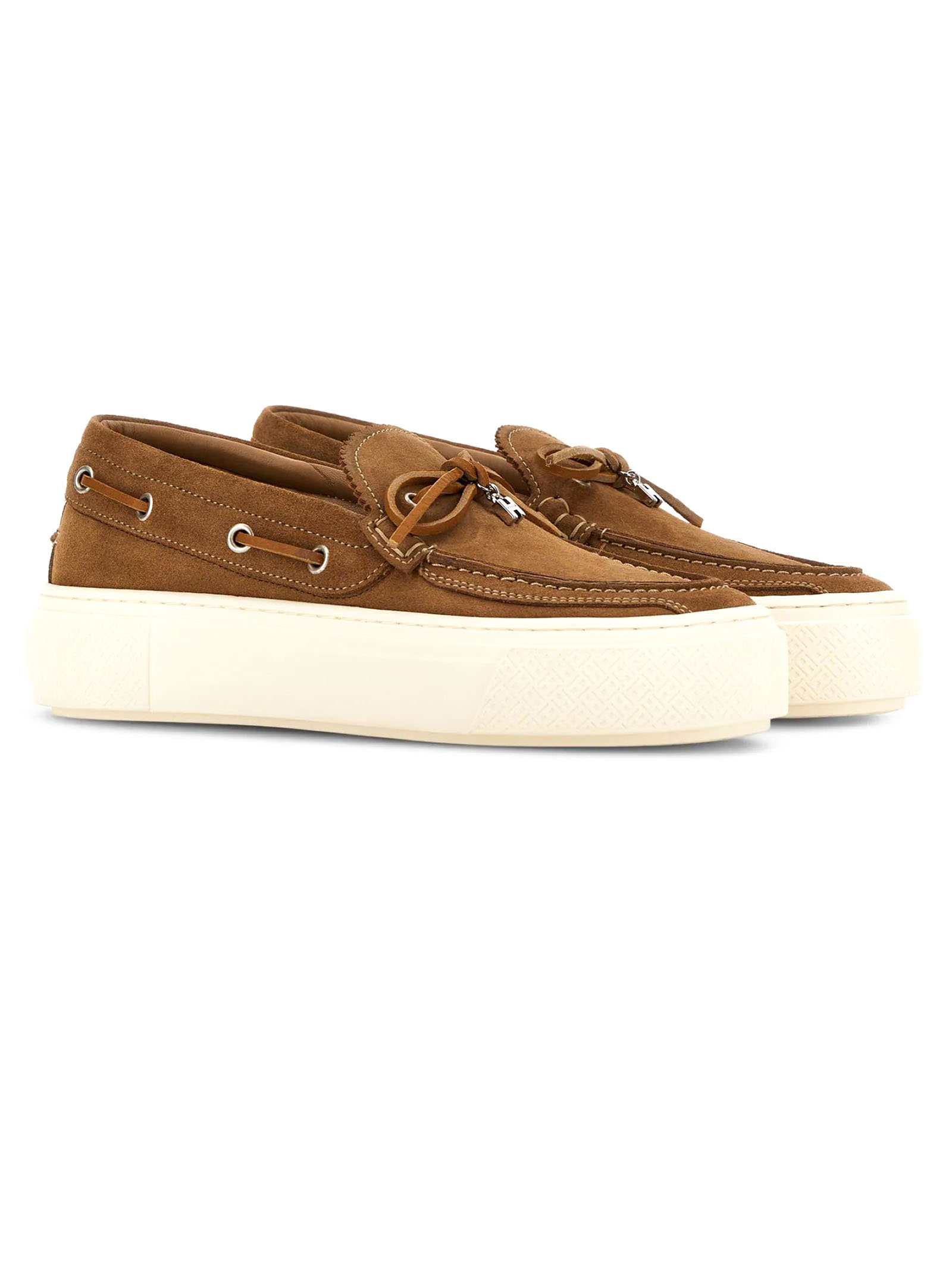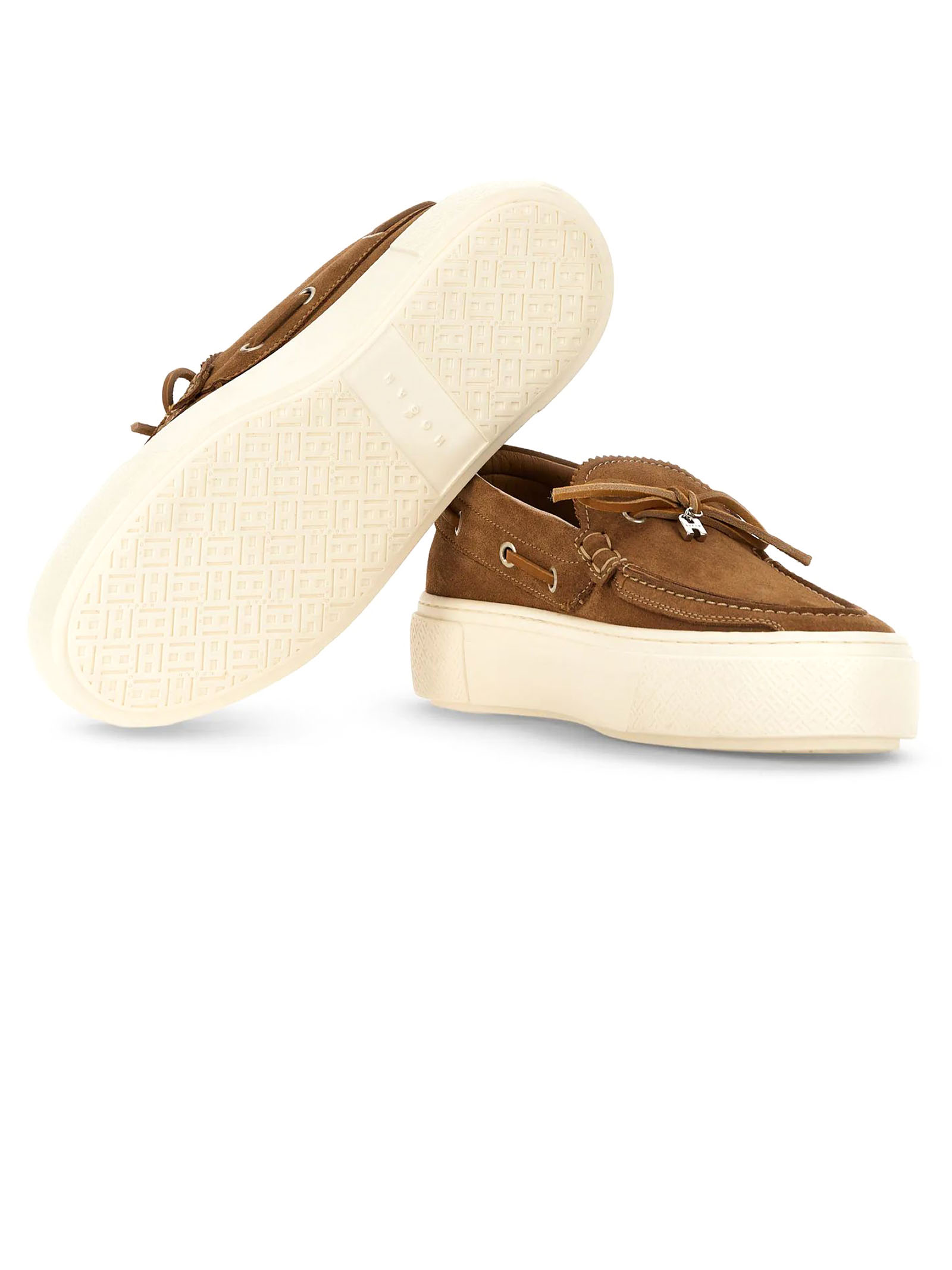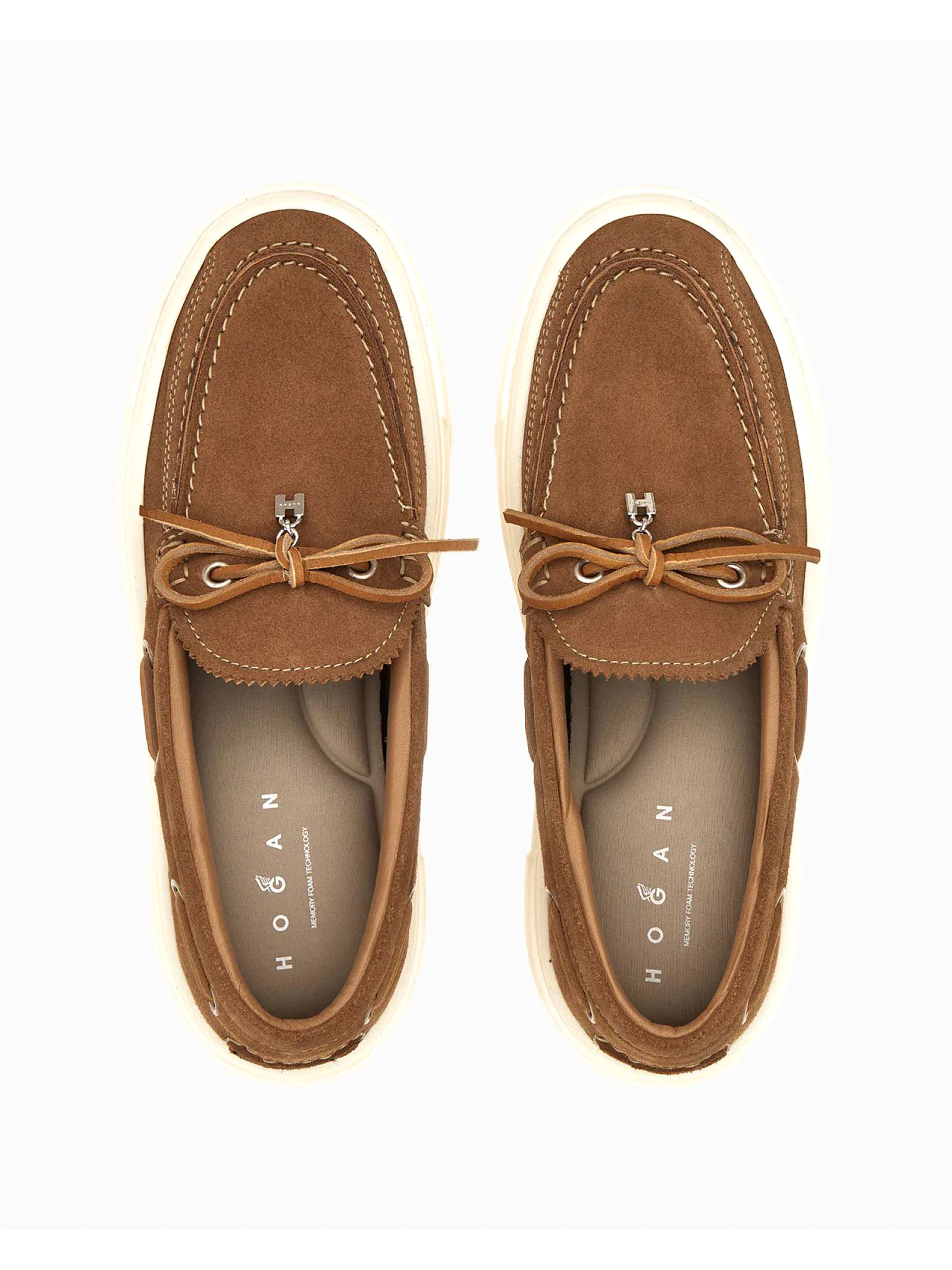 Boat Shoes Hogan Crosswind Brown, Suede upper, Woven tieMetal H charm, Handmade stitching, Memory foam insole 8 mm, Rubber outsole, Total height 5.6 cm