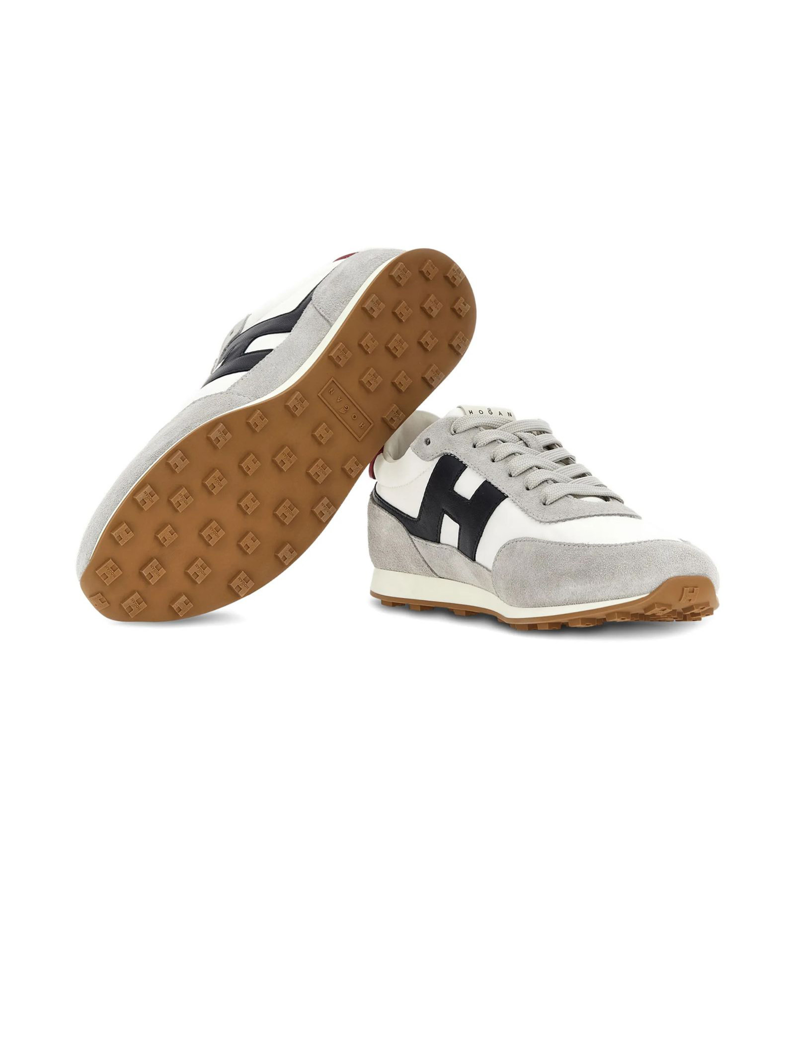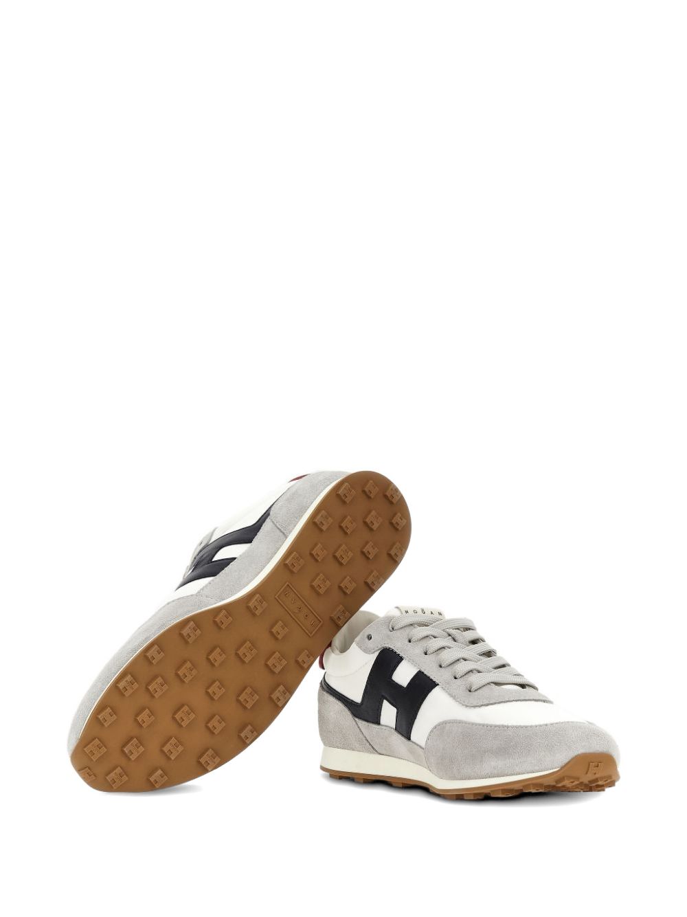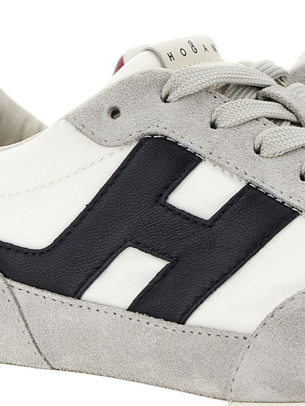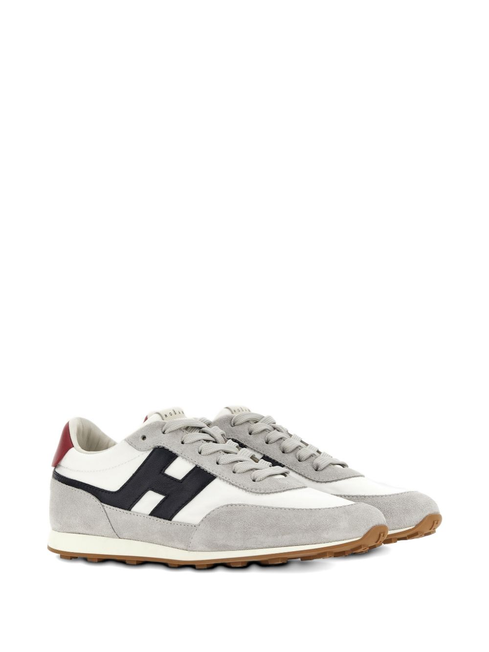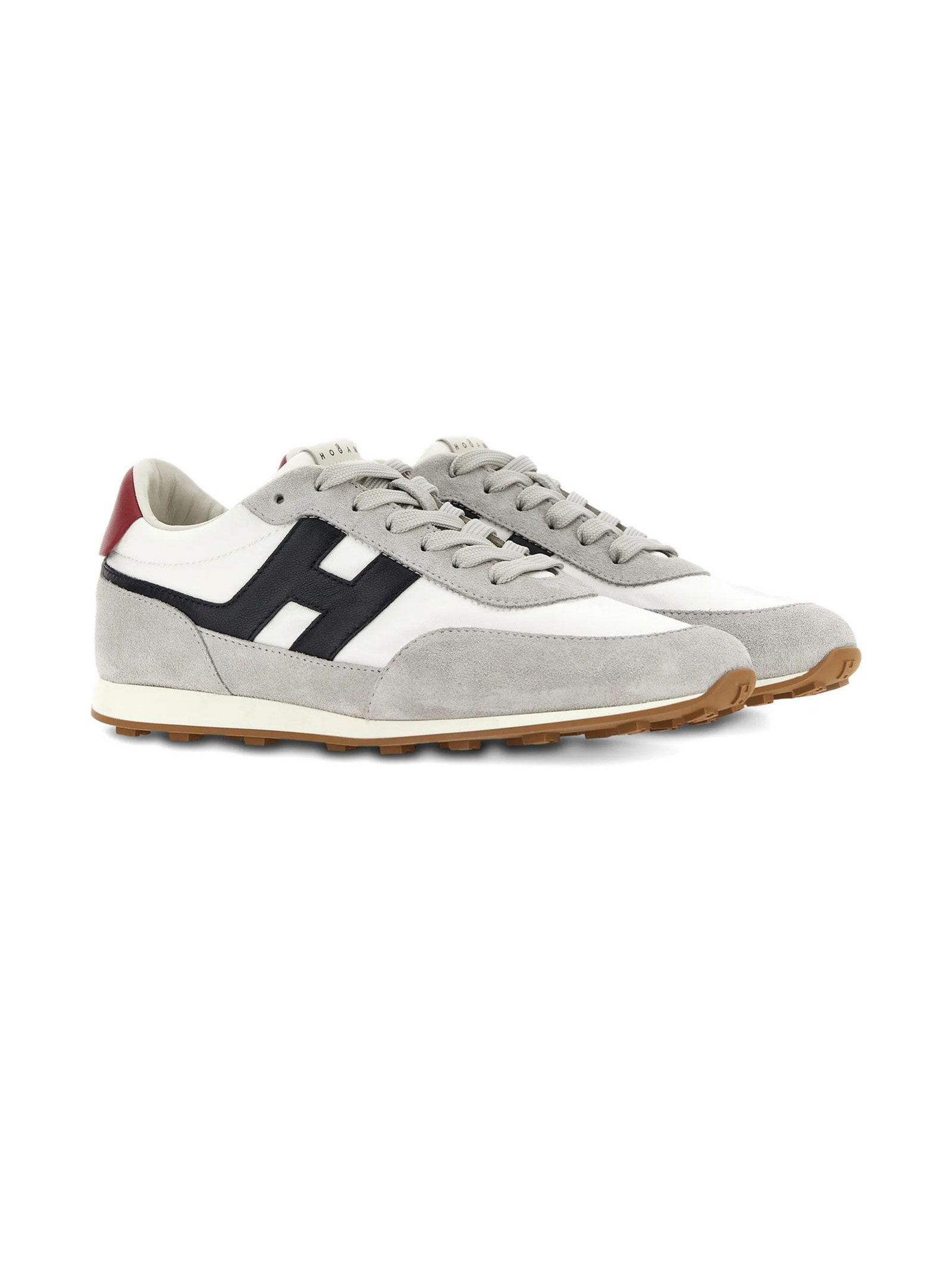Hogan Athletic Blue, Gray, and Red Sneakers, Suede upper, Fabric inserts, H logo and smooth leather details, 8 mm memory foam insole, Rubber outsole, Total height 3.5 cm