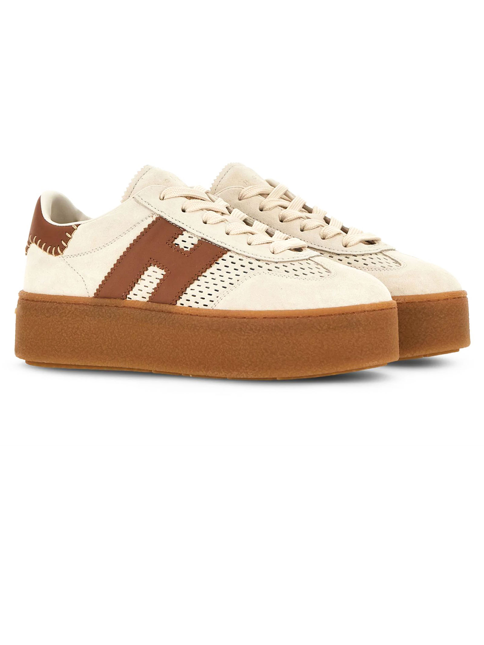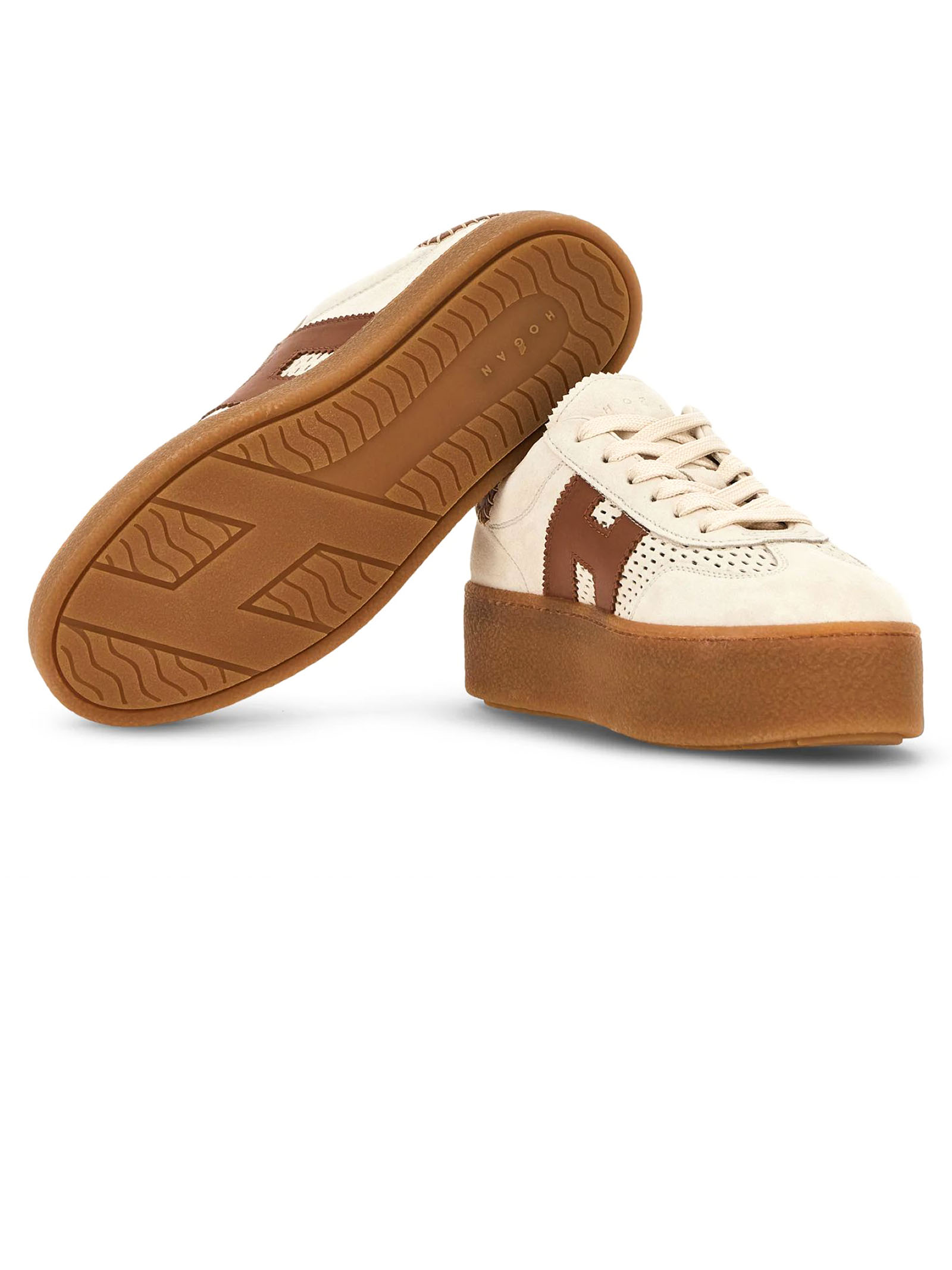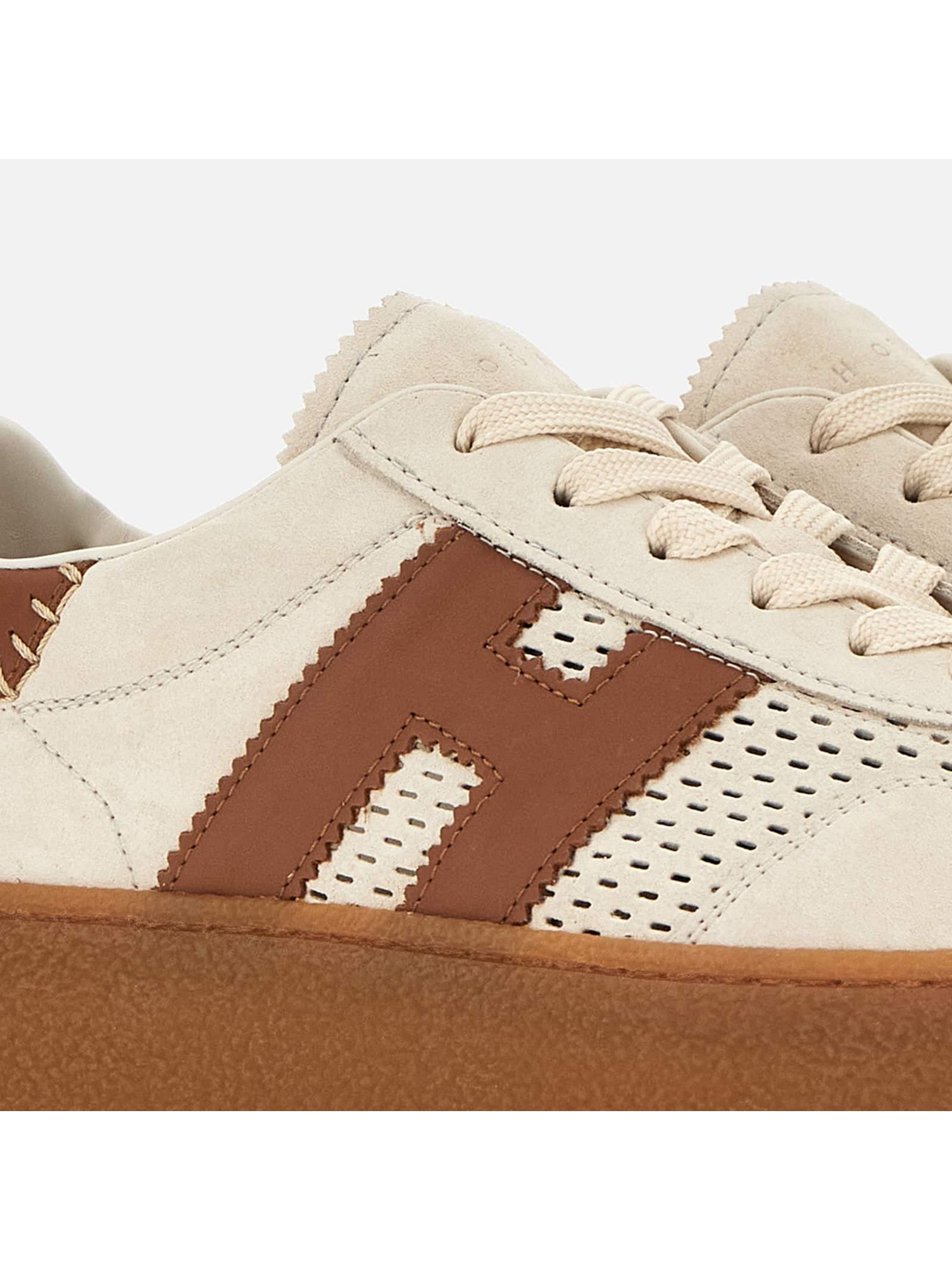 Hogan Cool Beige Sneakers, suede upper, notched H logo on the side and smooth leather details, 8 mm memory foam insole, rubber platform sole, total height 5.6 cm
