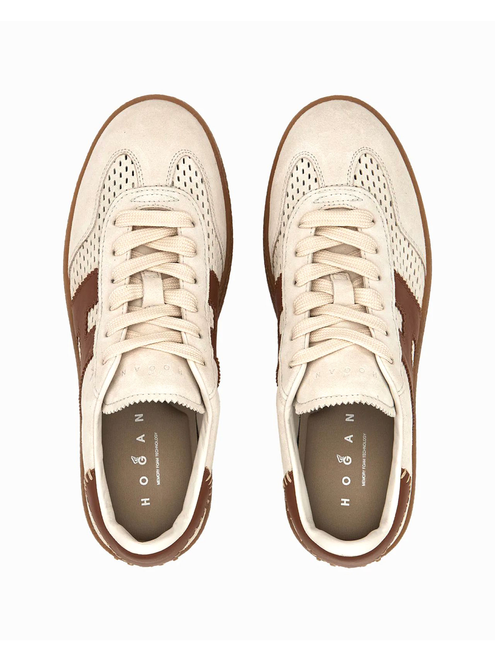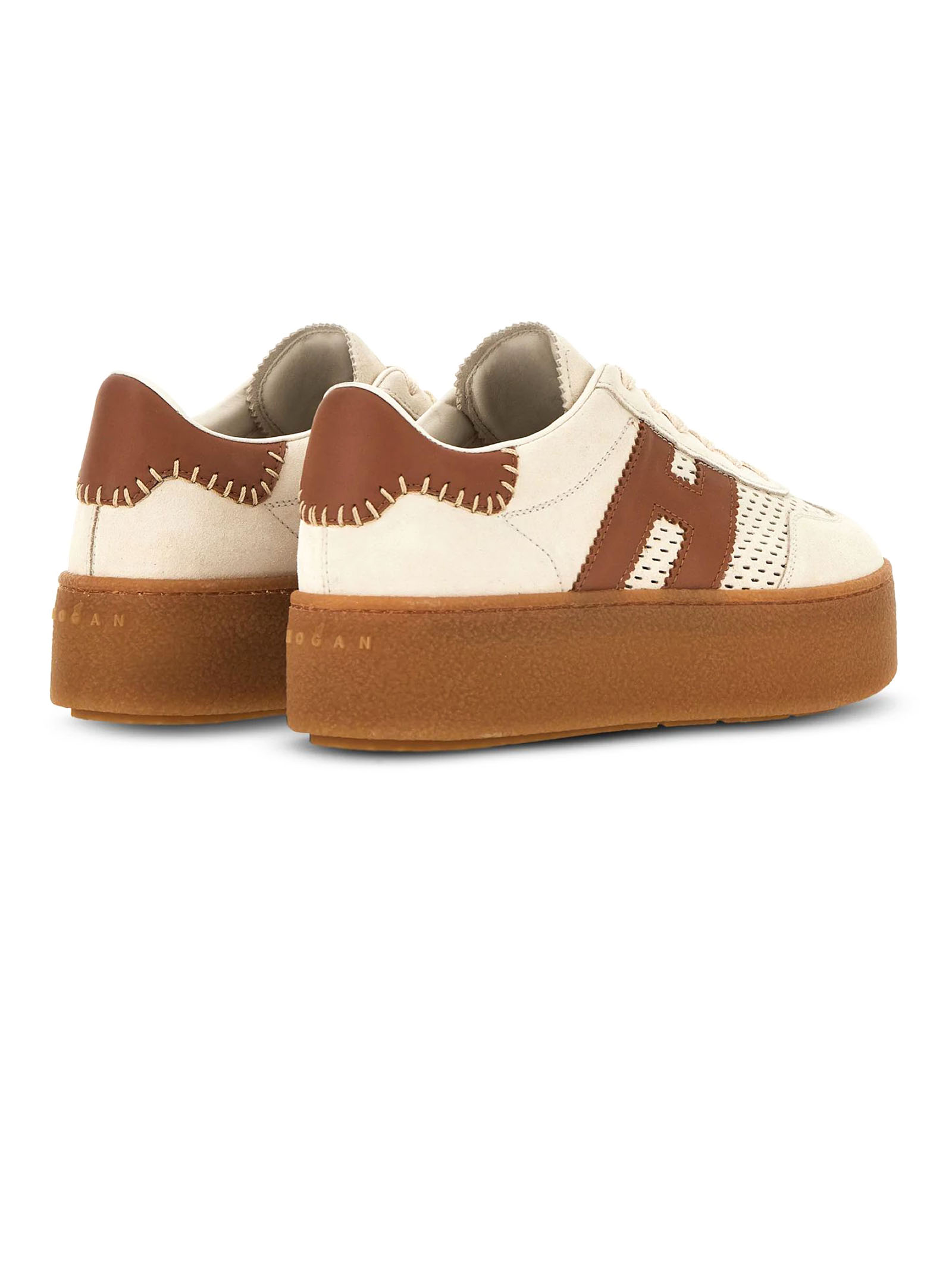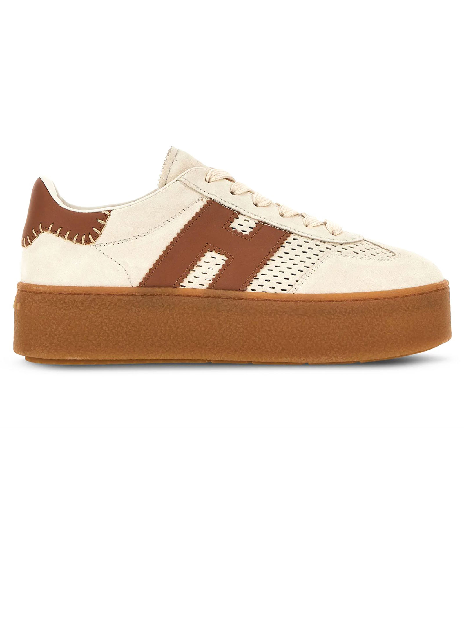 Hogan Cool Beige Sneakers, suede upper, notched H logo on the side and smooth leather details, 8 mm memory foam insole, rubber platform sole, total height 5.6 cm
