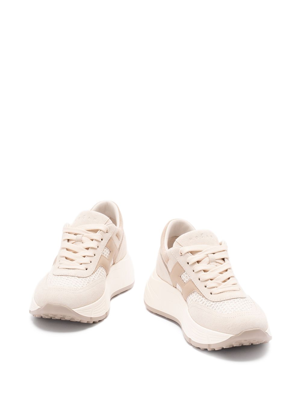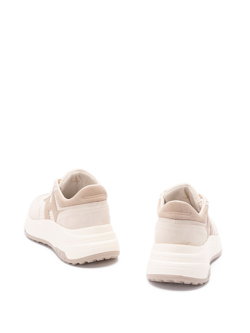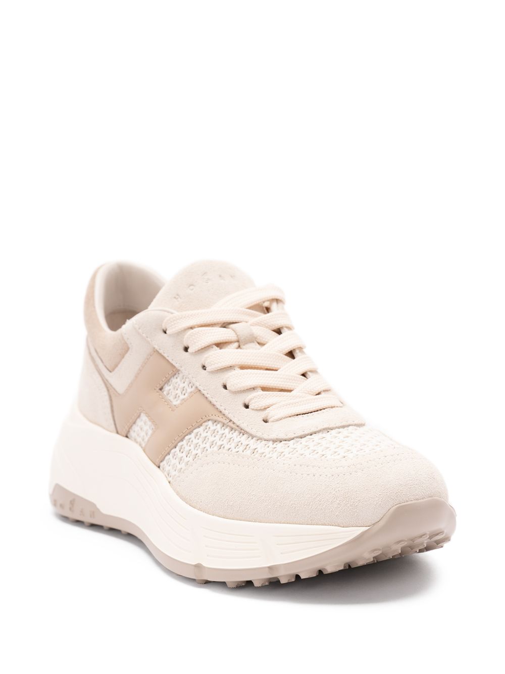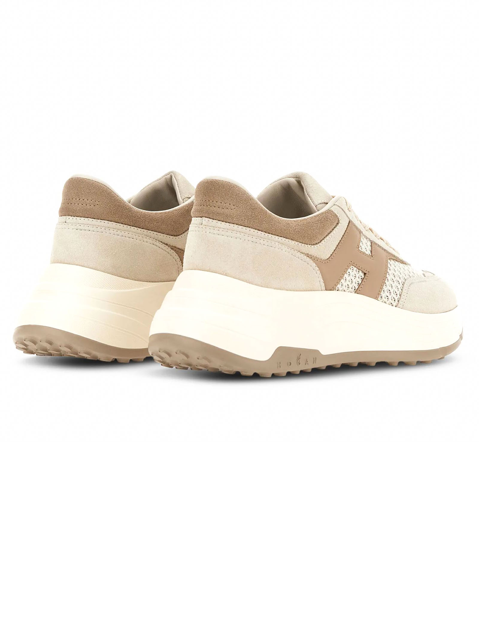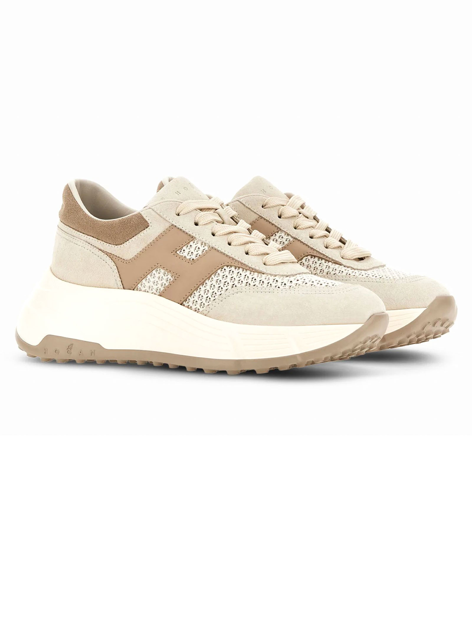 Hogan Hi-Fi Sneakers in Brown and Beige, suede and crochet fabric upper, smooth leather side panel, 8 mm memory foam insole, rubber outsole, total height 6.5 cm