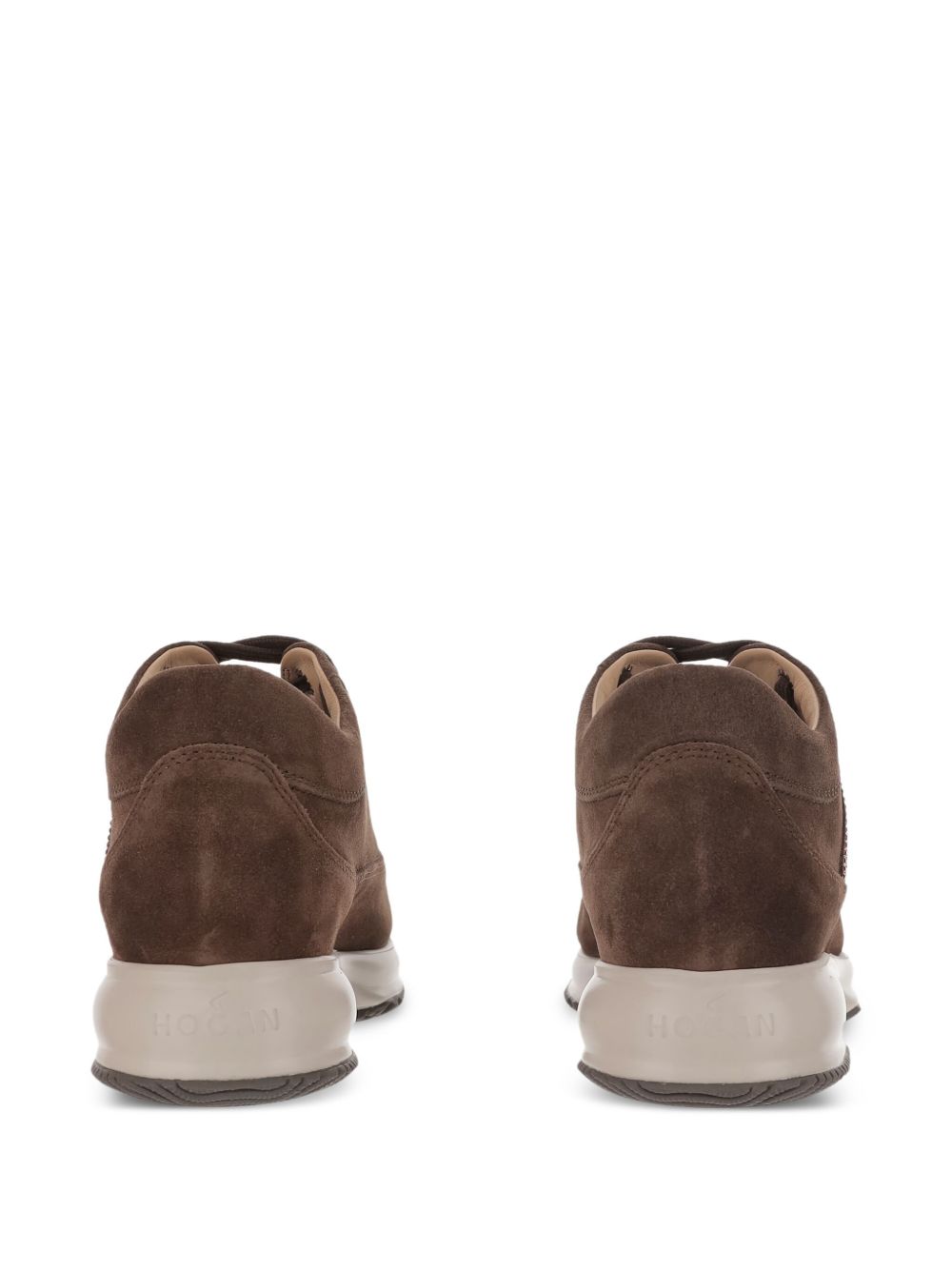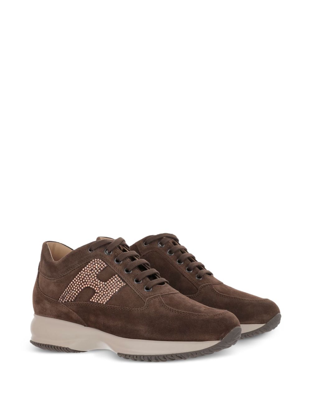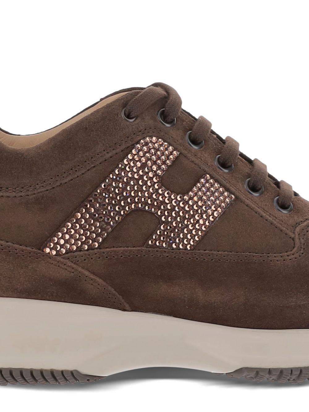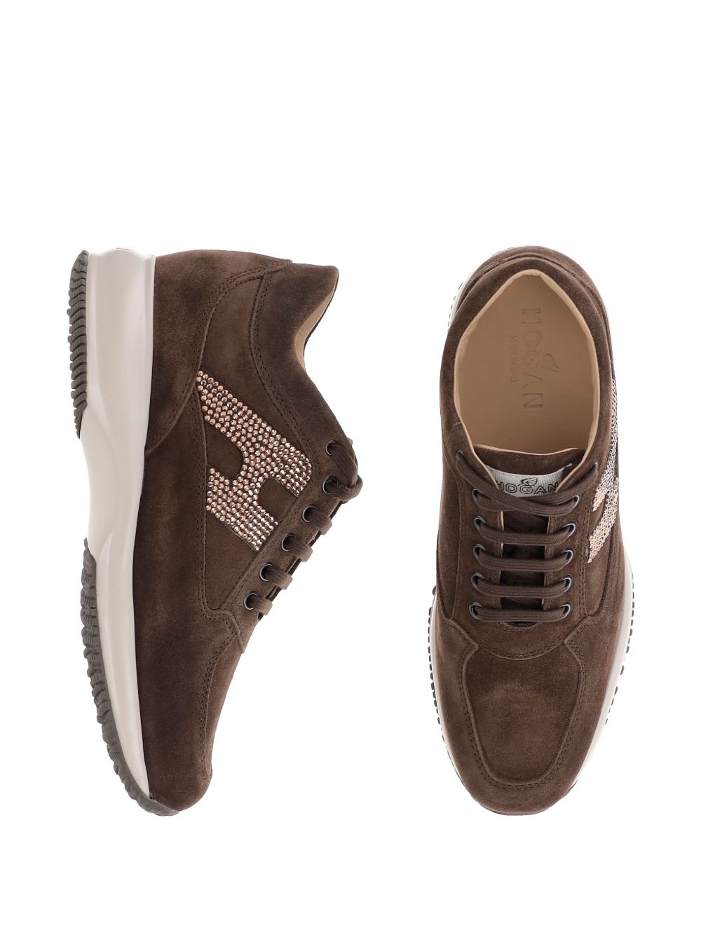 Hogan Interactive Sneakers Brown, suede leather, strass H on the side, removable insole 1.2 cm, rubber sole, total height 5.7 cm
