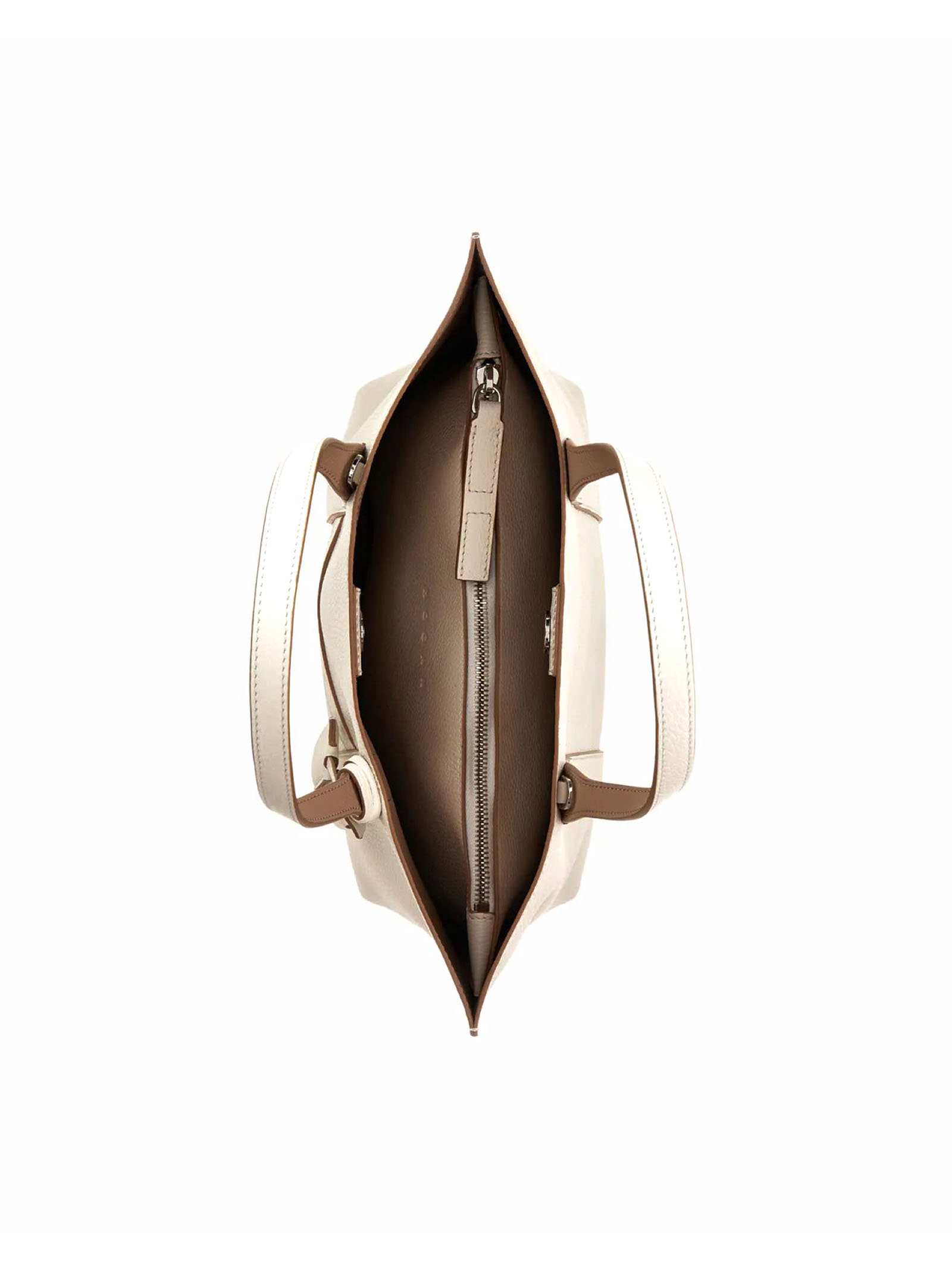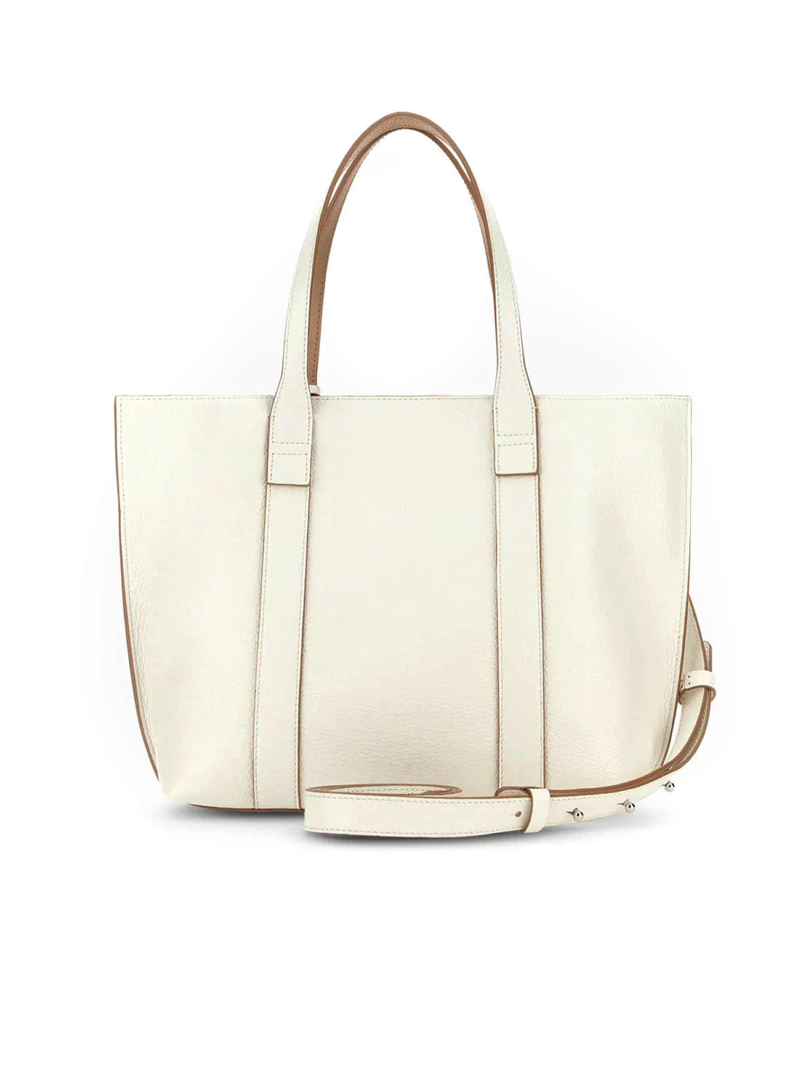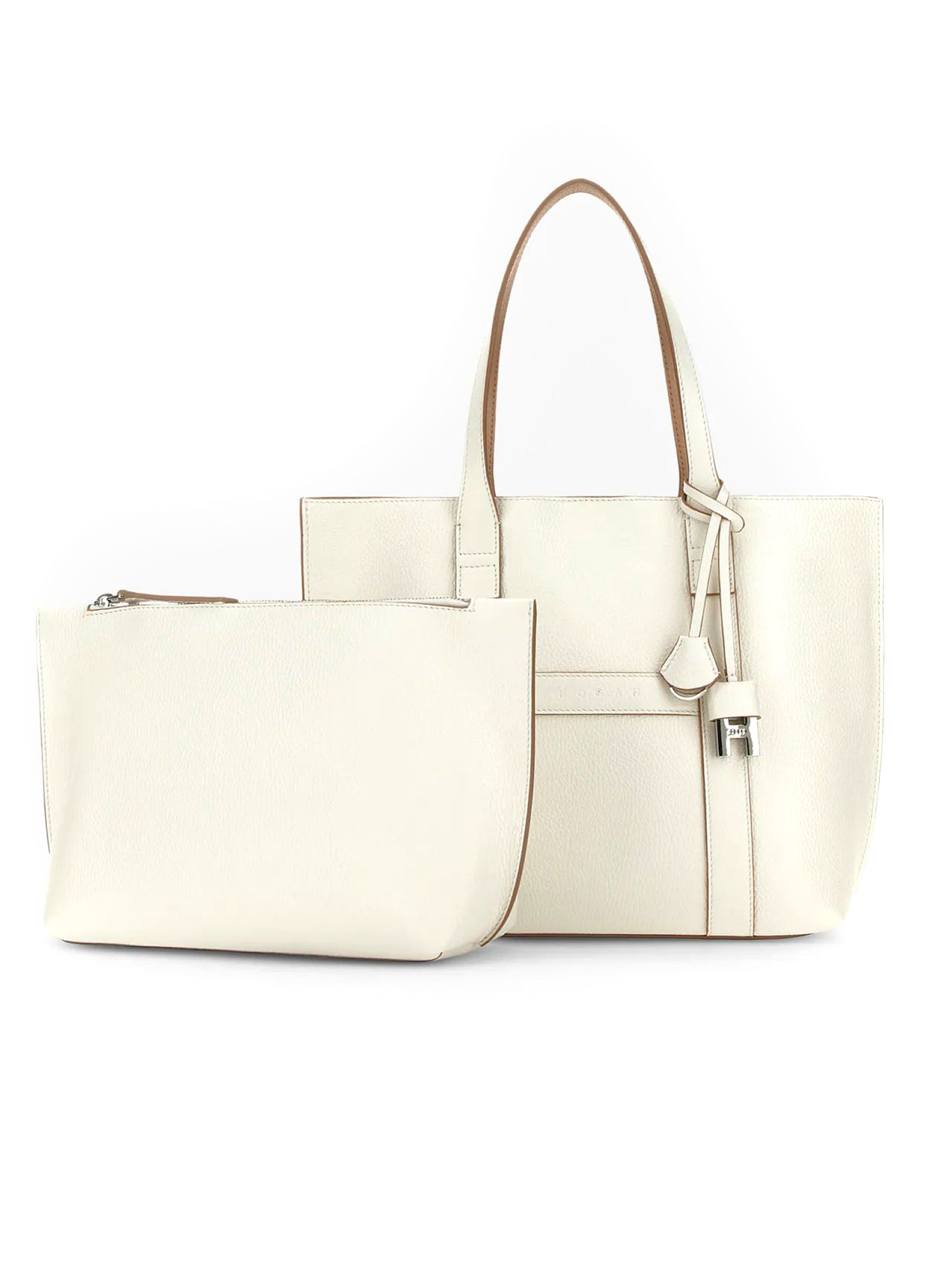 Hogan Script Shopping Bag Small Ivory, Item crafted in leather, Stamped Hogan logo, Dimensions: 35 x 23 x 11 cm, Fixed handles, Adjustable and removable shoulder strap, Magnetic button closure, Removable zipped pouch