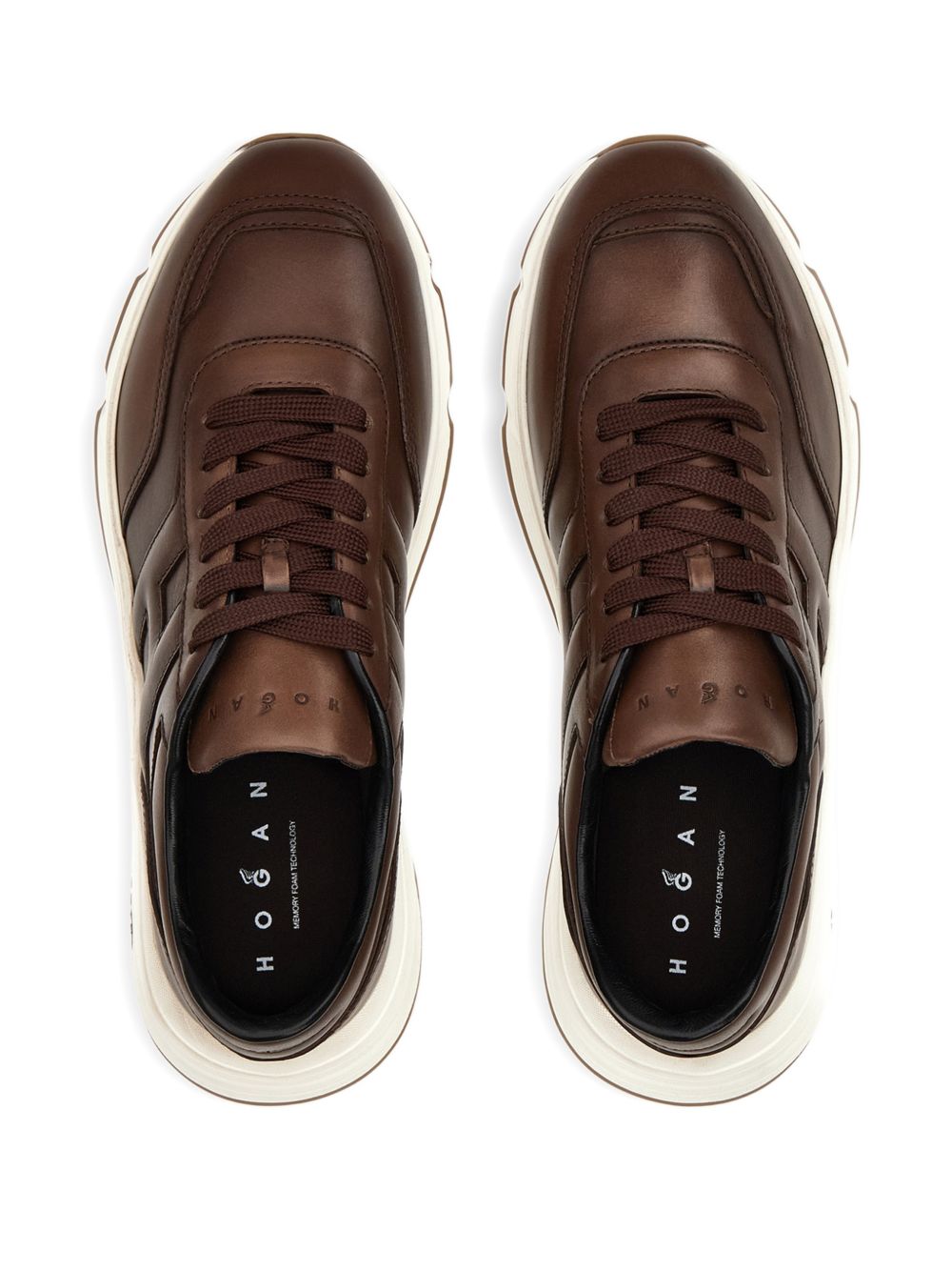 Hyperlight trainers in brown nappa leather, slanted H on the side, 8 mm memory foam insole, rubber sole, total height 4.5 cm