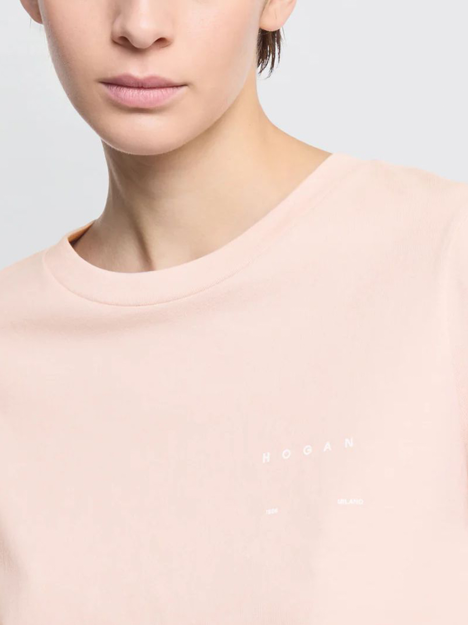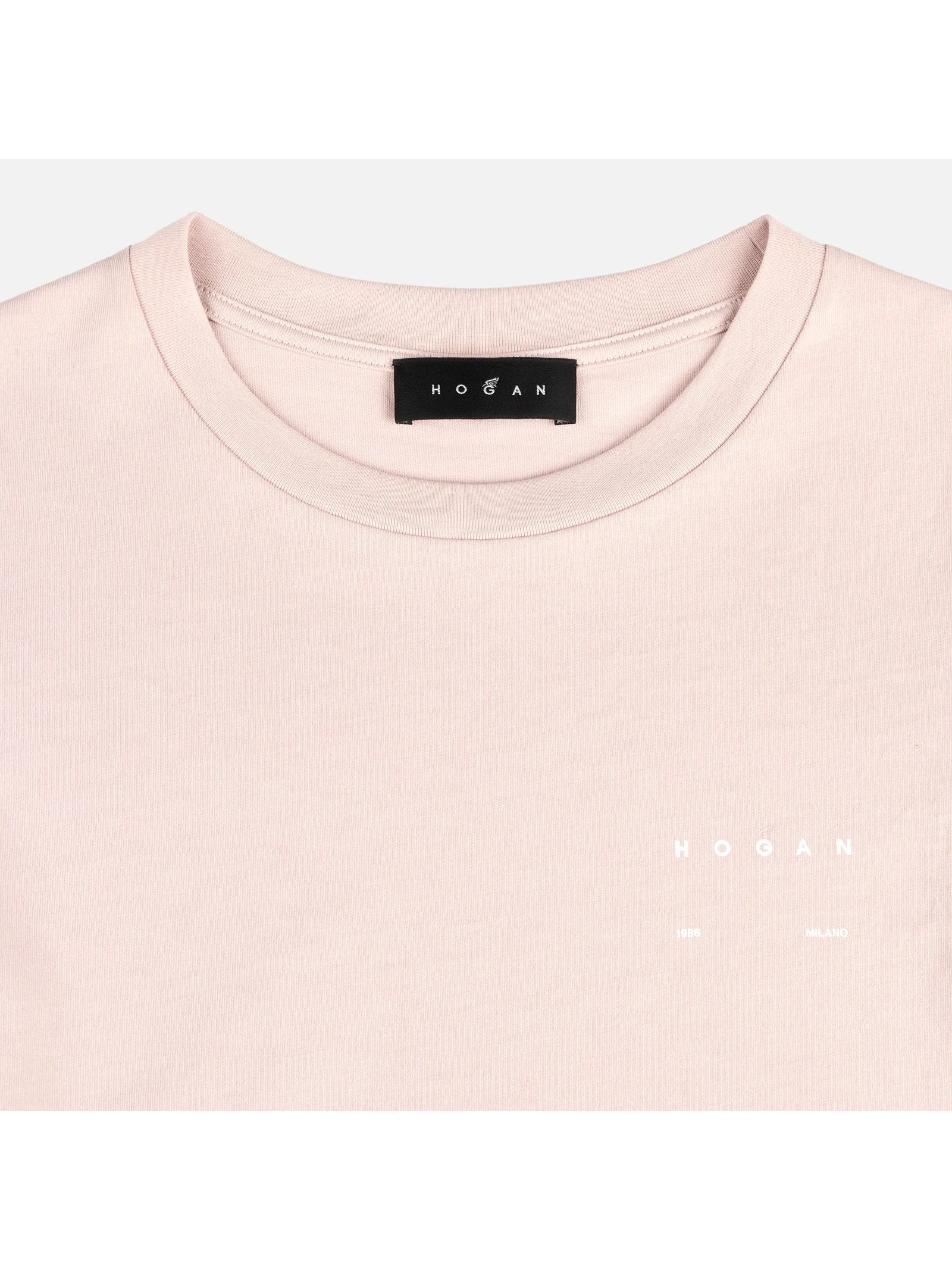 Crew neck T-shirt made of cotton jersey, with contrasting Hogan logo printed on the chest.