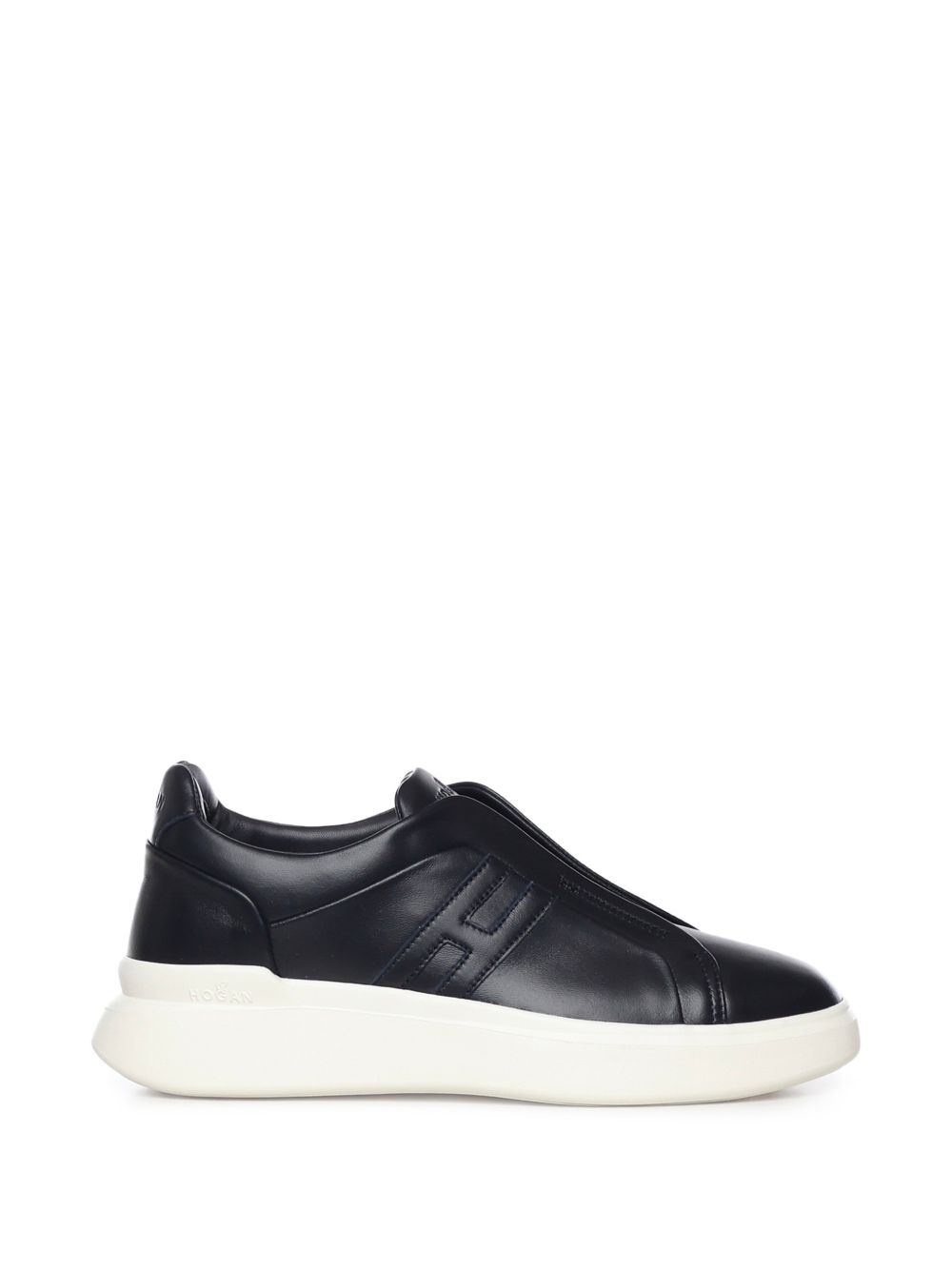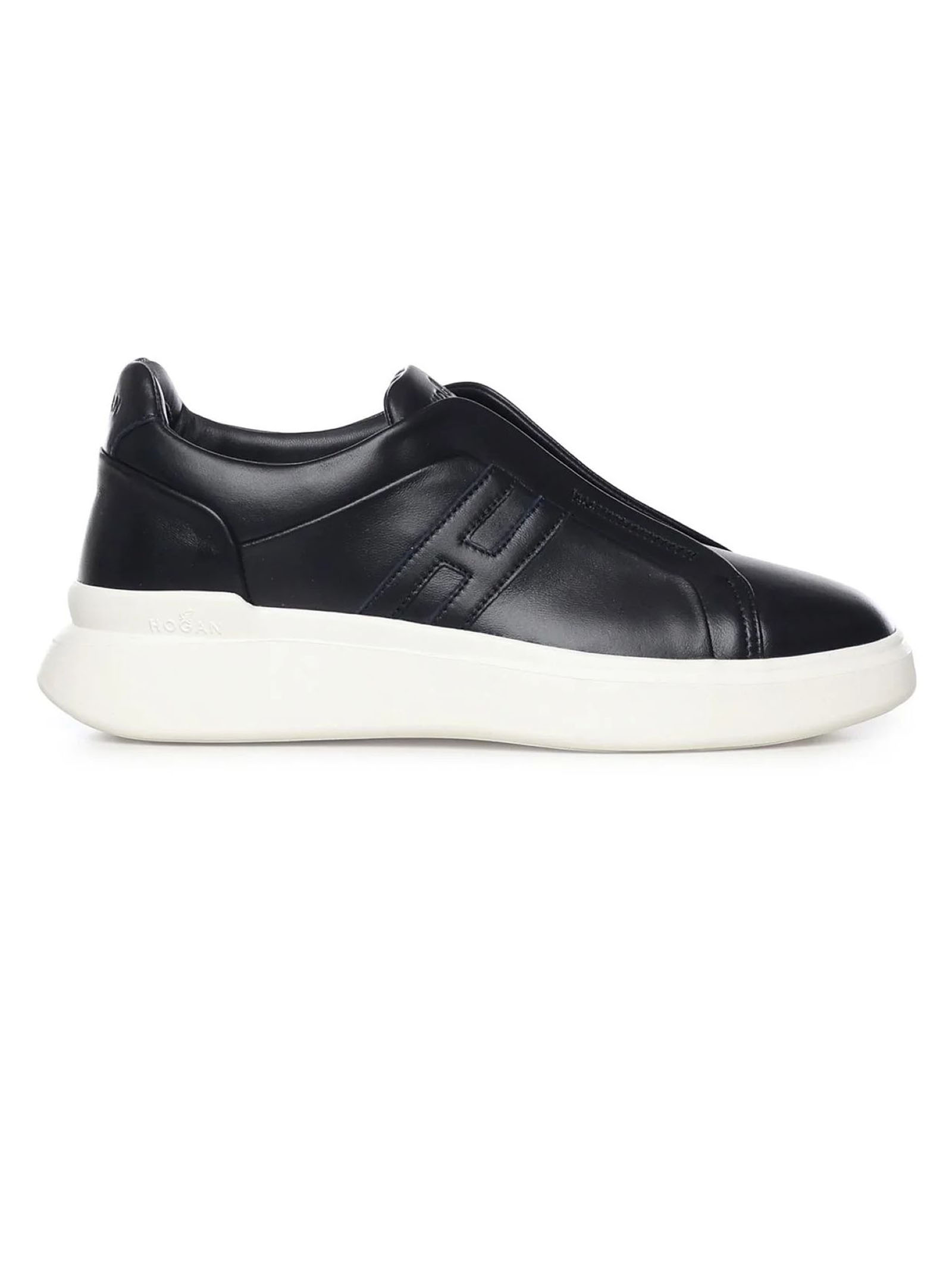 Slip-On Hogan H580 Black, Leather upper, H logo on the side, Hidden elastic inserts, 8 mm memory foam footbed, Rubber sole, Total height 4.5 cm