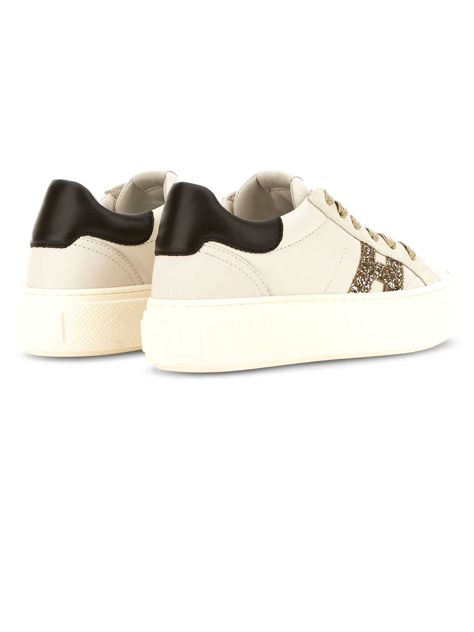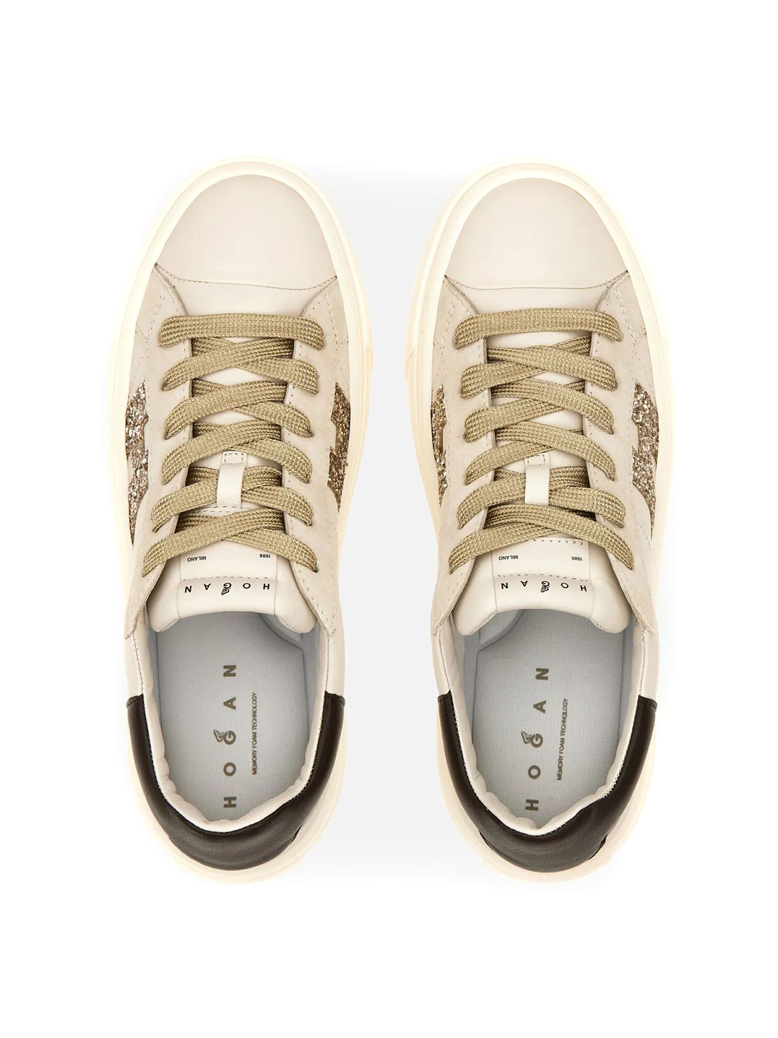 Sneakers Hogan Crosswind Ivory, Nappa leather upper, Suede inserts, Rubberized leather details, Glitter side H, 8 mm memory foam insole, Rubber sole, Total height 5.6 cm
