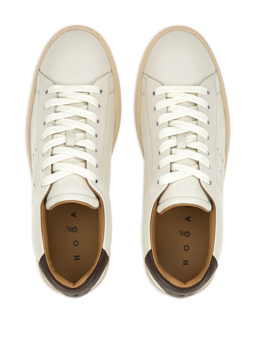 Sneakers Hogan H672 Ivory Brown, Nappa leather upper, Smooth leather details, Perforated side H, Soft leather-covered insole 4.5 mm, Rubber sole, Total height 3.5 cm