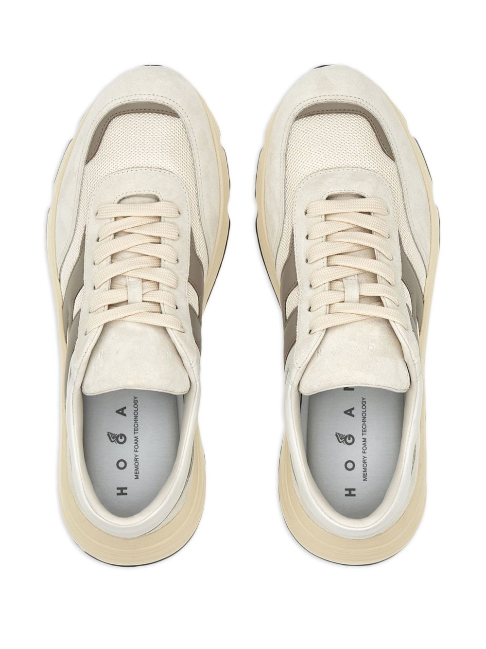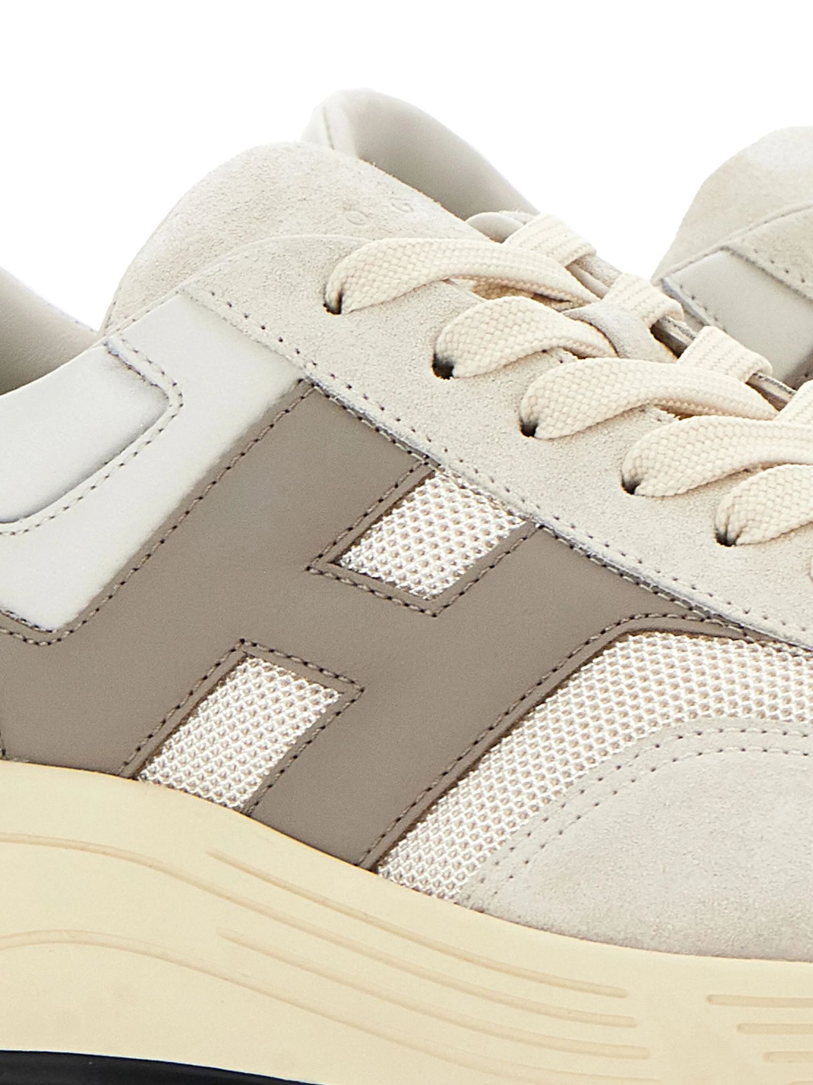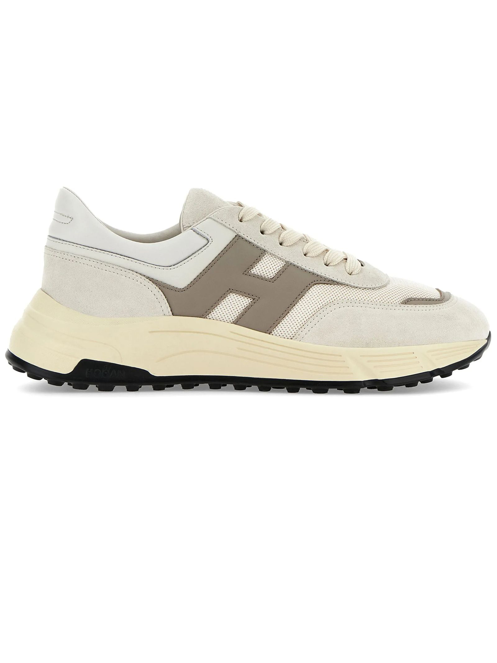 Sneakers Hogan Hyperlight Ivory Brown, Suede leather upper, Mesh inserts, Smooth leather details, Slanted side H, 8 mm memory foam insole, Rubber sole, Total height 4.5 cm