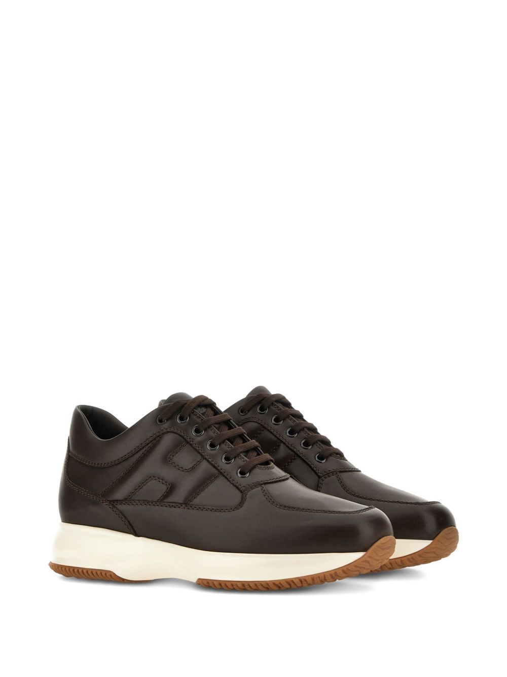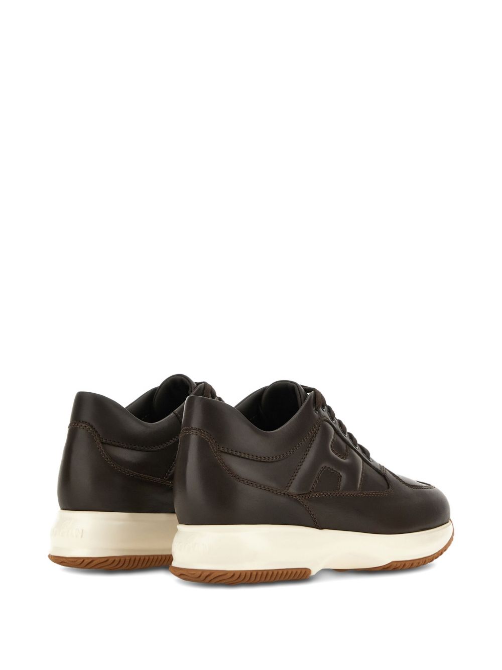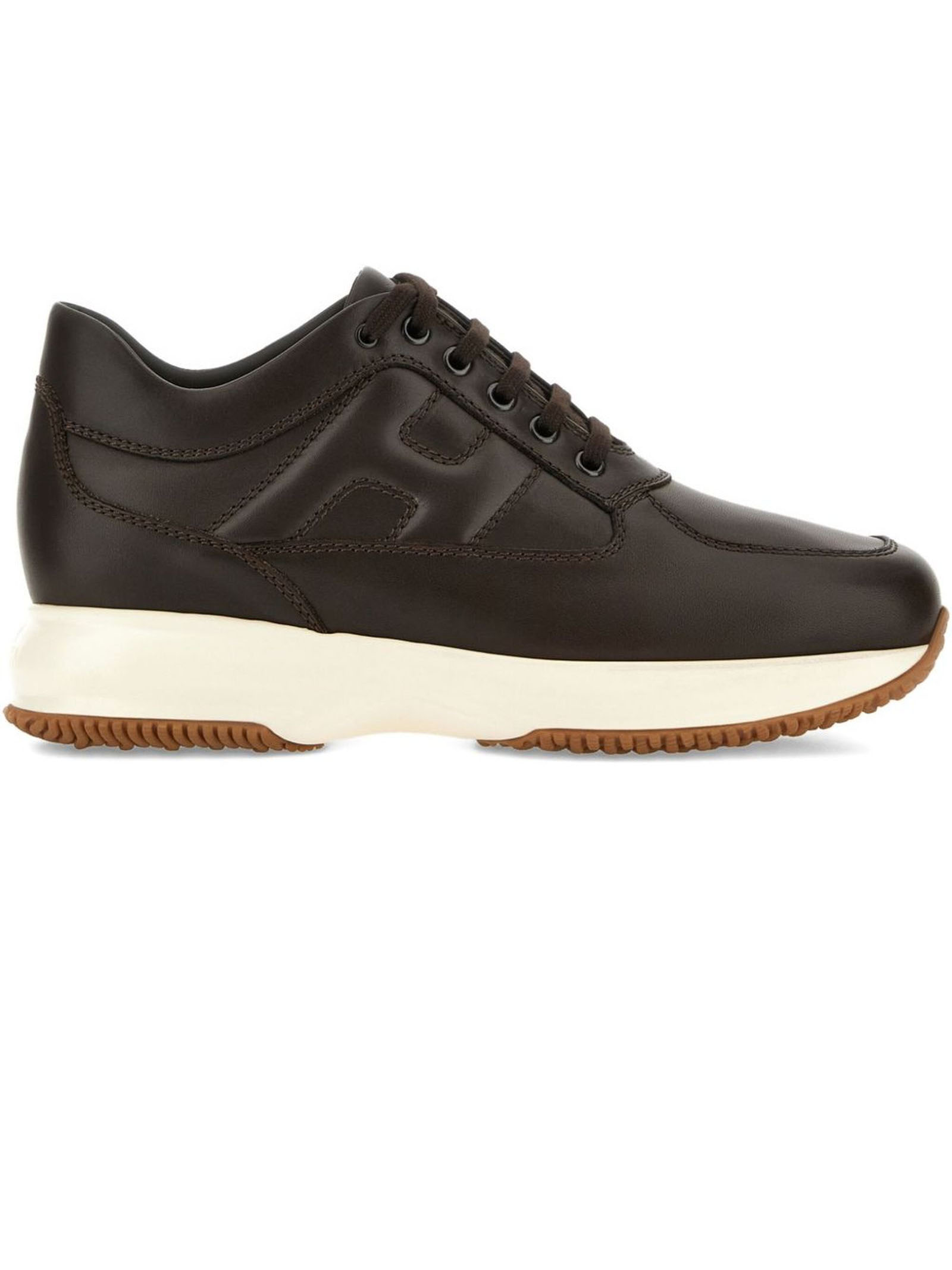 Sneakers Hogan Interactive Brown, Smooth leather upper, Visible stitching, Embossed H on the side, Removable 1.2 cm raised insole, Rubber sole, Total height 5.7 cm