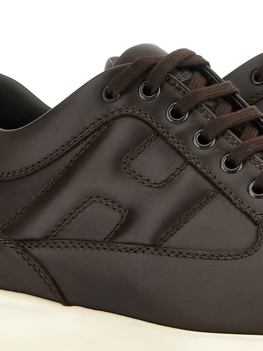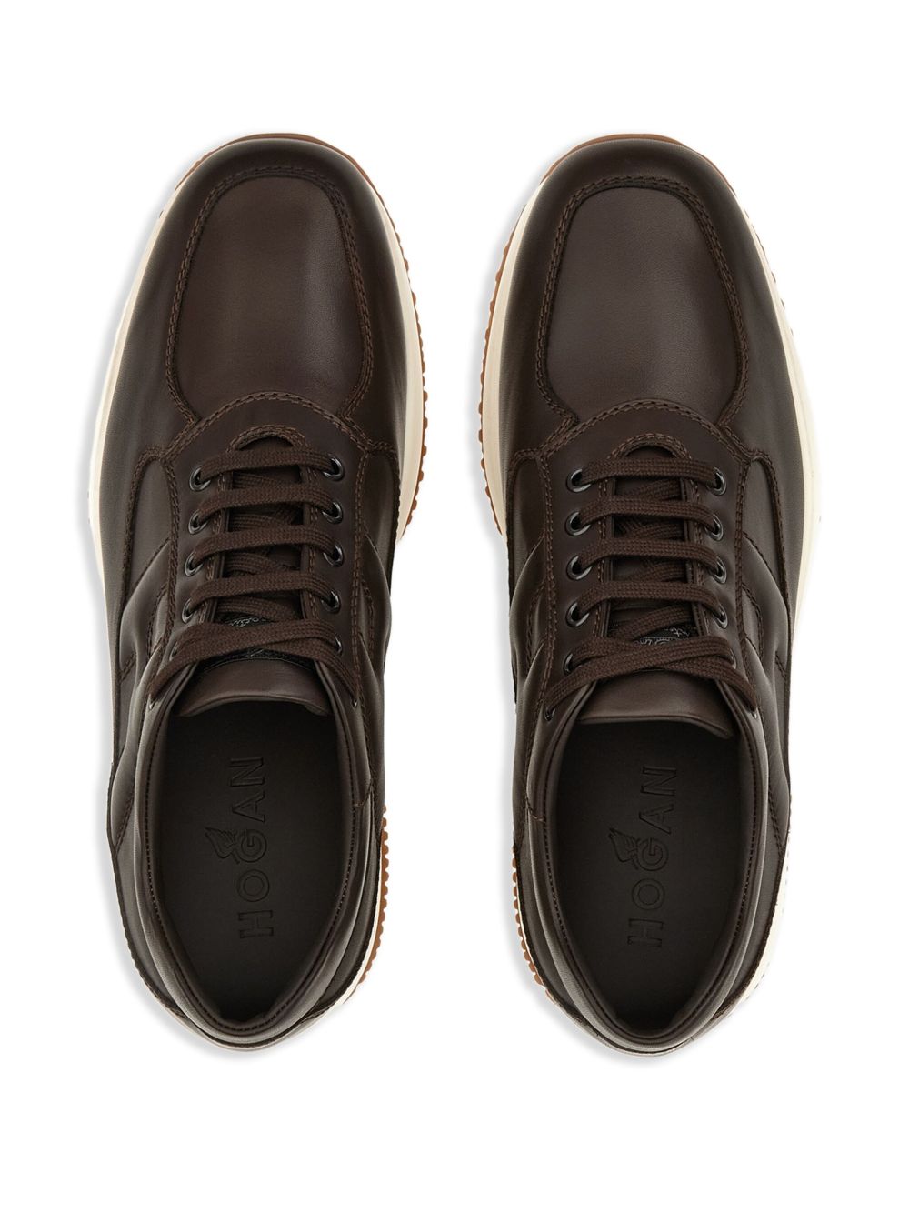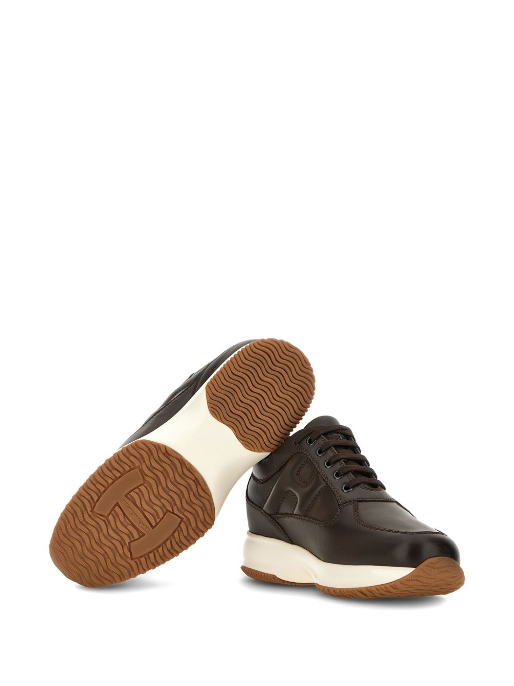 Sneakers Hogan Interactive Brown, Smooth leather upper, Visible stitching, Embossed H on the side, Removable 1.2 cm raised insole, Rubber sole, Total height 5.7 cm
