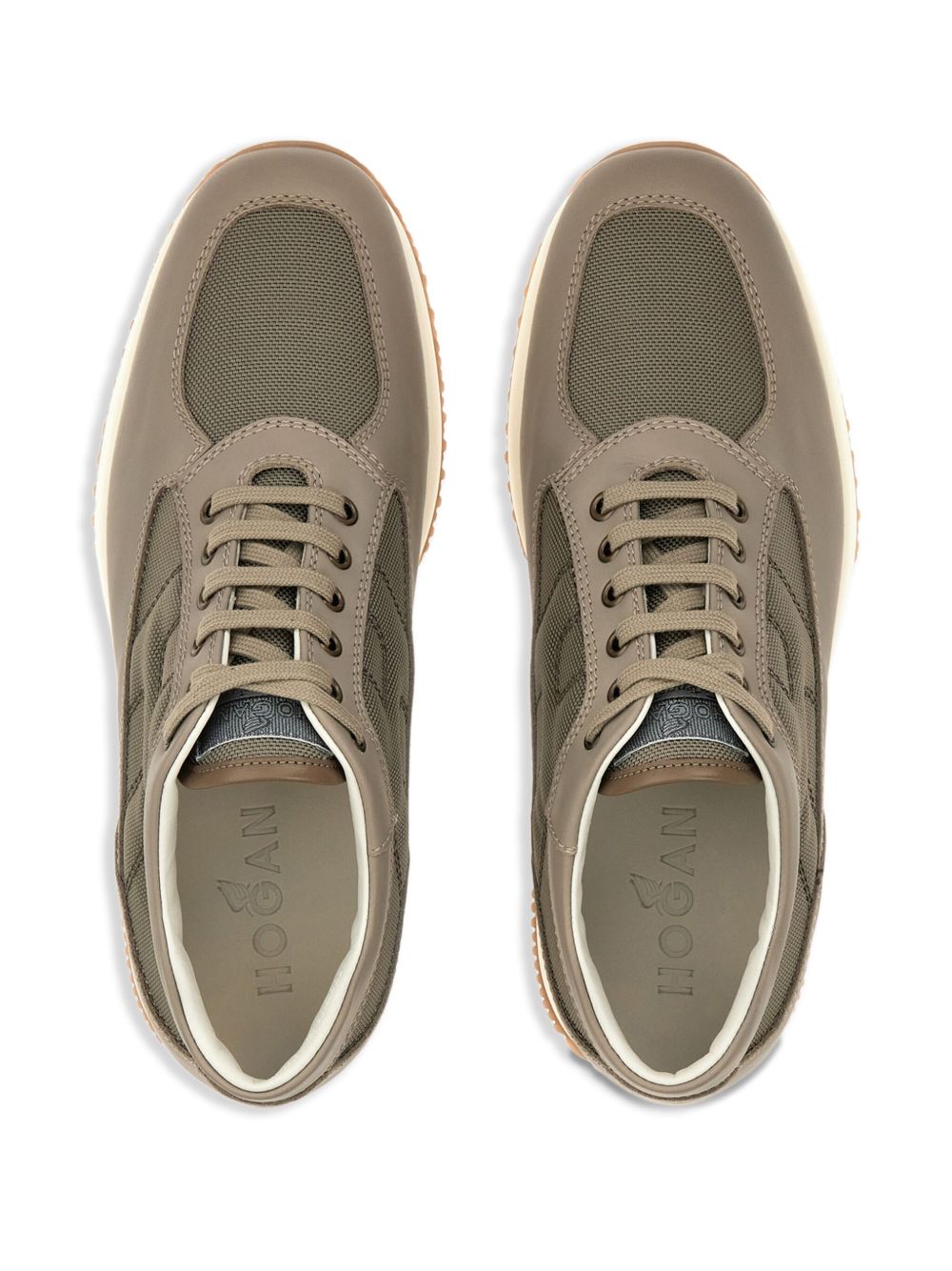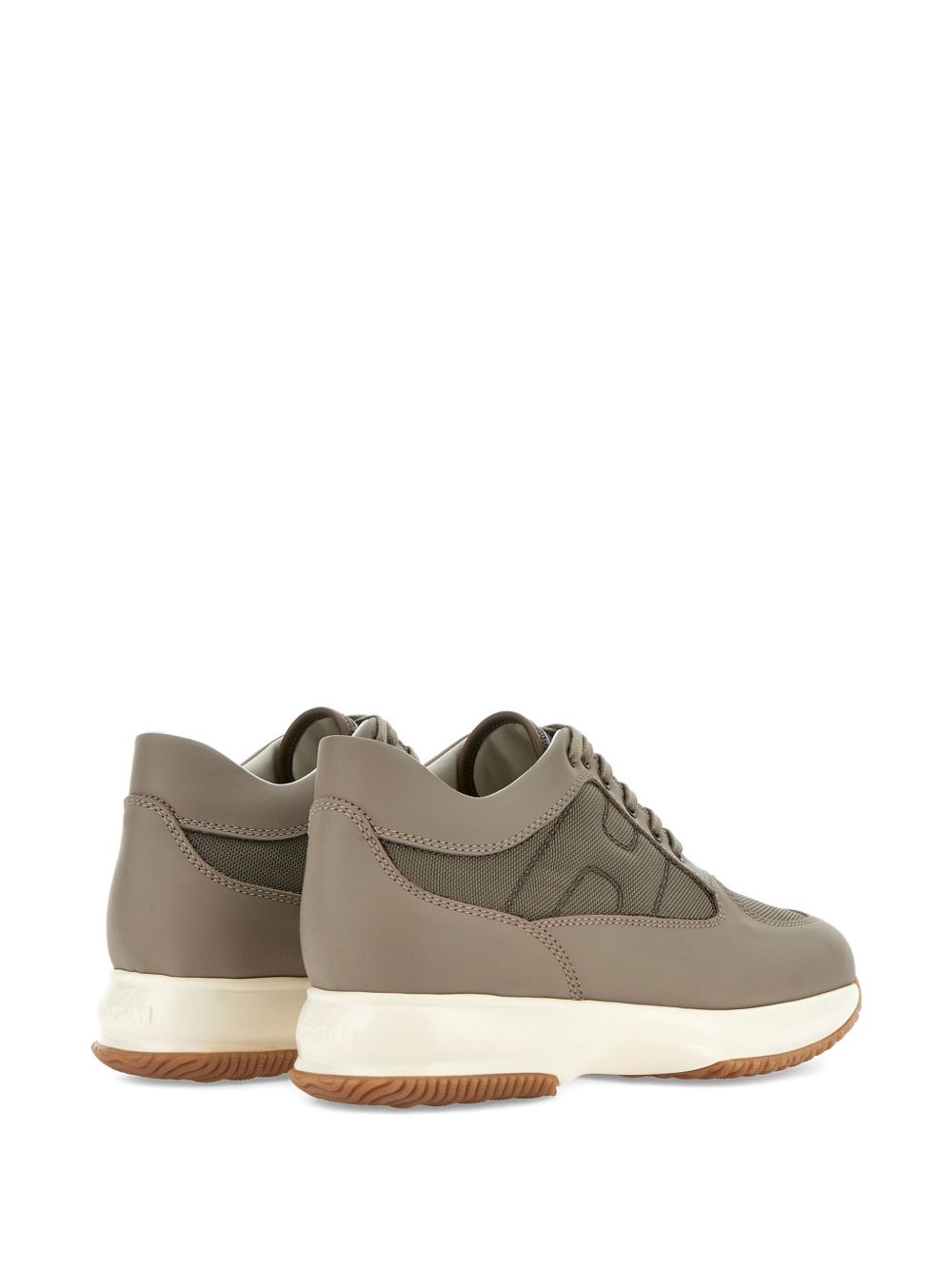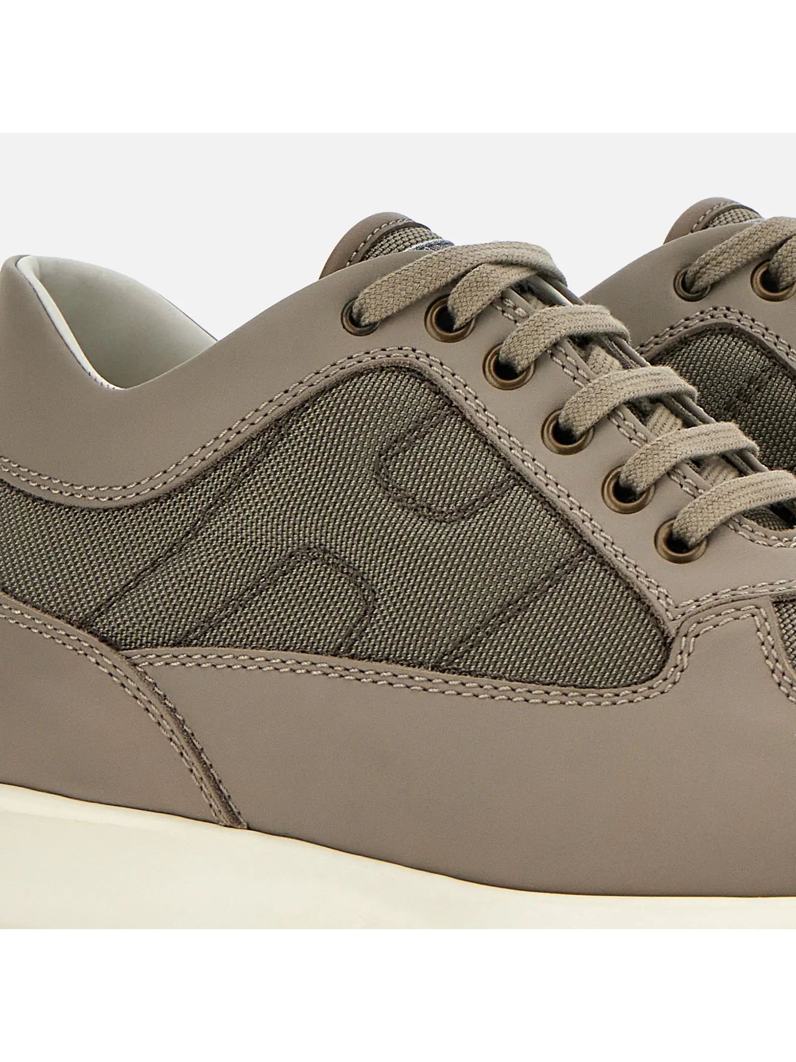 Sneakers Hogan Interactive Brown, Smooth leather upper, Woven fabric inserts, Exposed stitching, Embossed side H, Removable insole 1.2 cm, Rubber outsole, Total height 5.7 cm