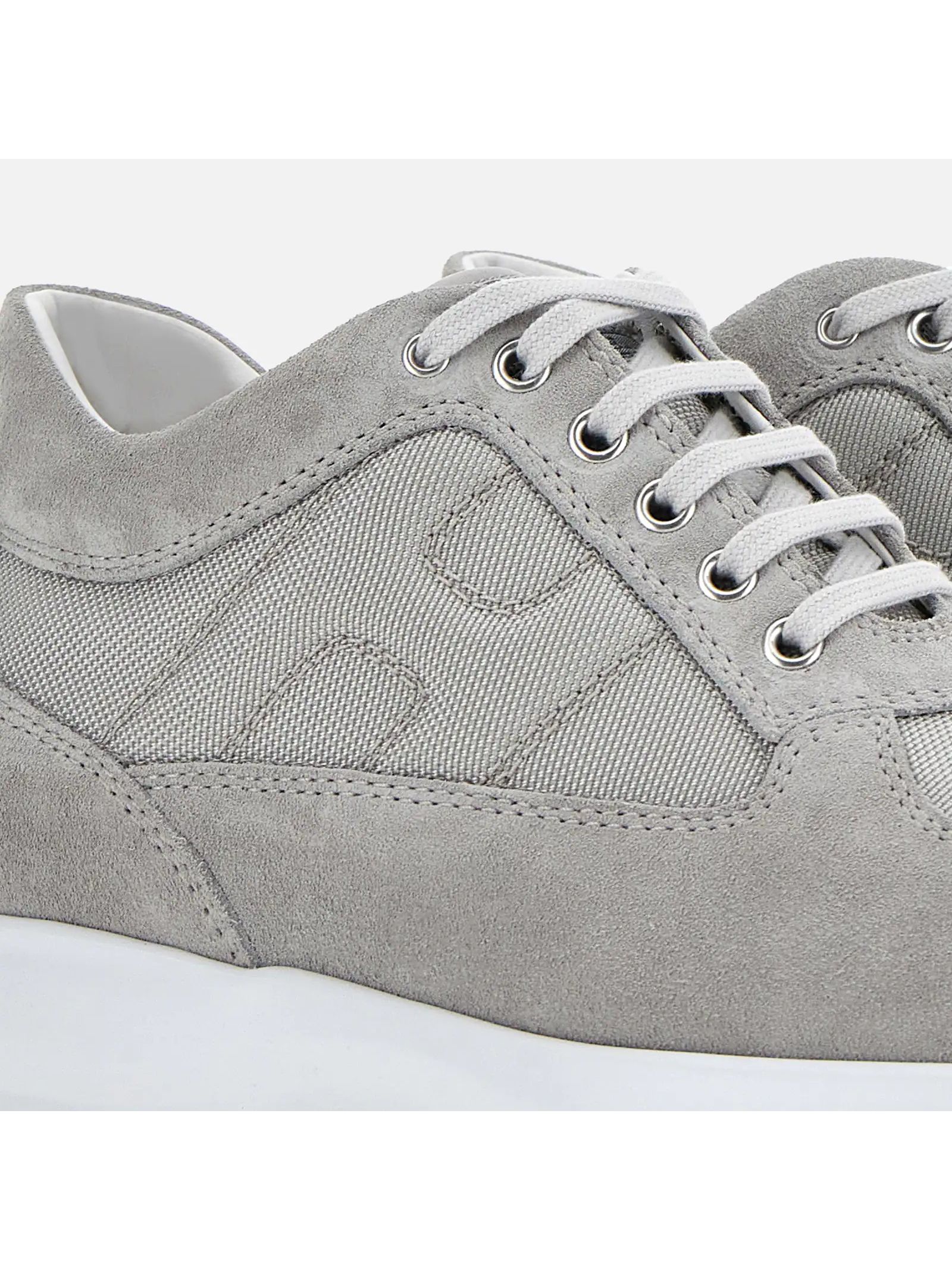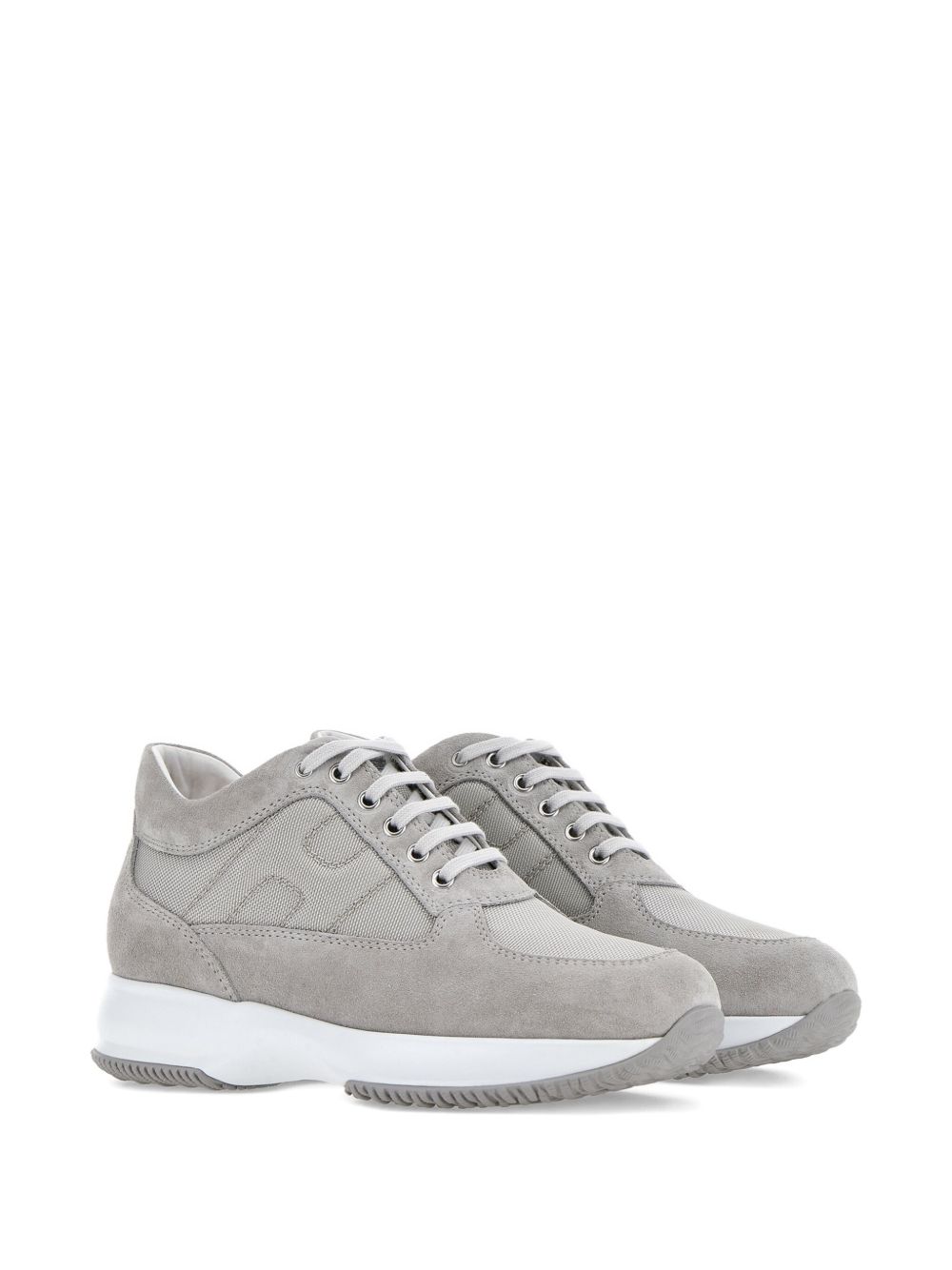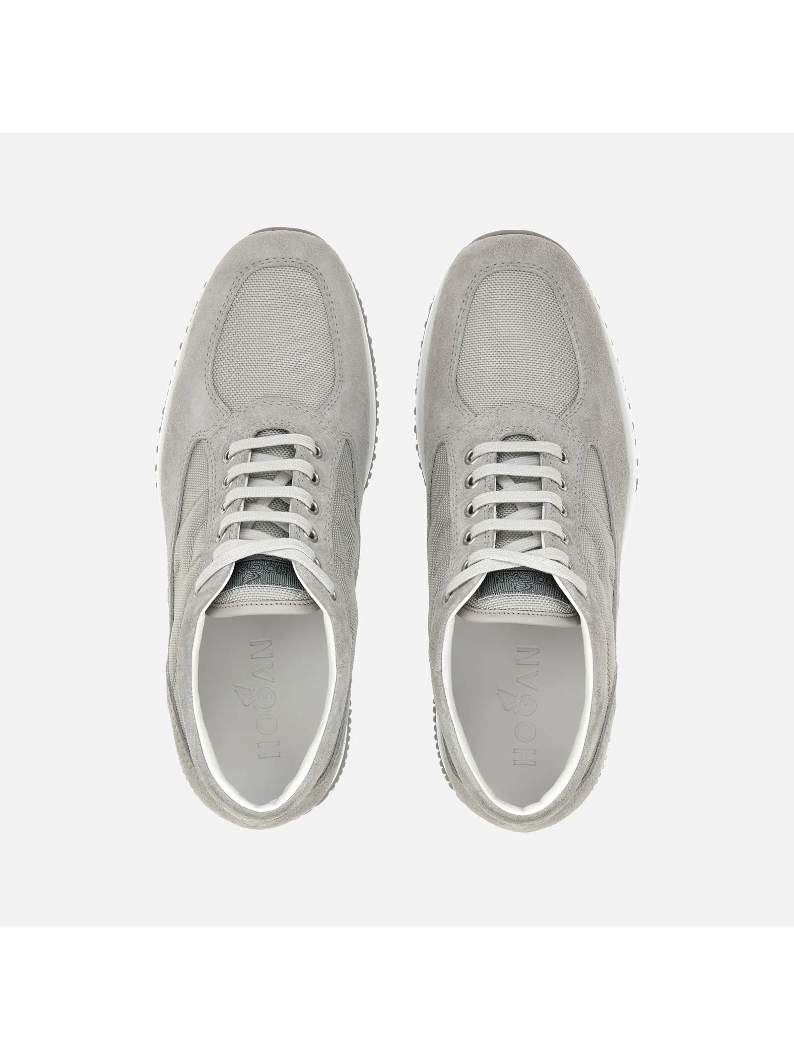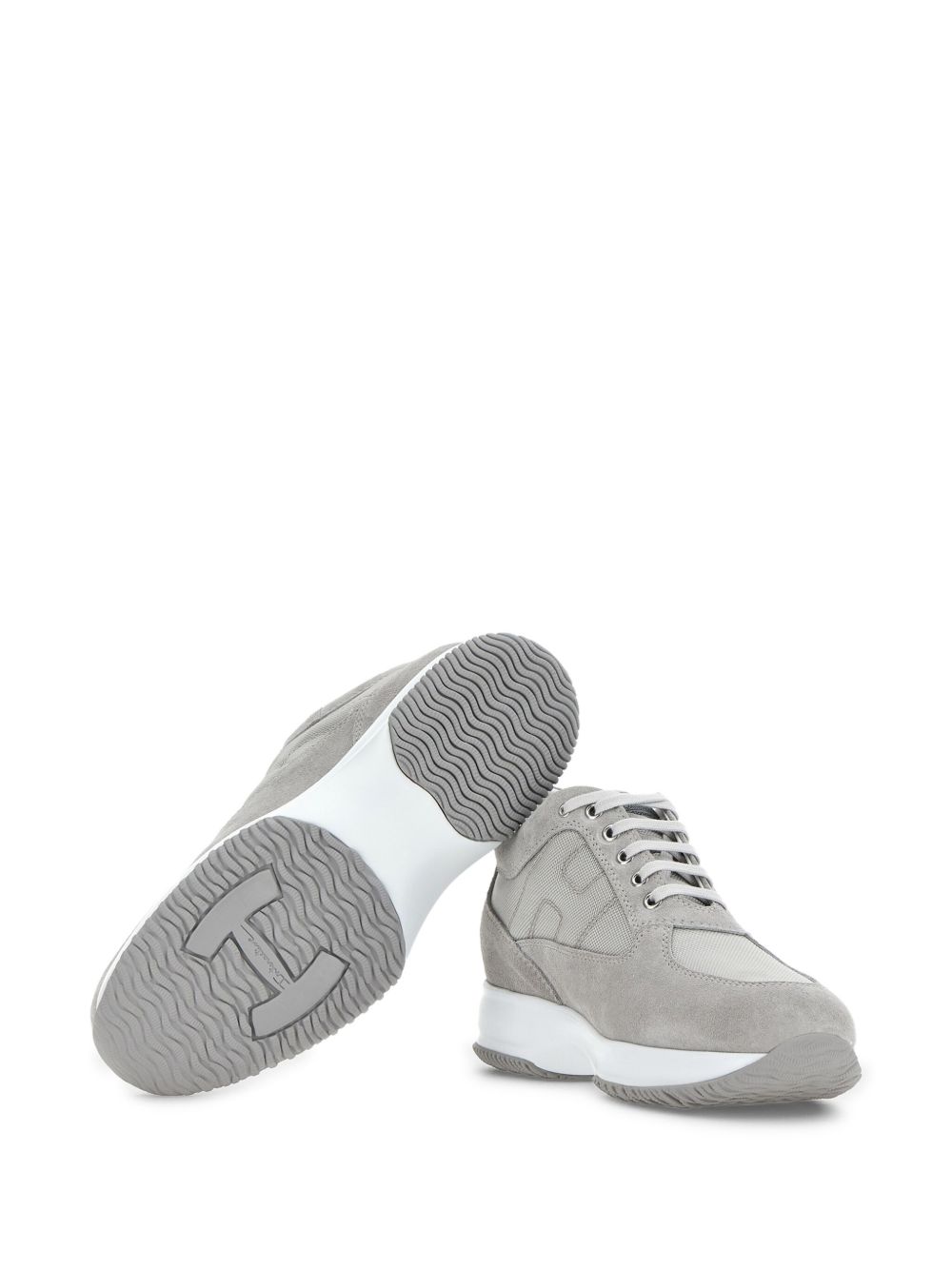 Sneakers Hogan Interactive Grey, Suede upper, Woven fabric inserts, Exposed stitching, Embossed side H, Removable insole 1.2 cm, Rubber outsole, Total height 5.7 cm