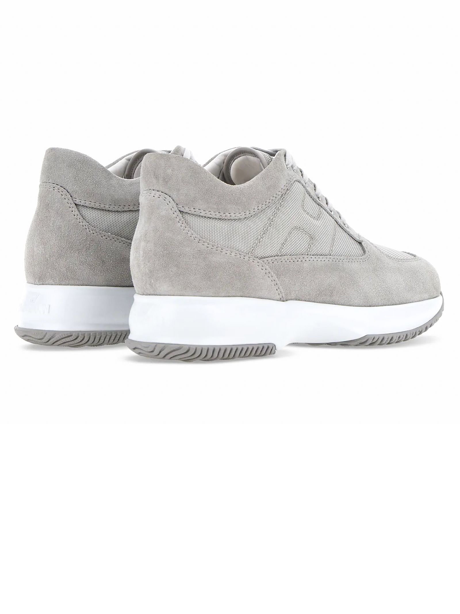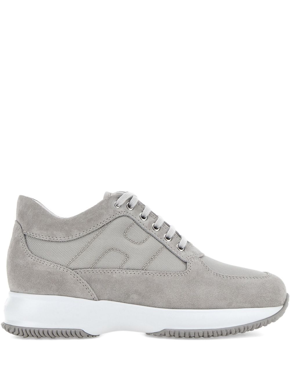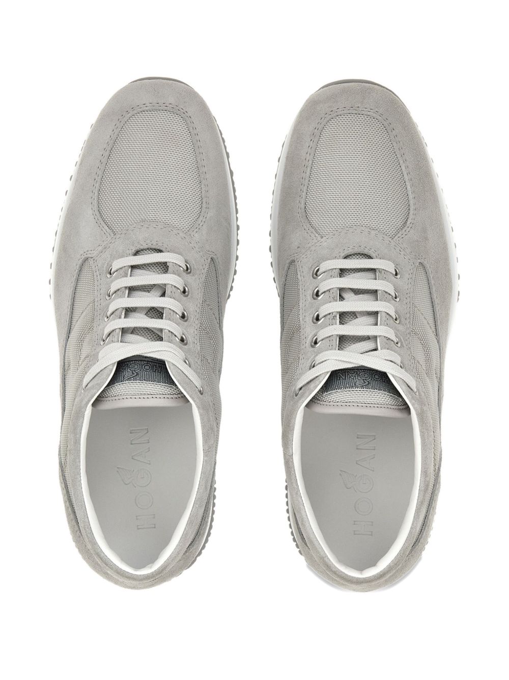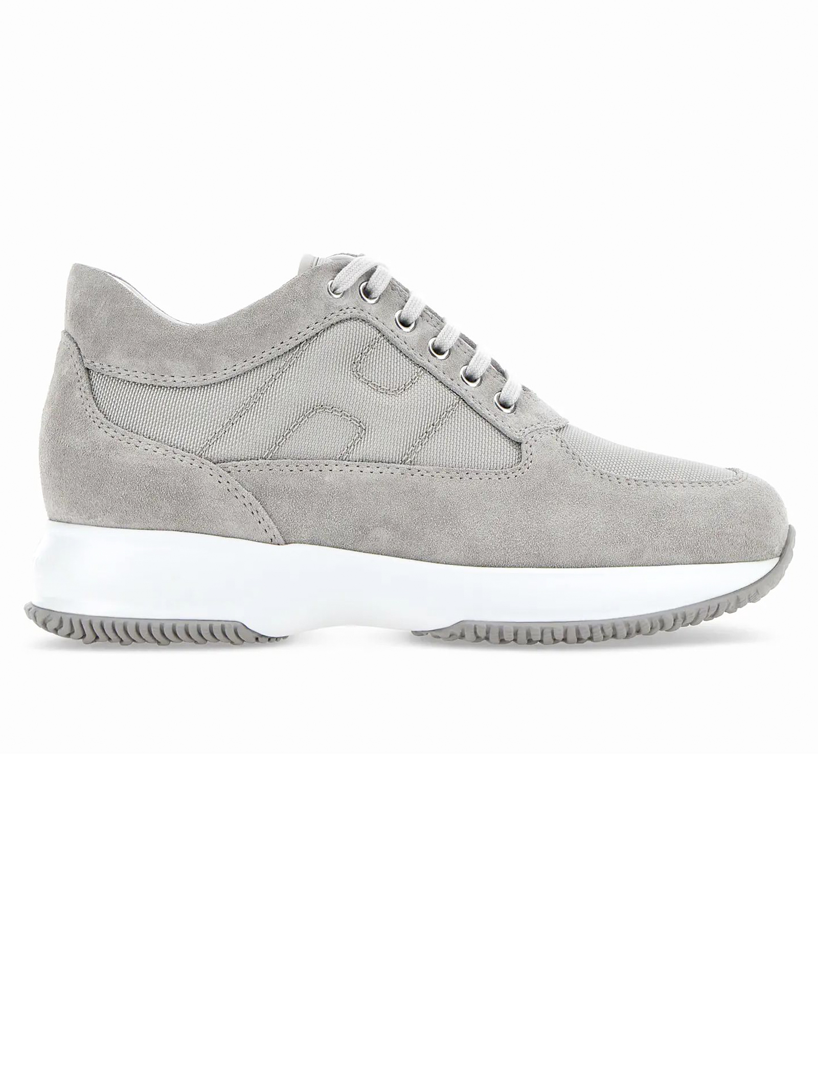 Sneakers Hogan Interactive Grey, Suede upper, Woven fabric inserts, Exposed stitching, Embossed side H, Removable insole 1.2 cm, Rubber outsole, Total height 5.7 cm