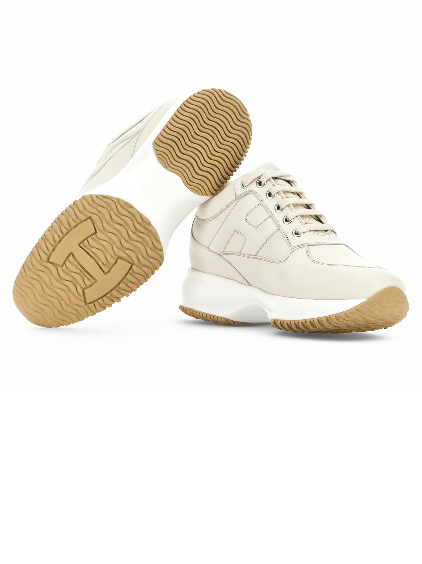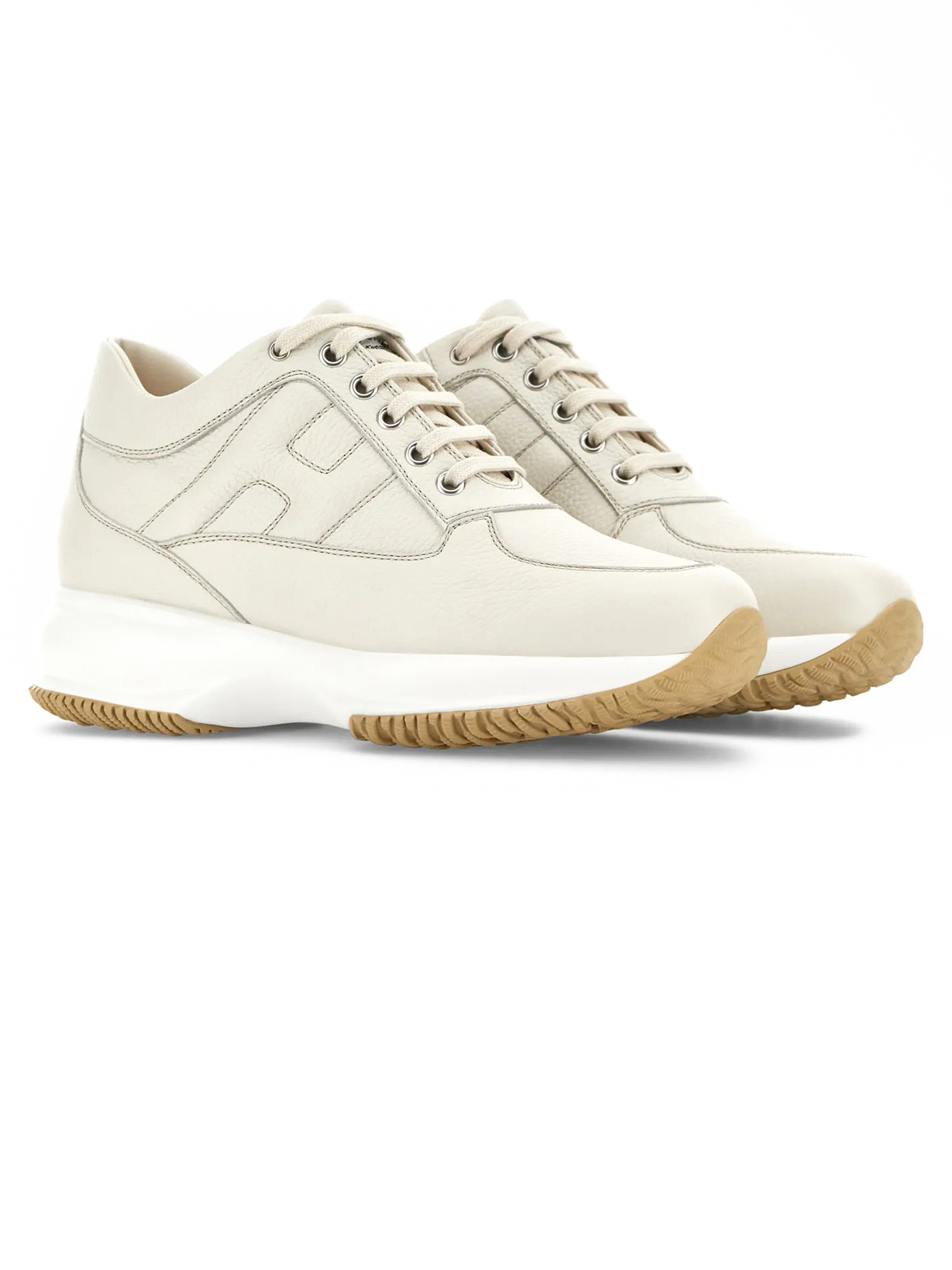 Sneakers Hogan Interactive Ivory, Nappa leather upper, Padded side H, Removable insole 1.2 cm, Rubber sole, Total height 5.7 cm