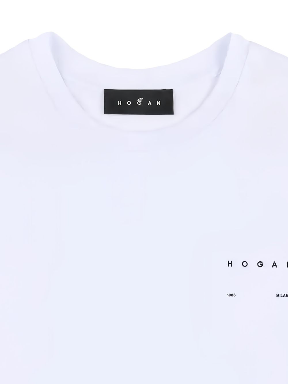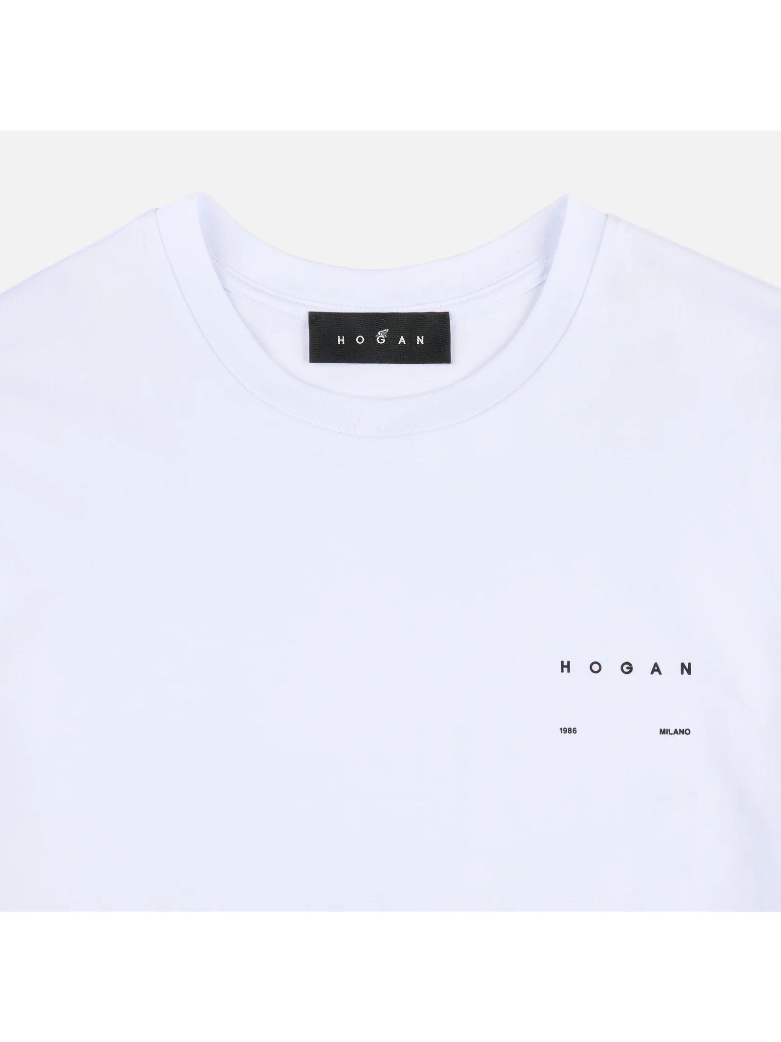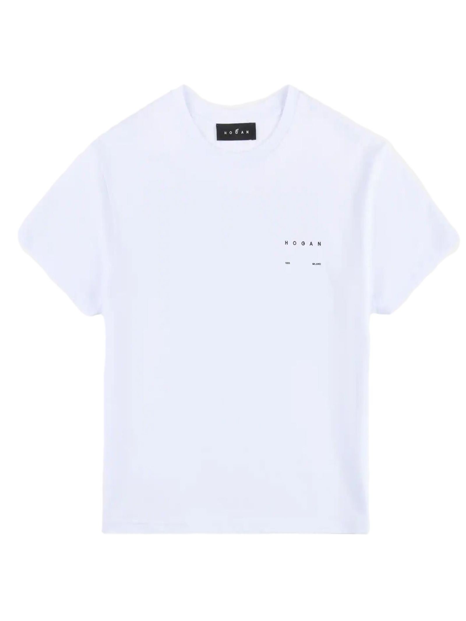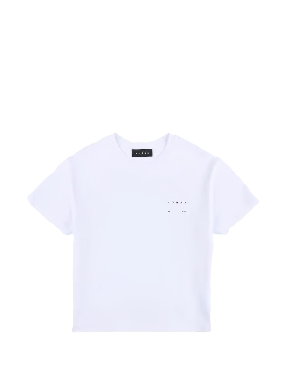 Crew neck T-shirt made of cotton jersey, with contrasting Hogan logo printed on the chest.