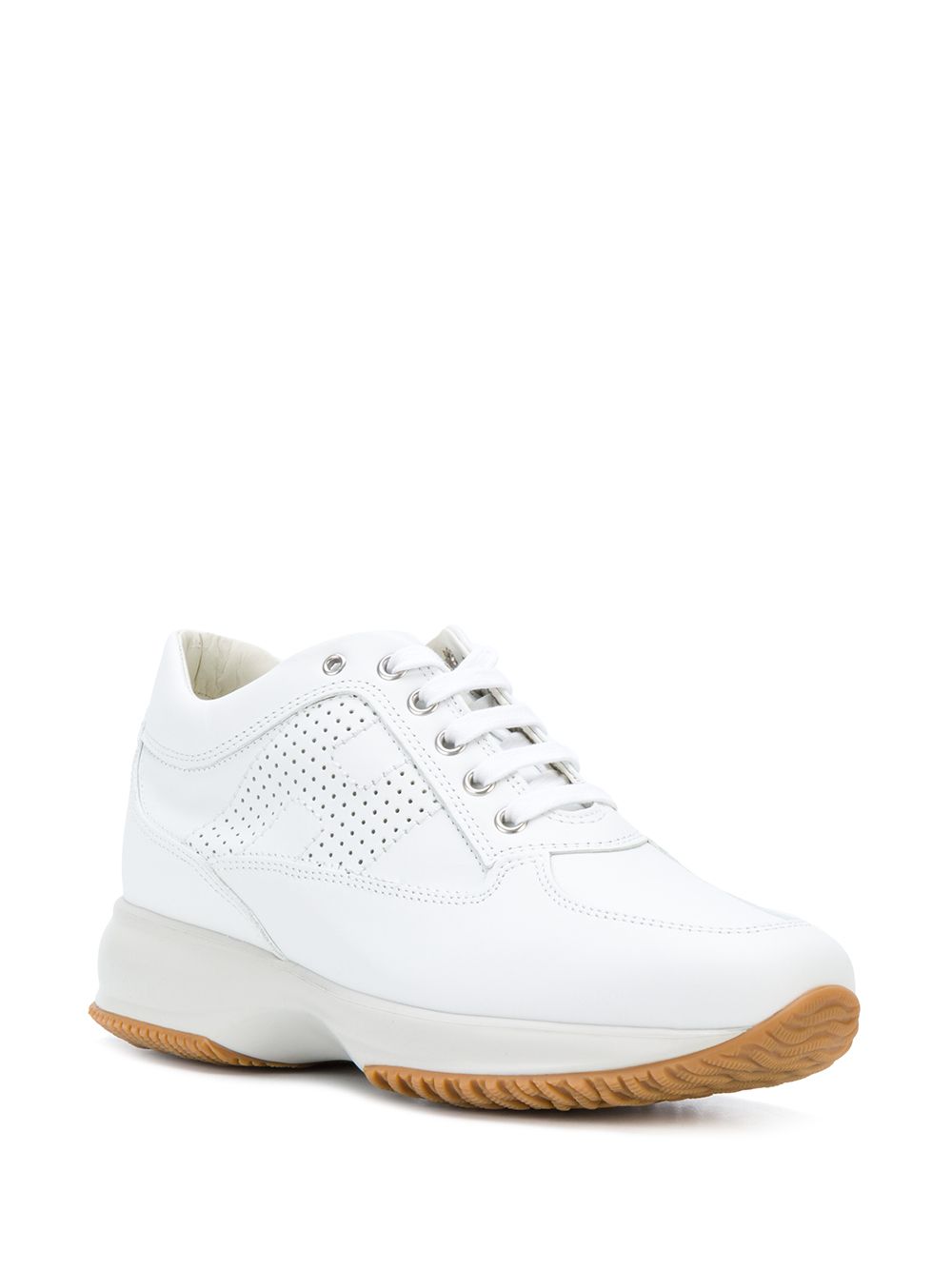 Interactive sneakers in white leather upper, perforated Hogan monogram on the side, exposed stitching, removable footbed 1.2 cm, rubber outsole, total height 5.7 cm