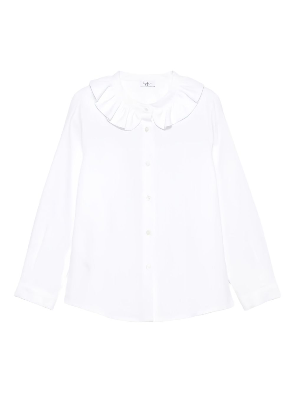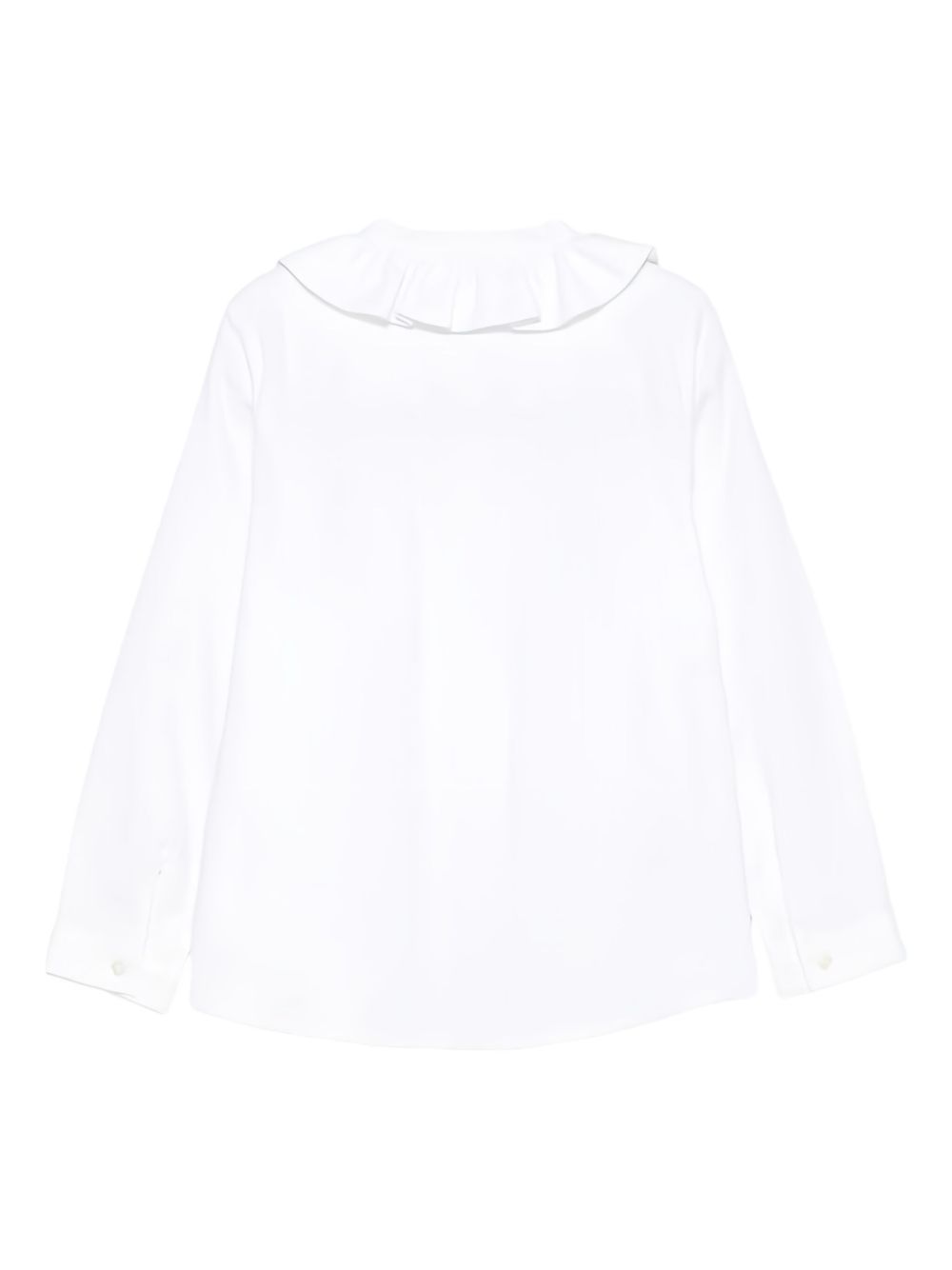 white cotton fabric frill collar long sleeves button fastening buttoned cuffs