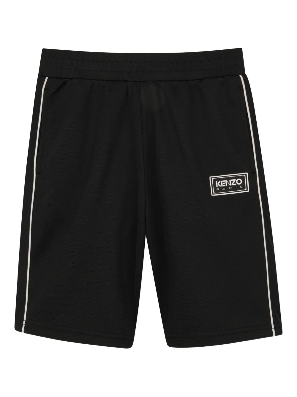 black logo patch side stripes elasticated waistband