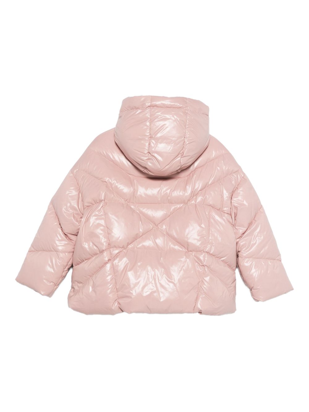 pink quilted design drawstring hood zip fastening side pockets long sleeves