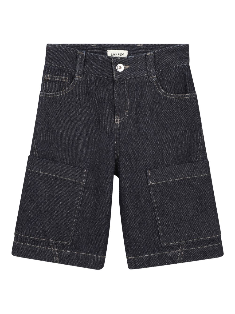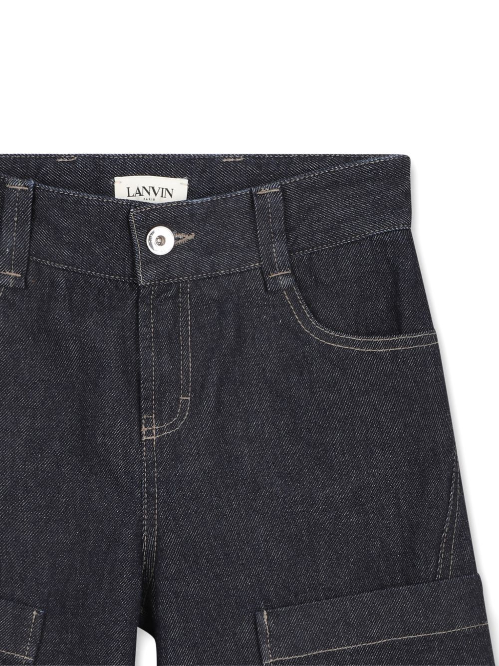 blue logo detail classic five pockets belt loops button fastening contrast stitching