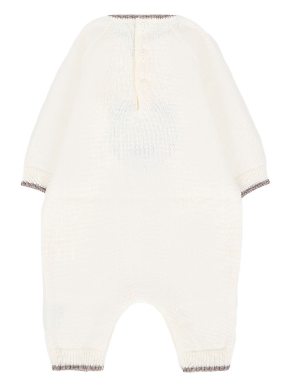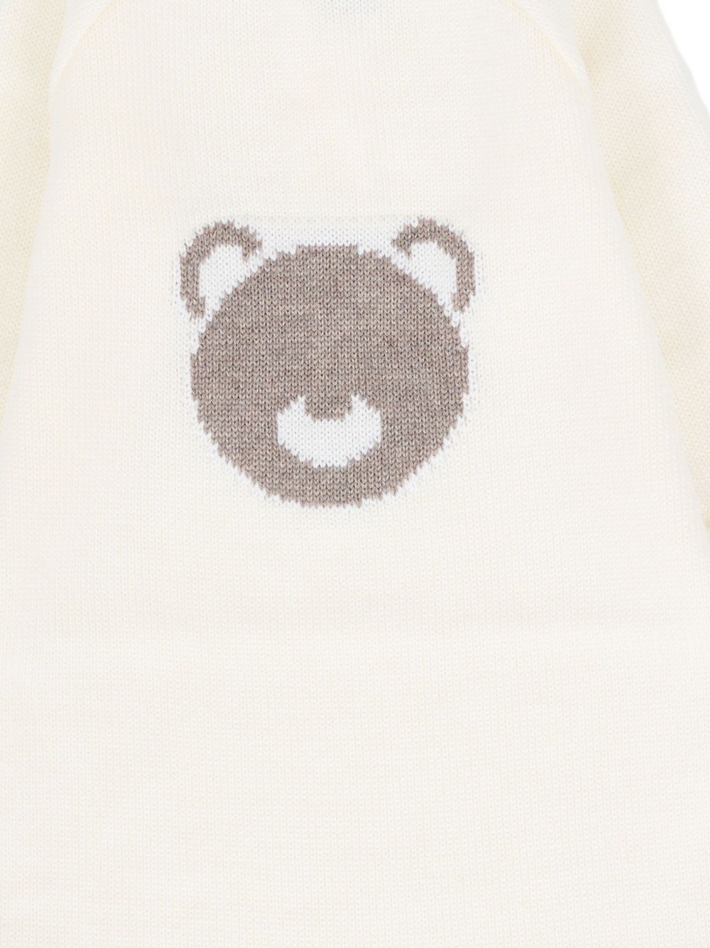ivory knitted wool bear intarsia long sleeves button fastening ribbed trims