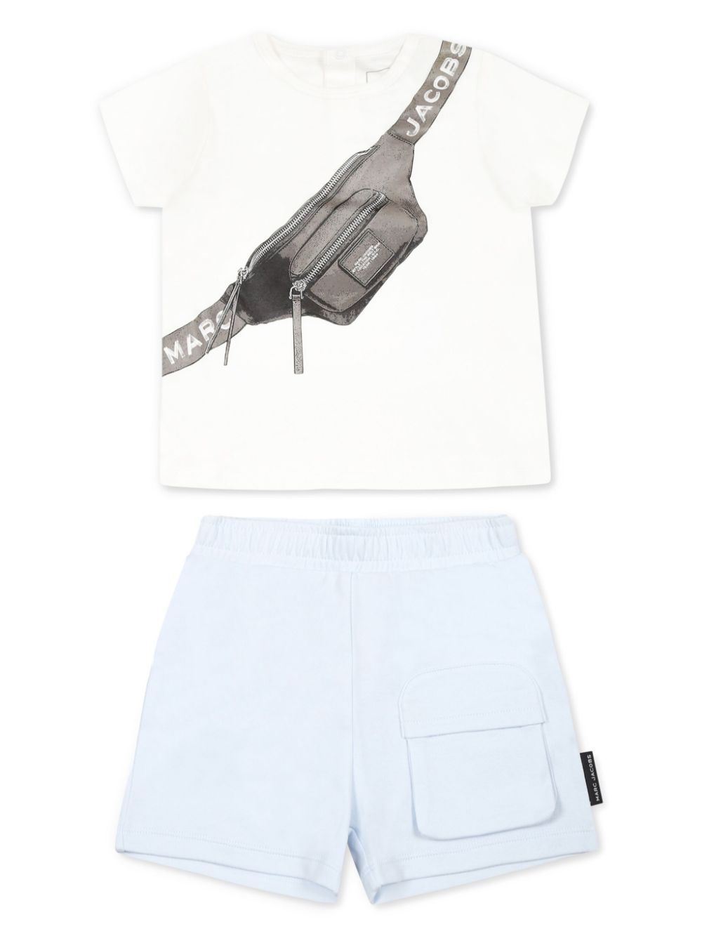 White, Rear Press,Stud Fastening, Elasticated Waistband, Rear Patch Pocket, Short Sleeves