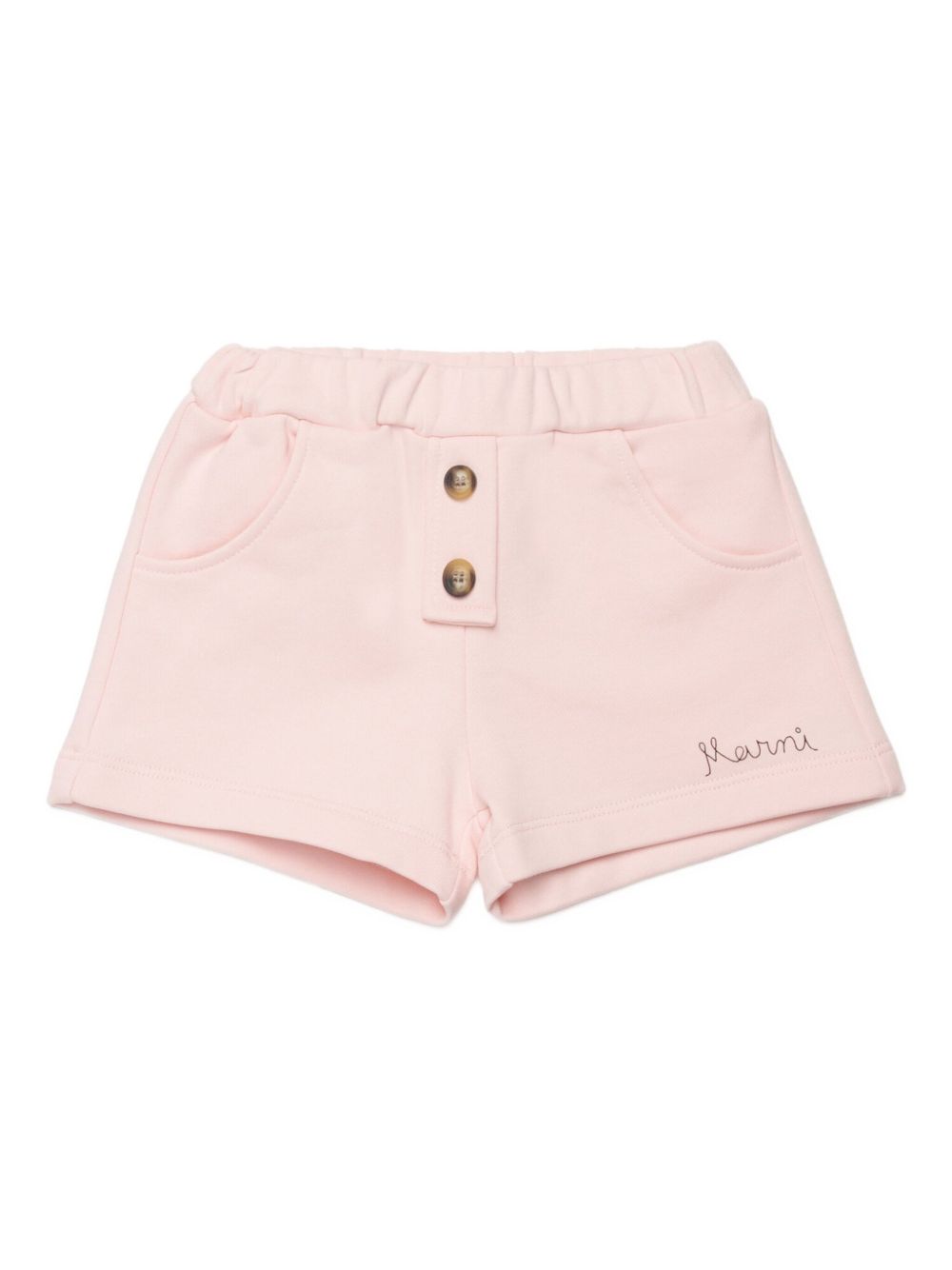 light pink elasticated waistband front pockets button detail embroidered logo