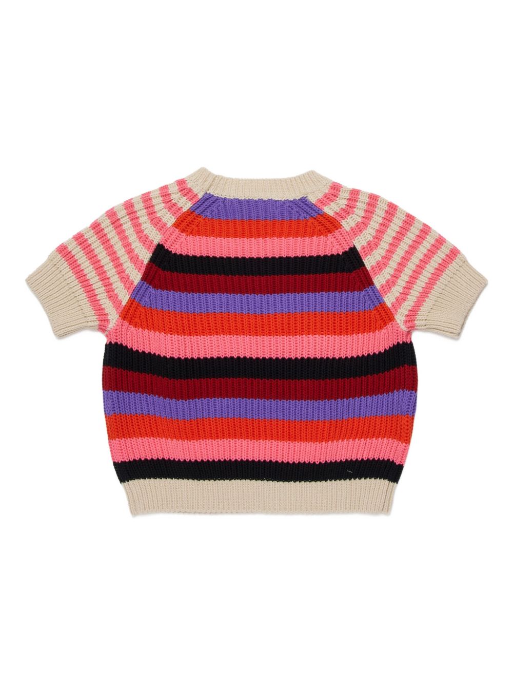 pink striped pattern short sleeves round neck logo lettering