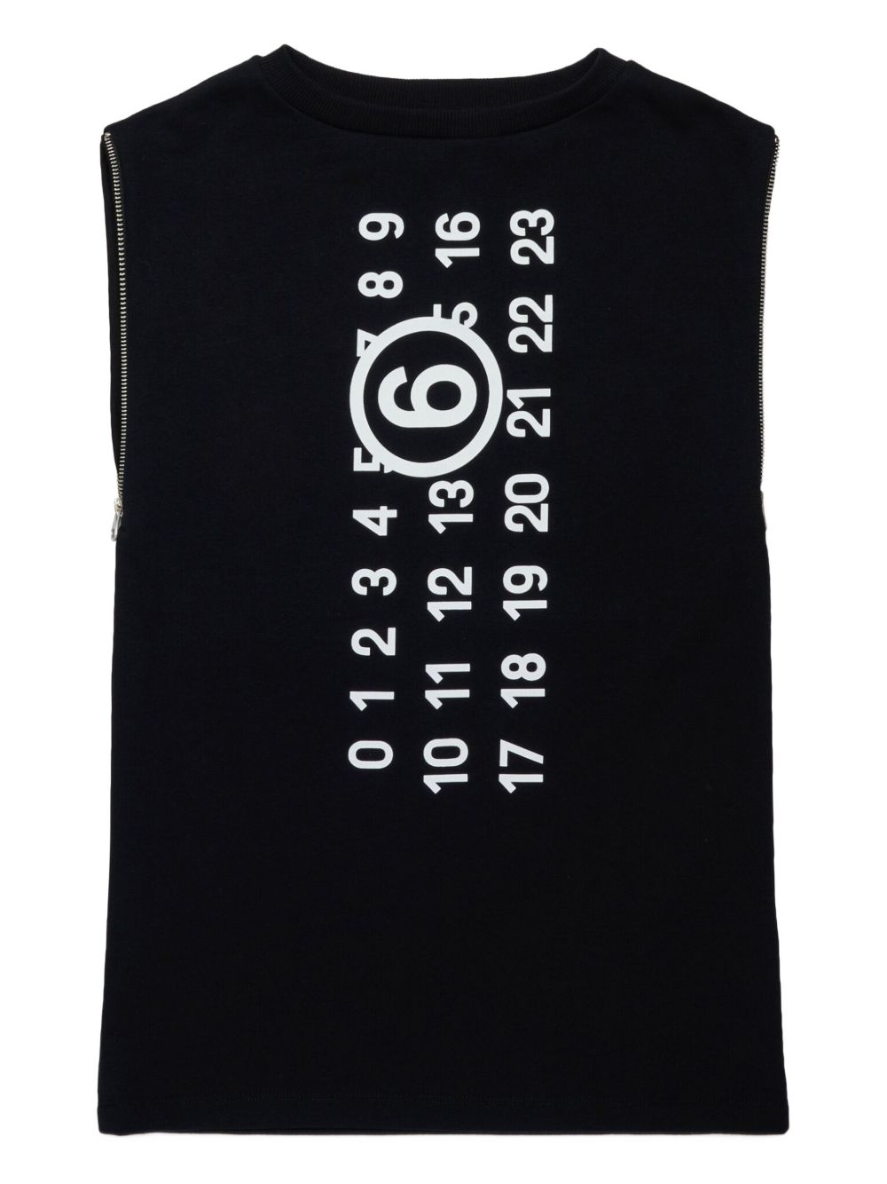 black side zip fastening crew neck sleeveless signature single-stitch logo