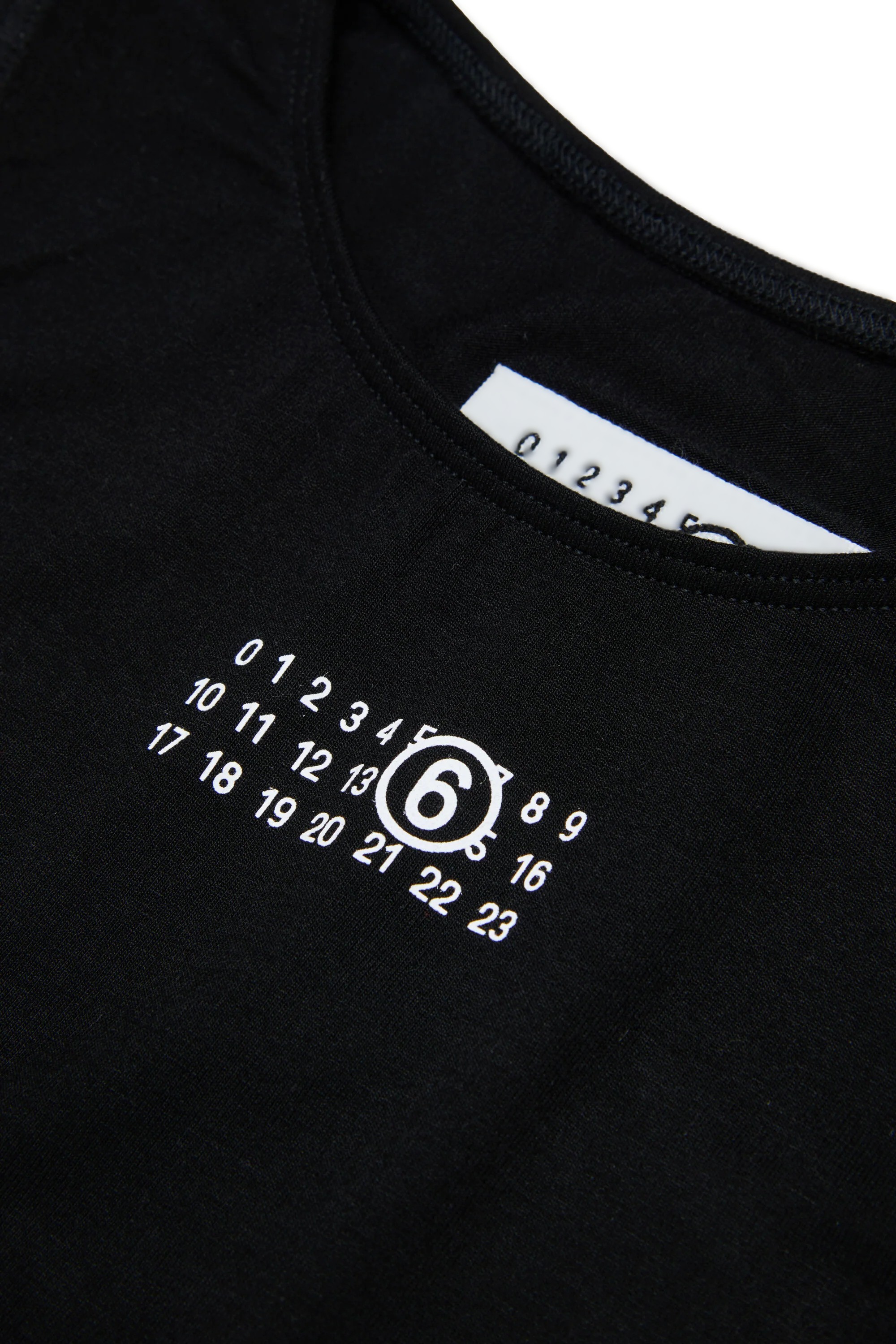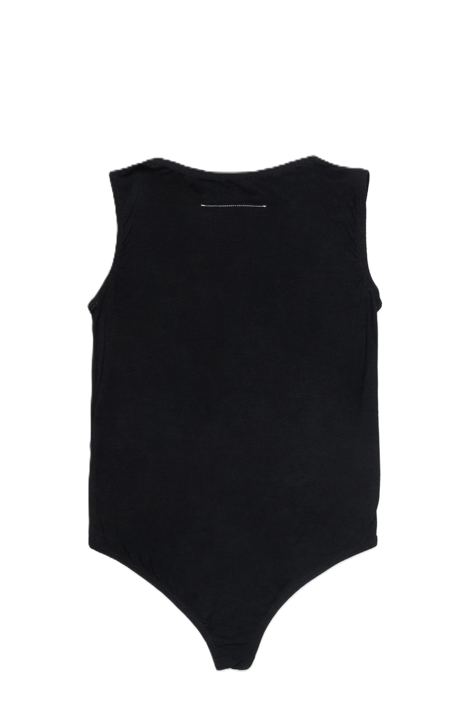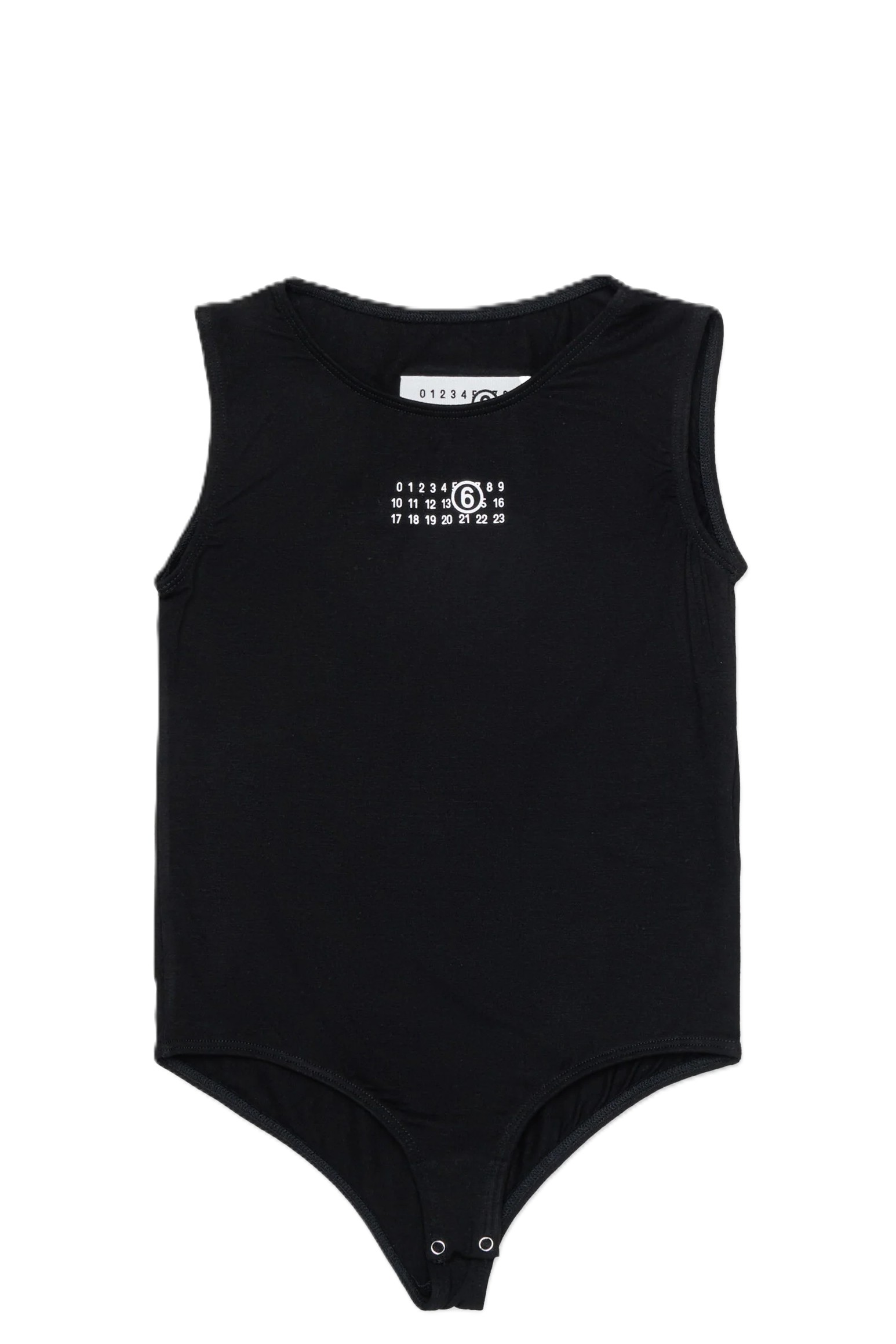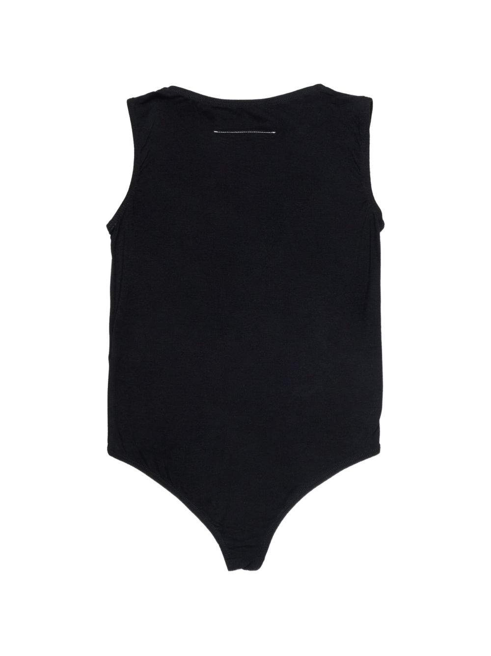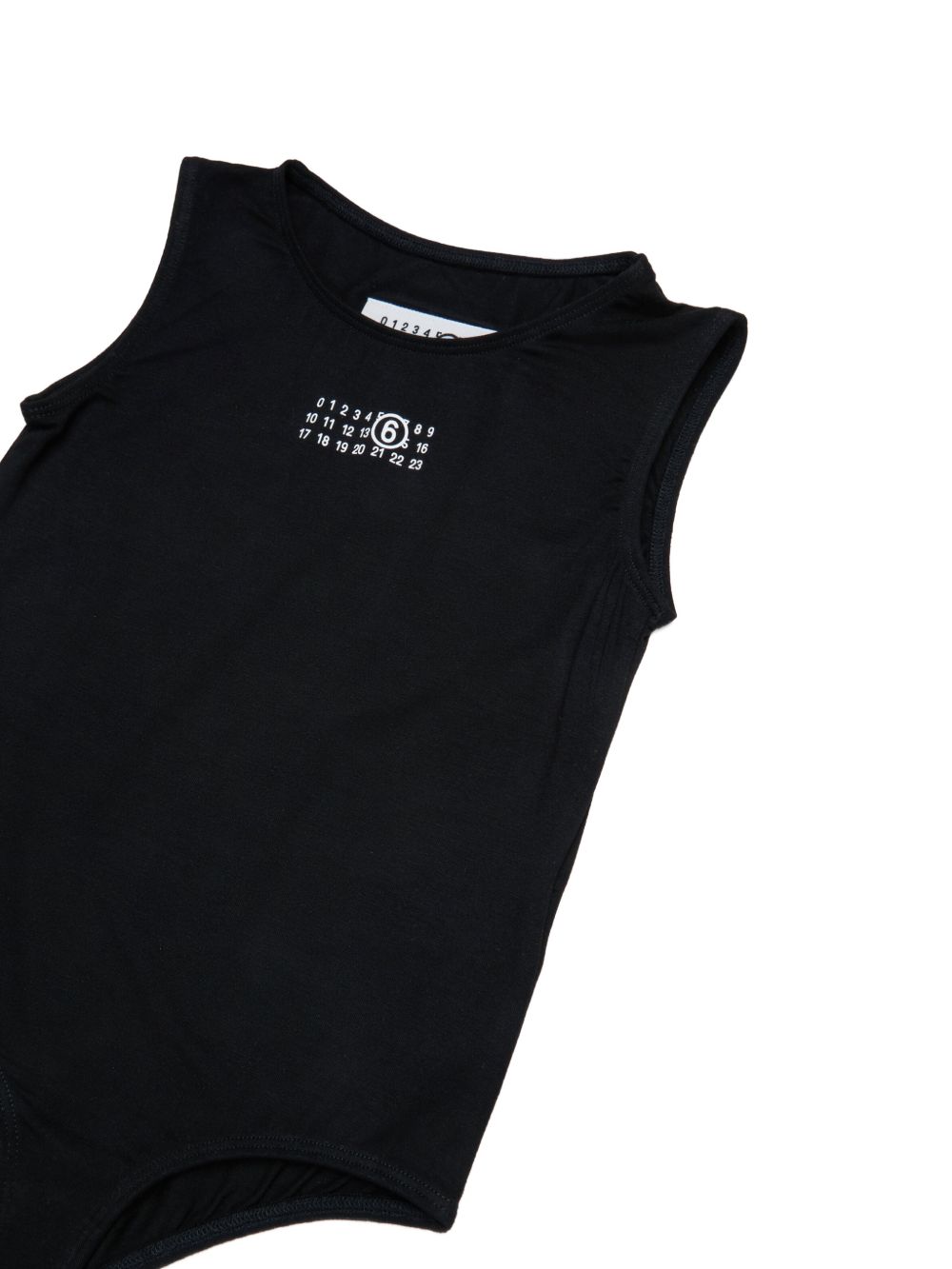 Sleeveless bodysuit made of stretch cotton jersey. Numeric logo in contrasting color on the front. Practical snap-button opening along the crotch. Iconic seam at back.