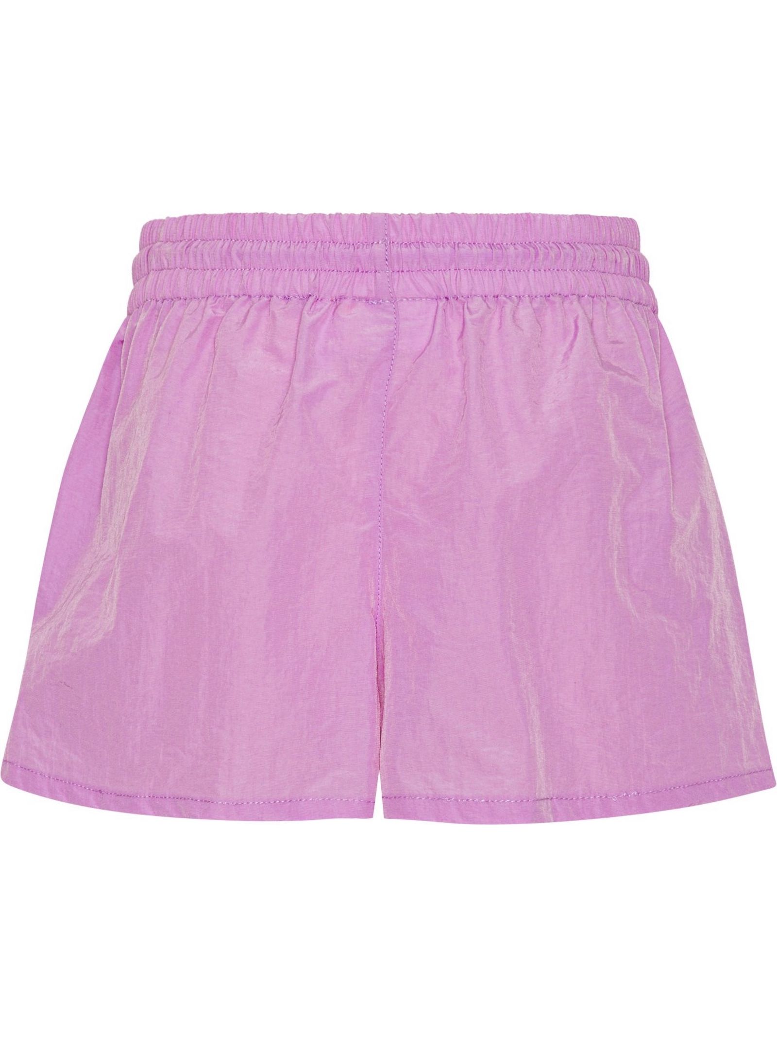Purple nylon shorts, red embroidered clover logo as well as side pockets and a wide elastic waist with a drawstring