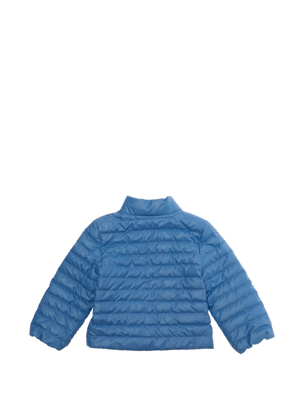 light blue quilted logo patch zip fastening round neck long sleeved