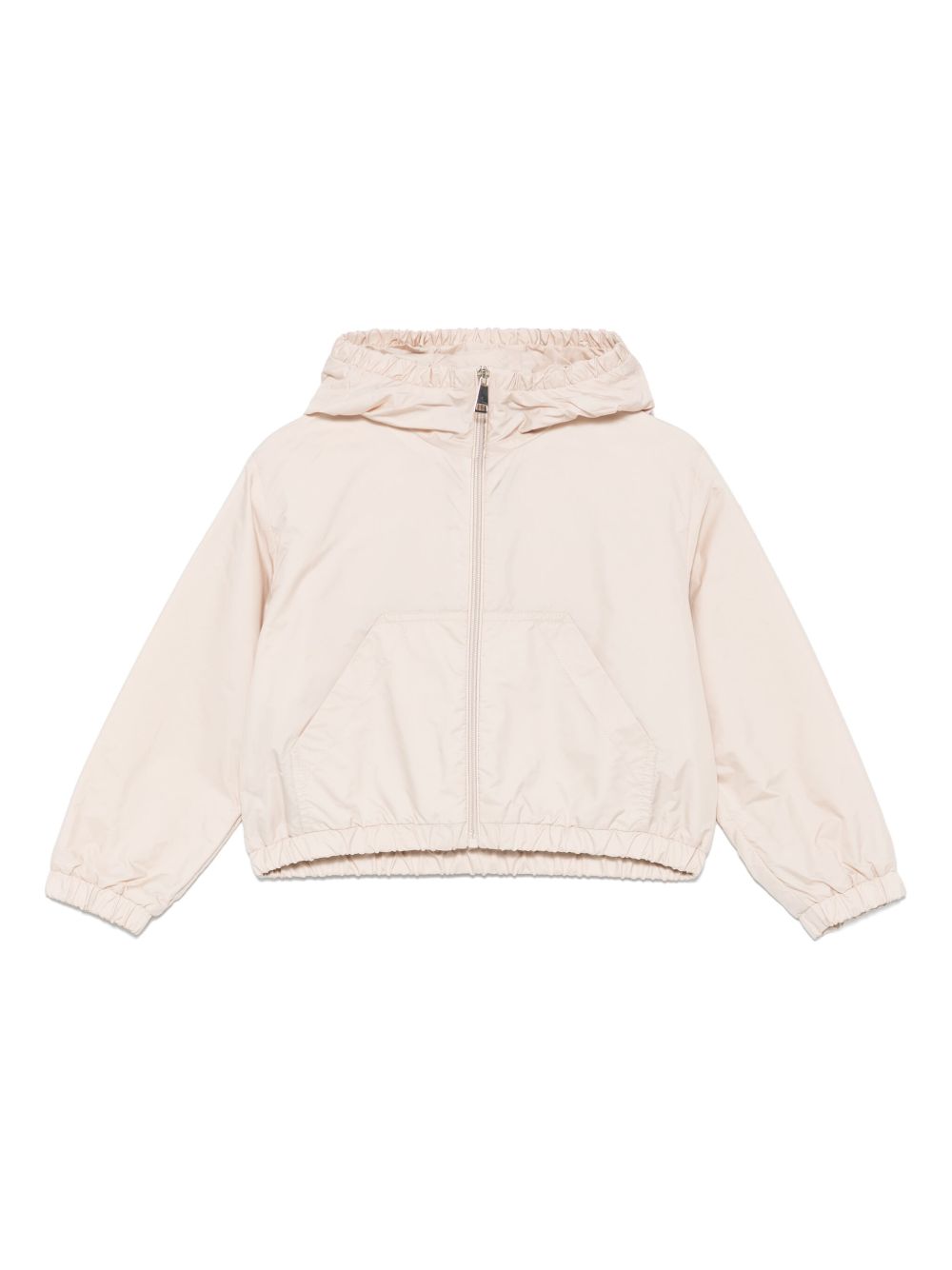 blush beige front zip fastening classic hood two front pouch pockets long sleeves