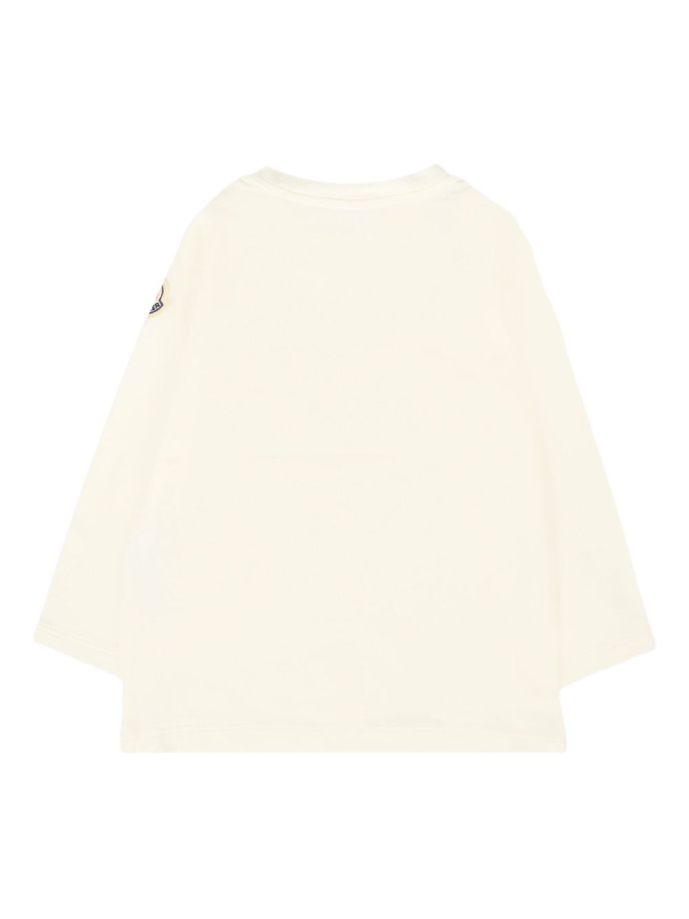 white cotton-blend long sleeves crew neck chest pocket Teddy Bear print sleeve logo-patch shoulder snap-button fastening