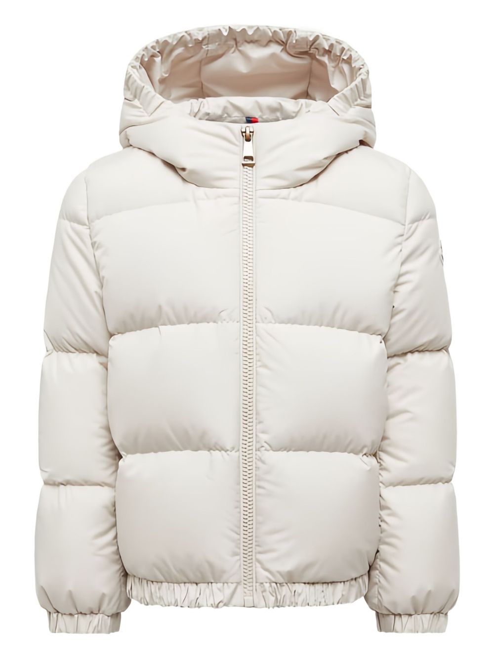off-white quilted design hooded neckline zip fastening long sleeves elasticated cuffs