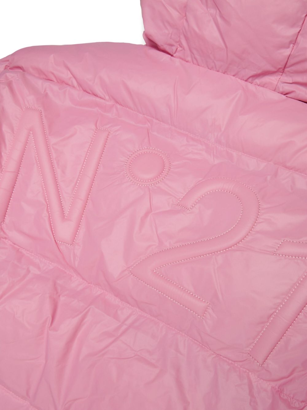 pink quilted design hooded neckline front fastening logo detail long sleeves