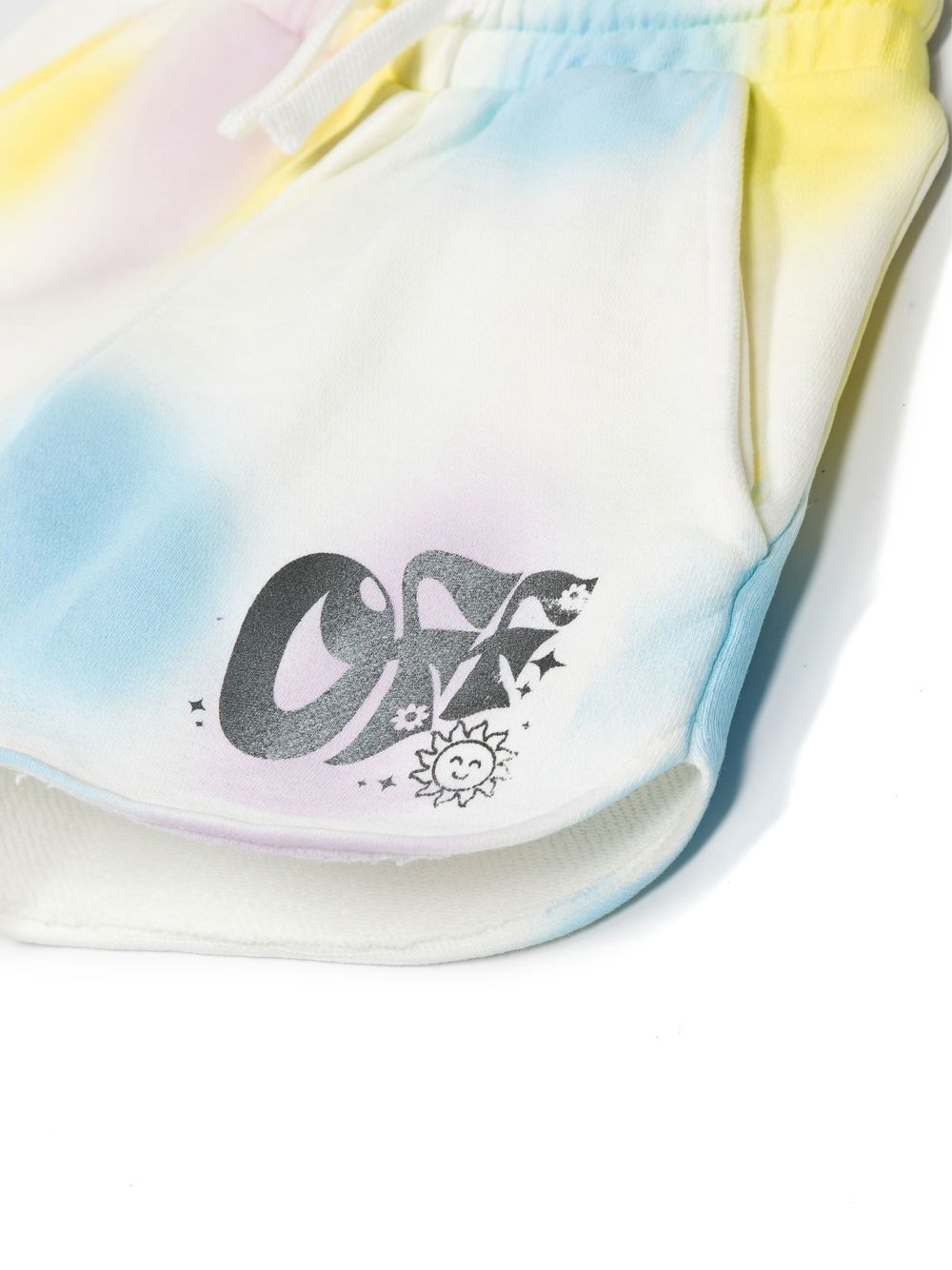White/multicolour, cotton, all-over graphic print, logo print at the leg, elasticated drawstring waistband and two diagonal pockets to the sides.