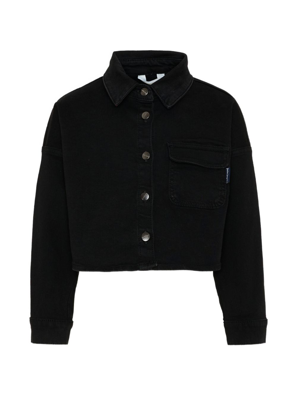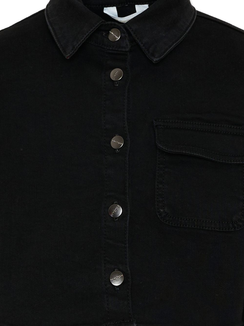 black chest flap pocket button fastening classic collar long sleeves cropped hem