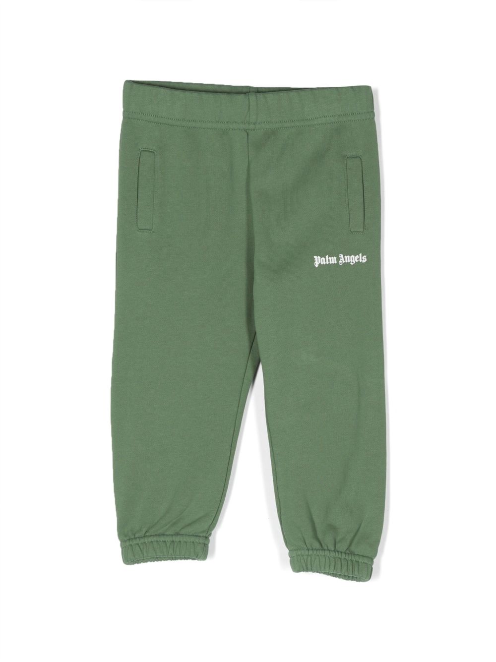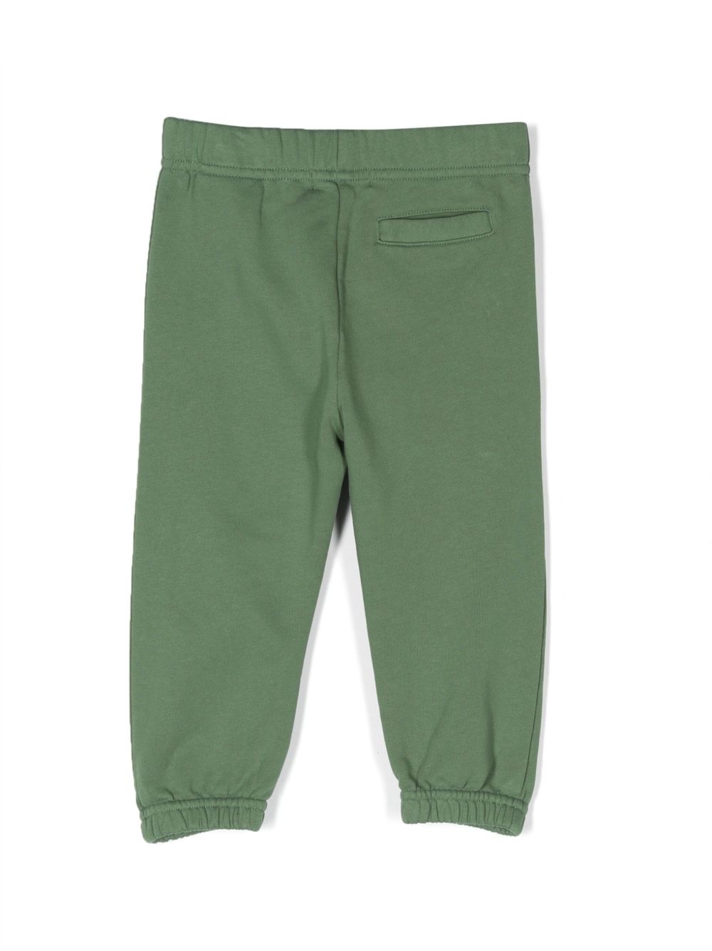 green cotton trouserslogo print at the legelasticated waistbandtapered legelasticated anklestwo side slit pocketsrear jetted pocket