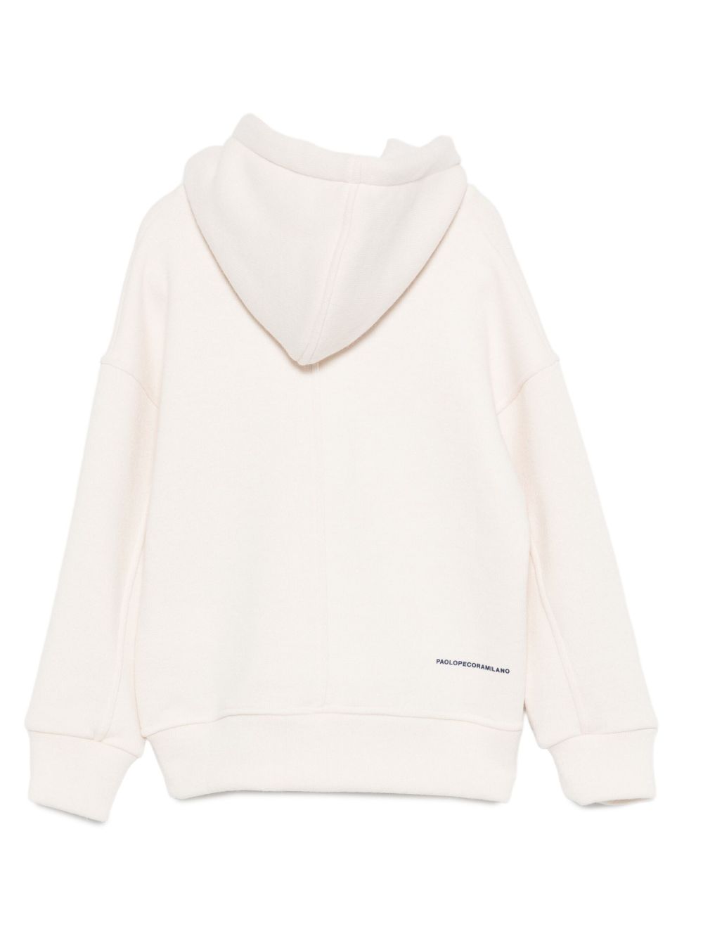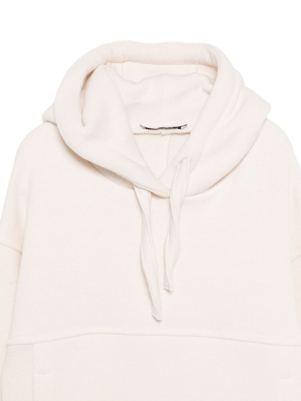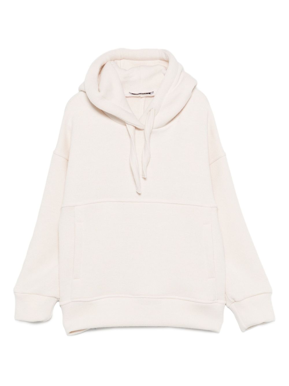 cream drawstring hood kangaroo pocket long sleeves ribbed cuffs panelled design