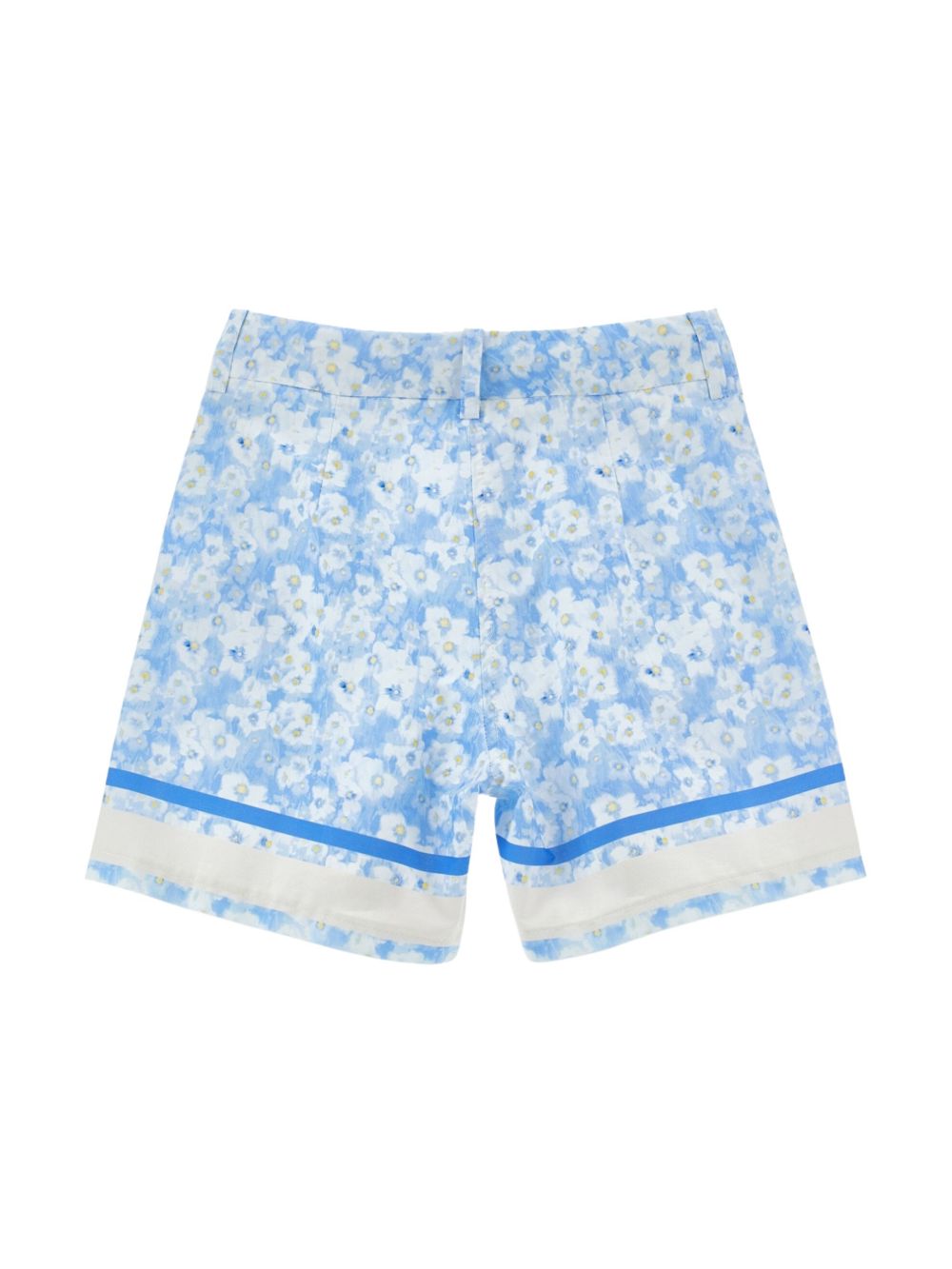 sky blue concealed front fastening belt loops pleat detailing striped border