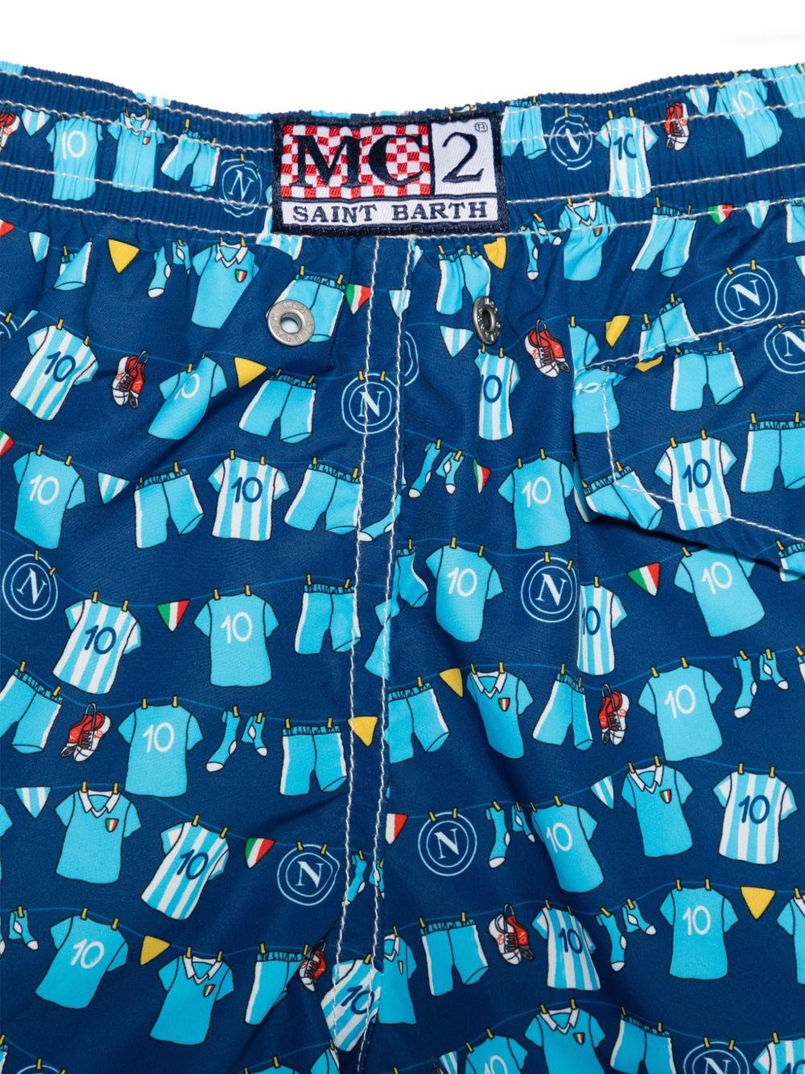Jean Lighting swim shorts, blue, graphic print, elasticated waistband, drawstring fastening. Be mindful to try on swimwear over your own garments
