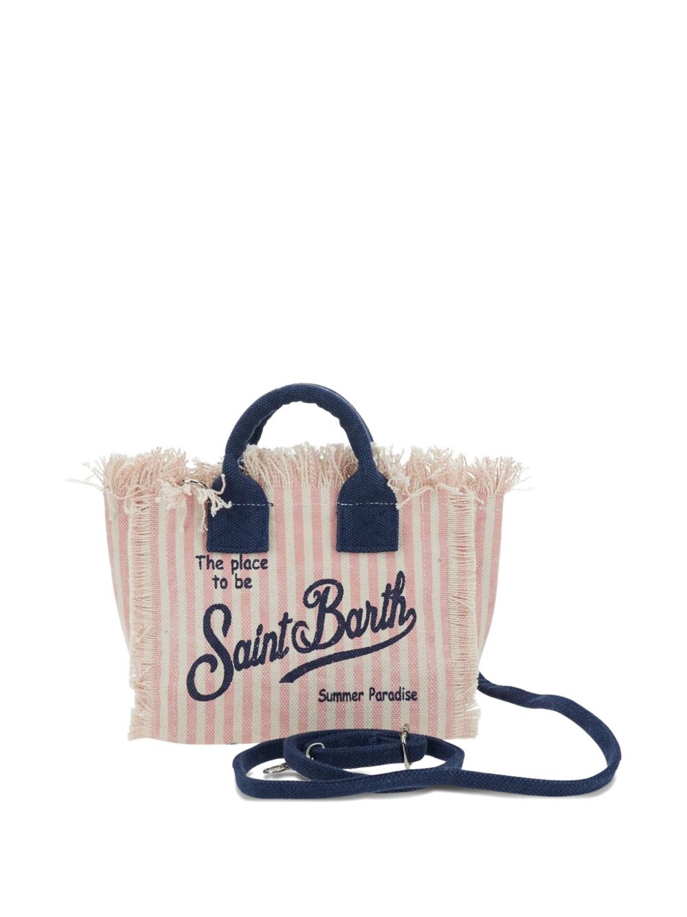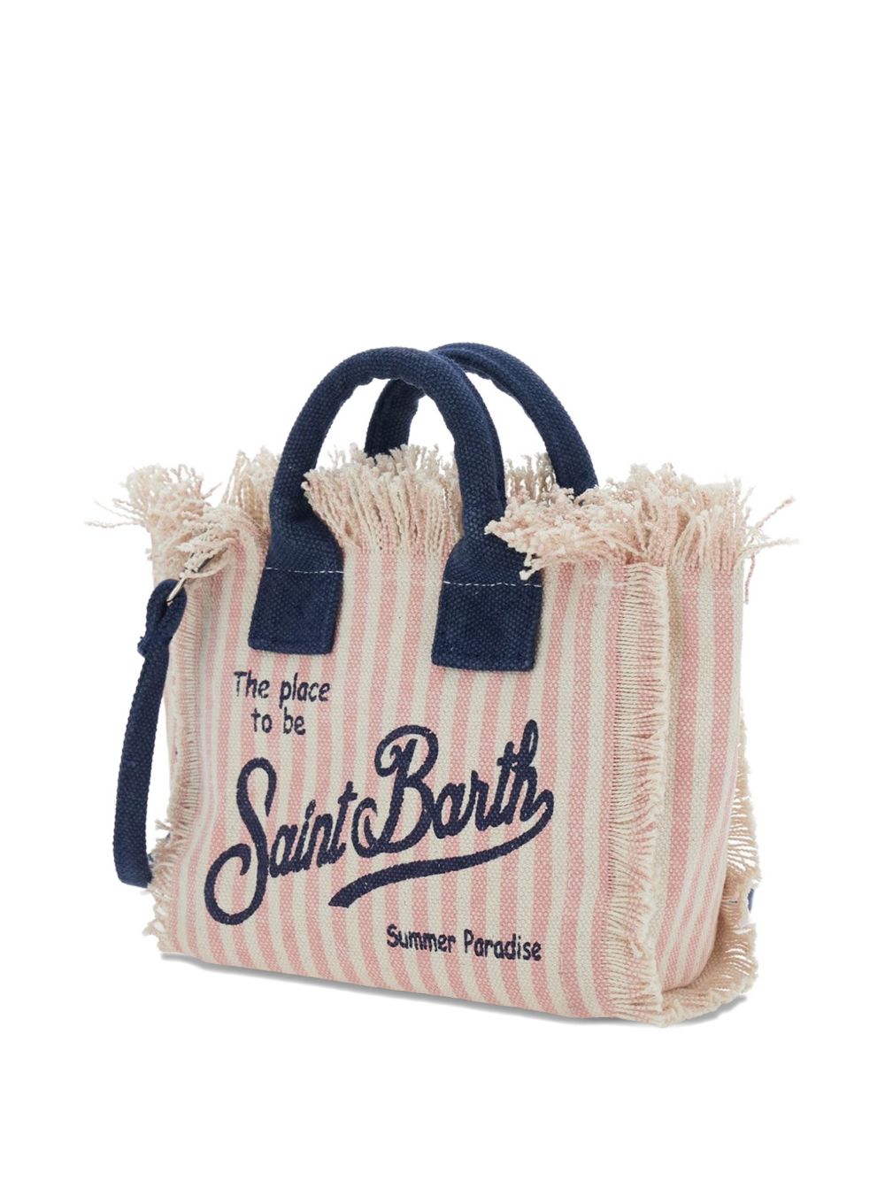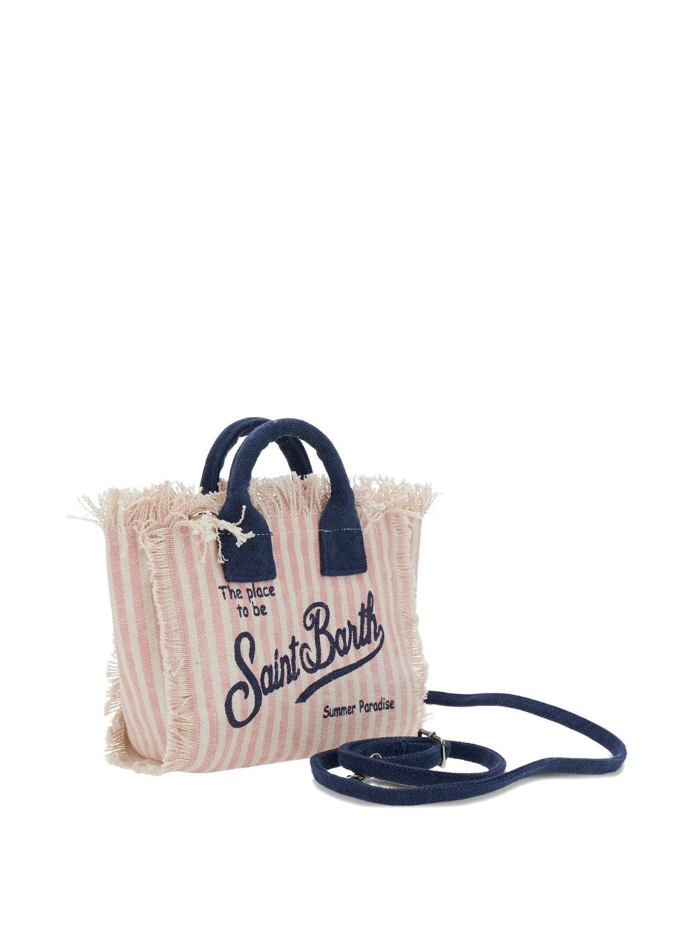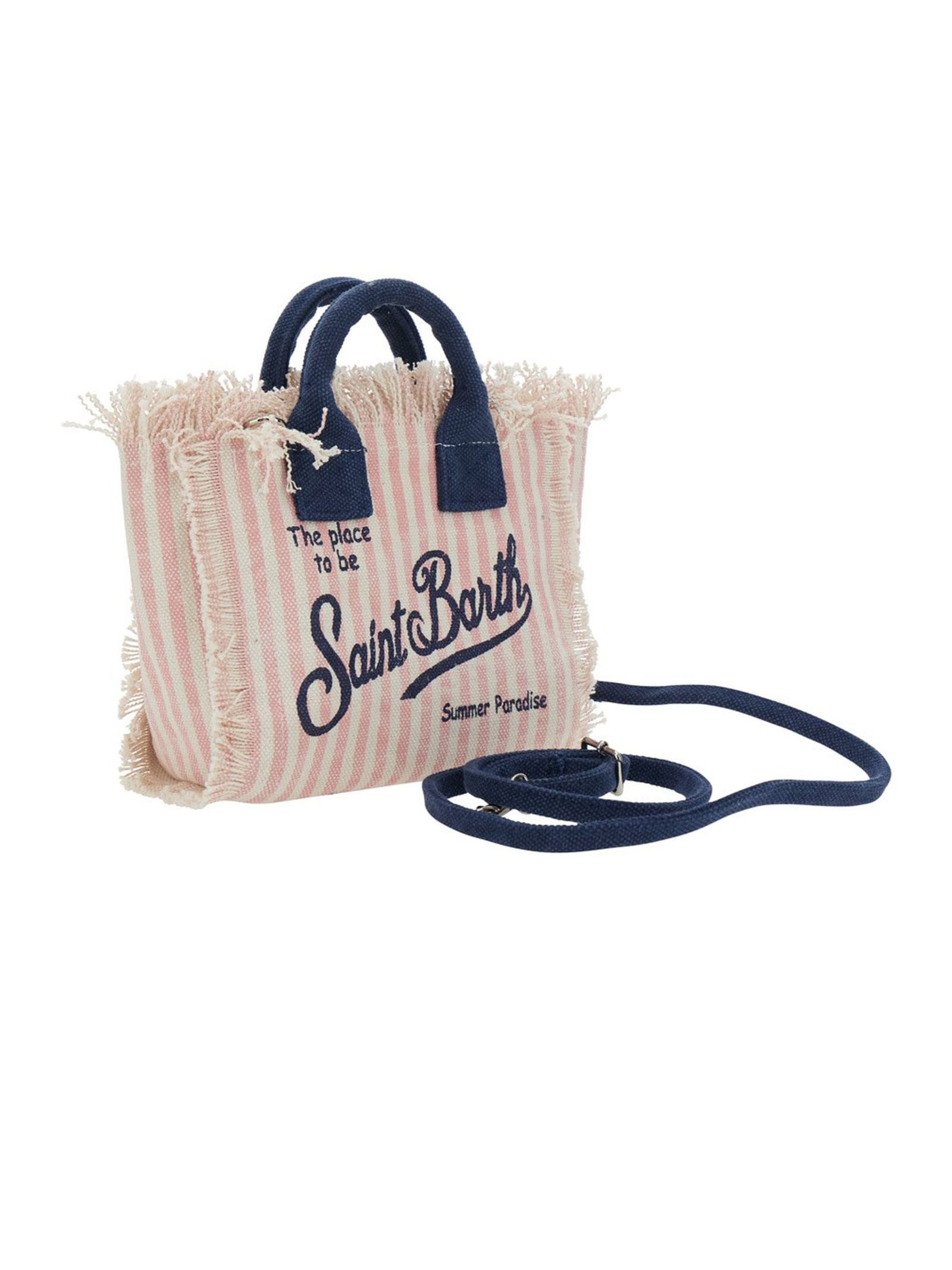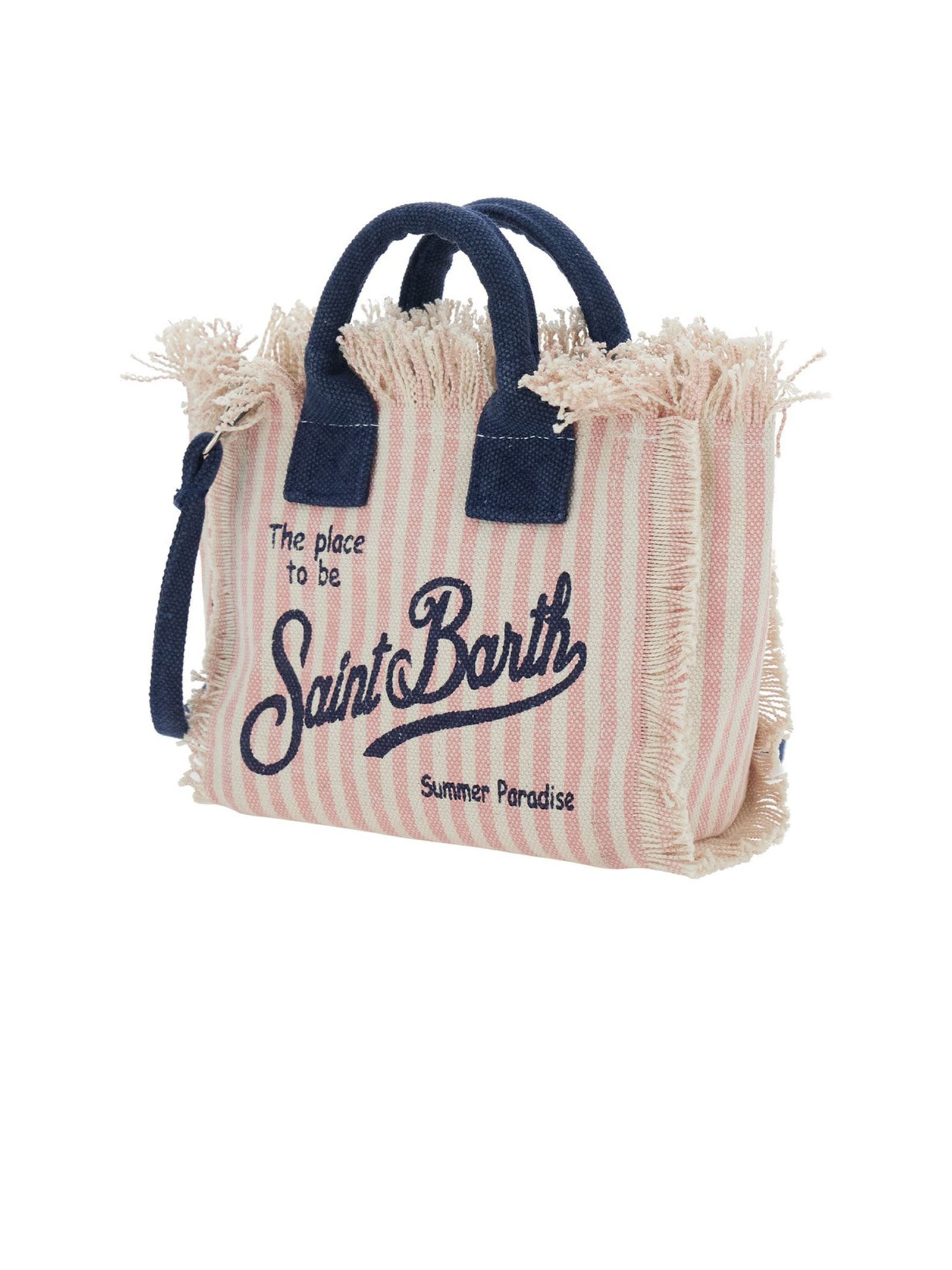 Pink cotton canvas vanity bag, cotton handles, front zip closure, logo printed on the front and back, top zip closure and interior pocket, dimensions 25 cm x 15 cm x 10 cm