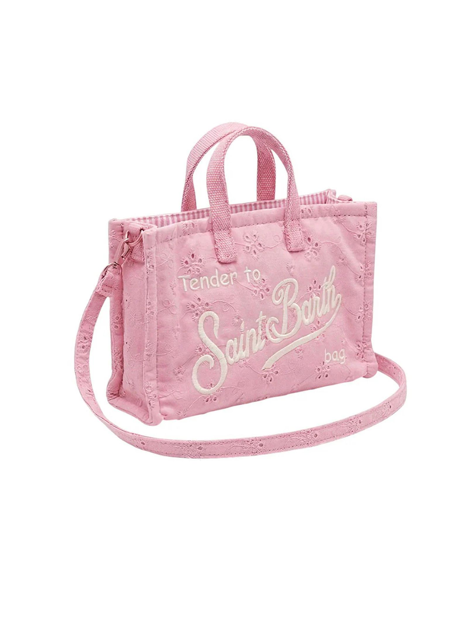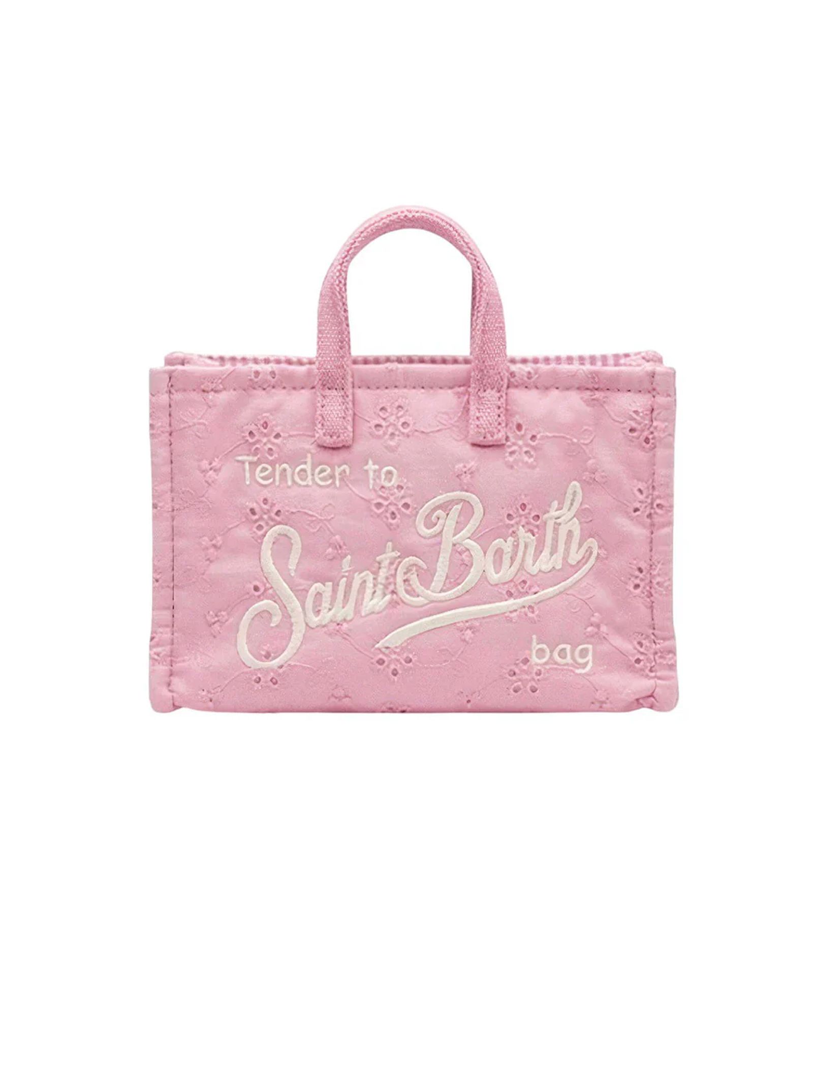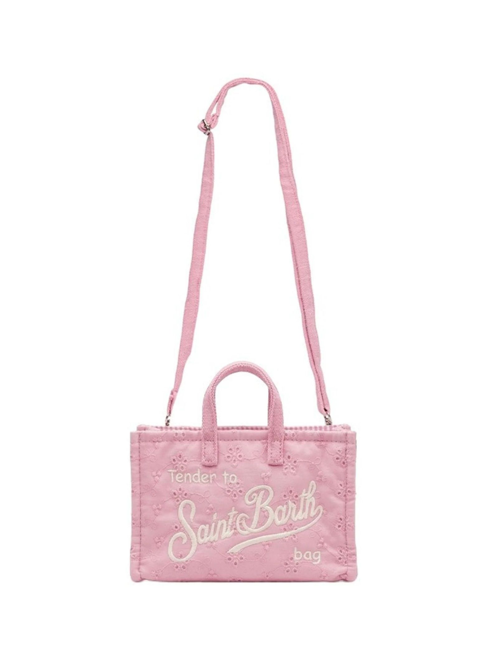 Pink Sangallo Phone Bag with shoulder strap, magnetic closure for added security, exclusive embroidered Saint Barth logo, removable shoulder strap for dual use: shoulder bag or mini clutch, dimensions: 15 x 10 x 3.5 cm