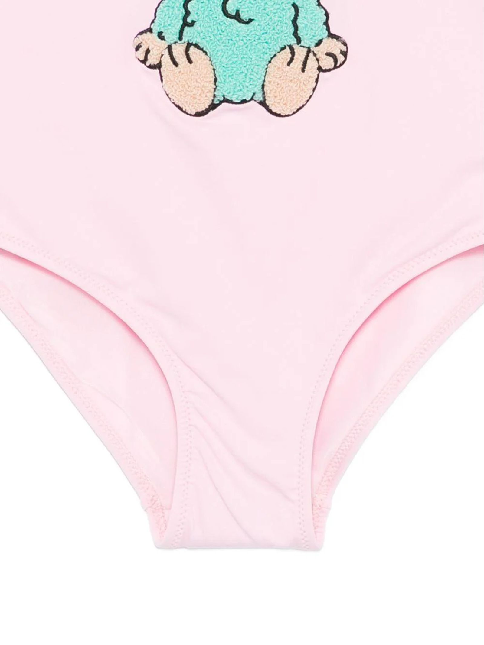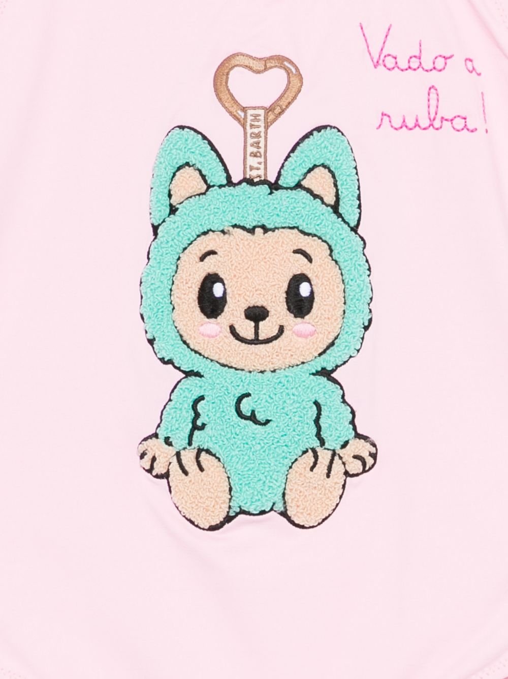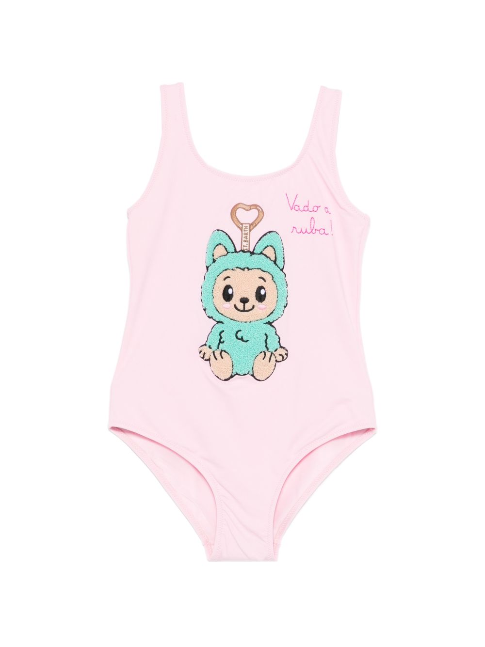 Pink swimsuit with Labubu print