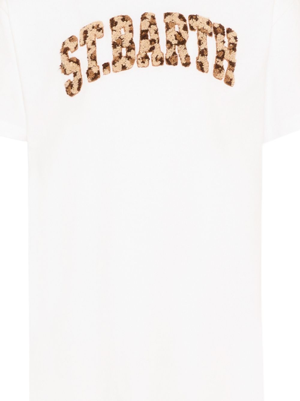 White cotton dress with fringed hem, St. Barth patch in leopard-print terry cloth, exclusive MC2 Saint Barth logo embroidered on the sleeve, regular fit